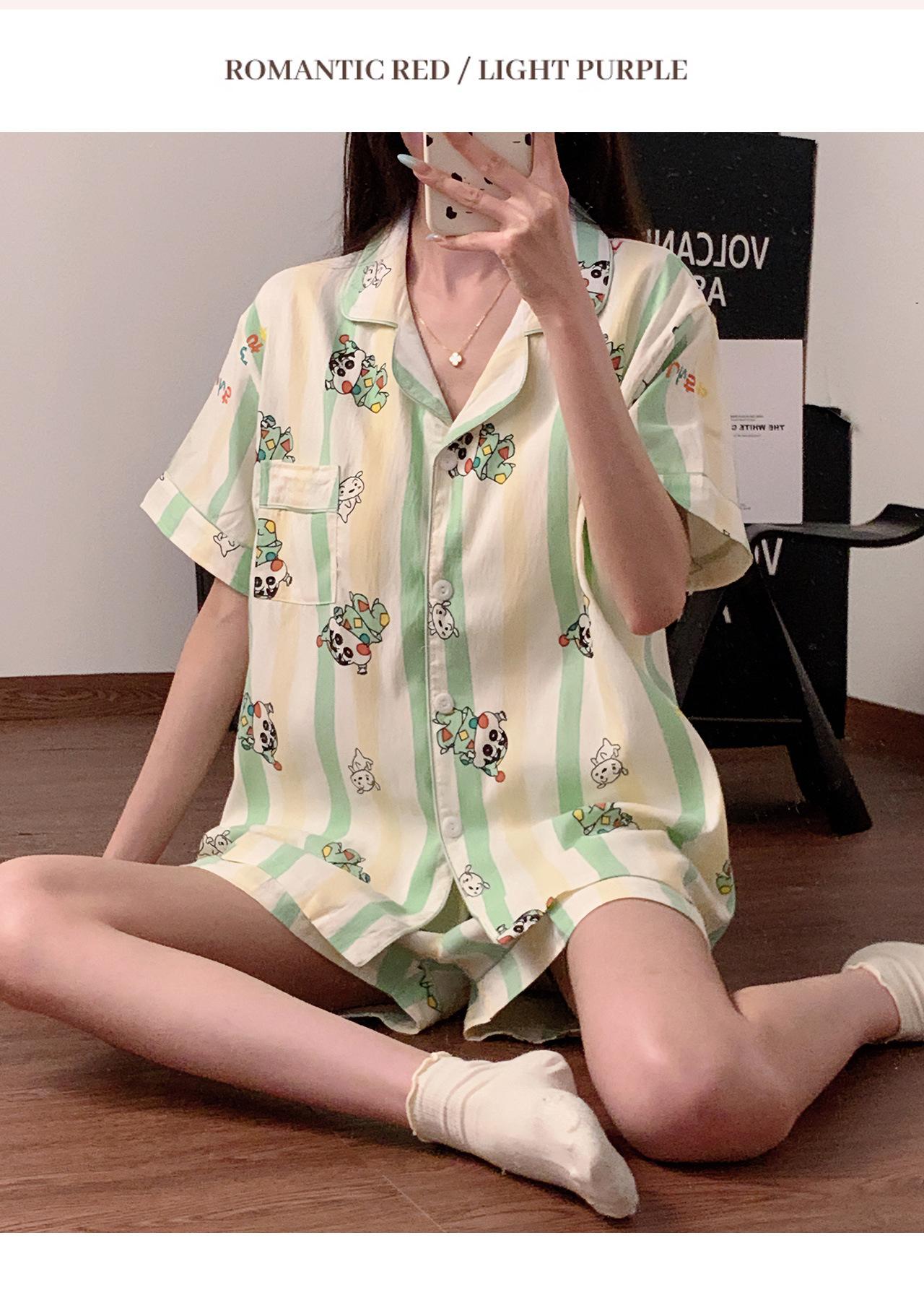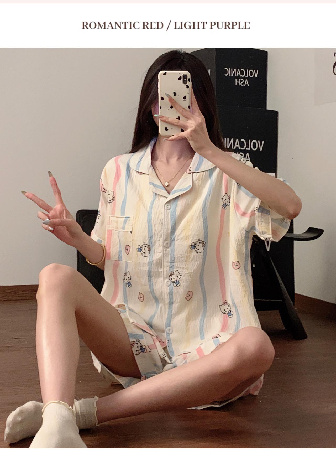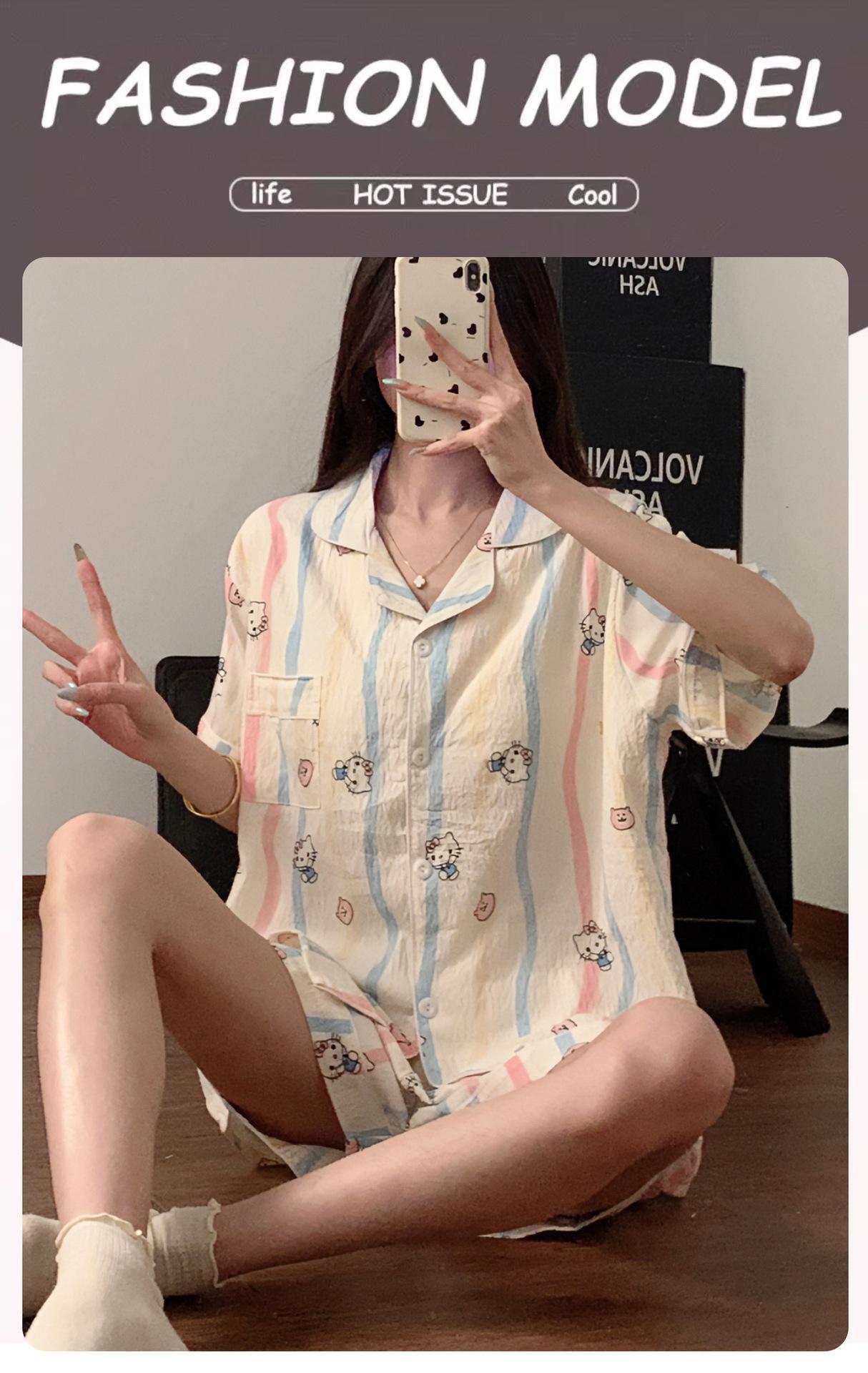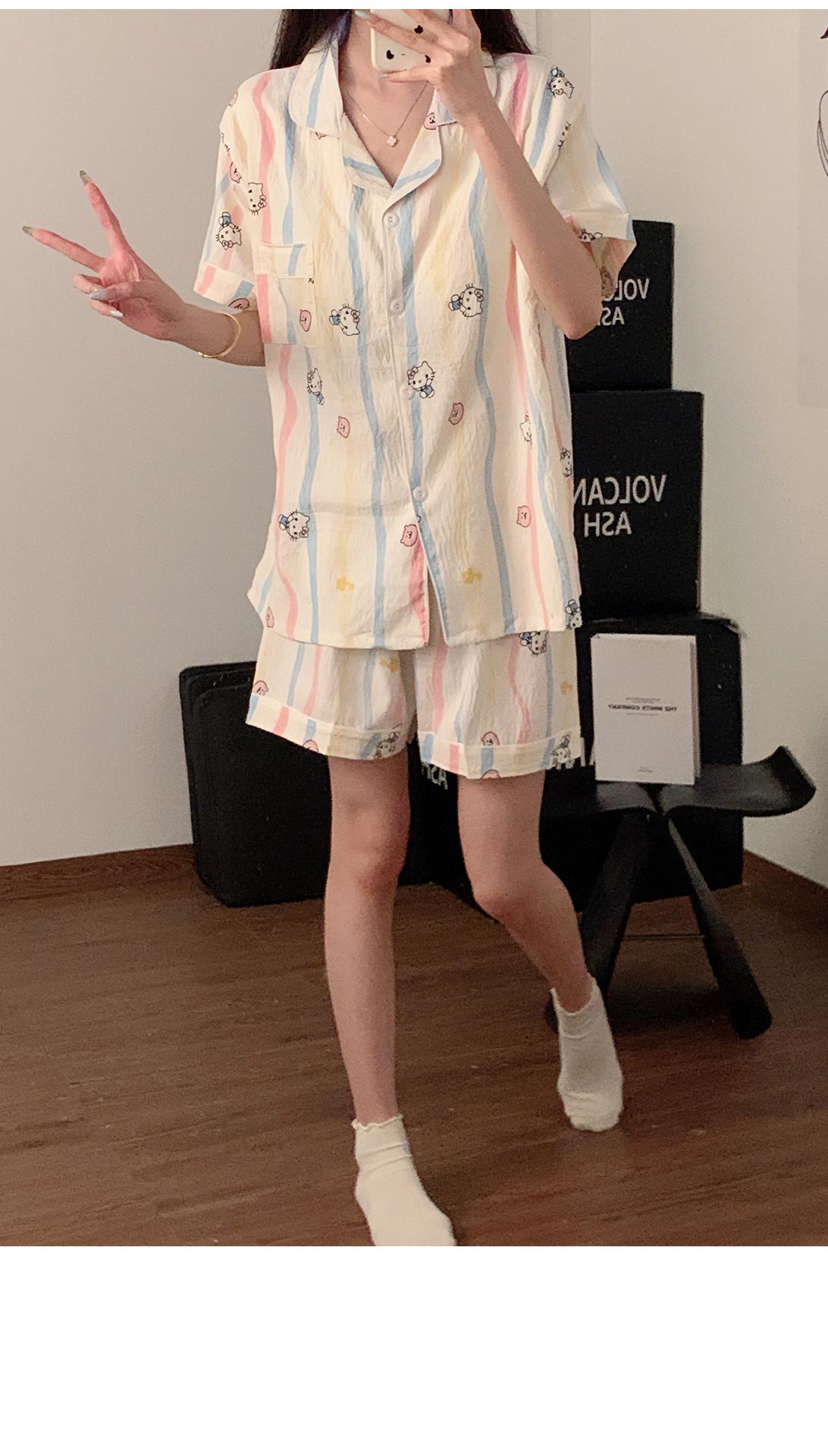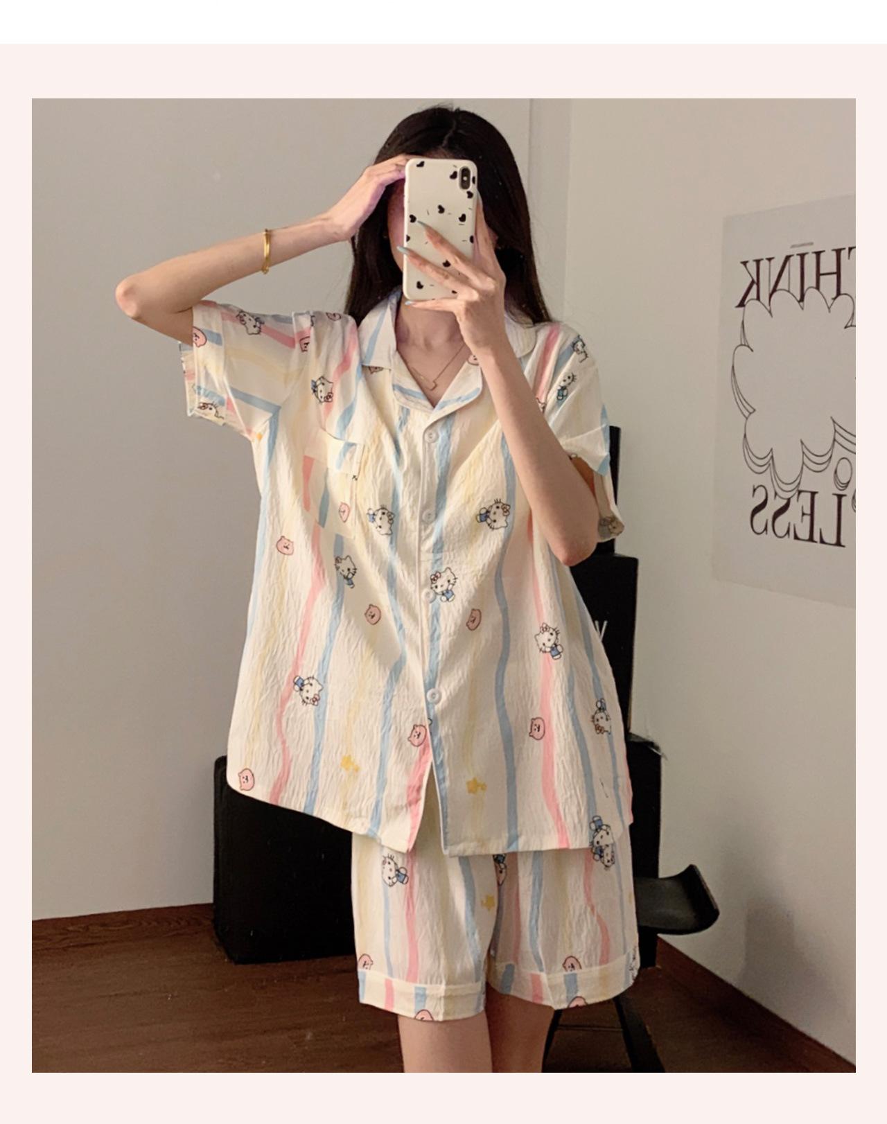 Pijama de verano para mujer, de algodón fino con nubes, de manga corta y pantalones cortos con almohadilla para el pecho, bonito estilo japonés, ropa de casa con dibujos animados, ideal para uso exterior.