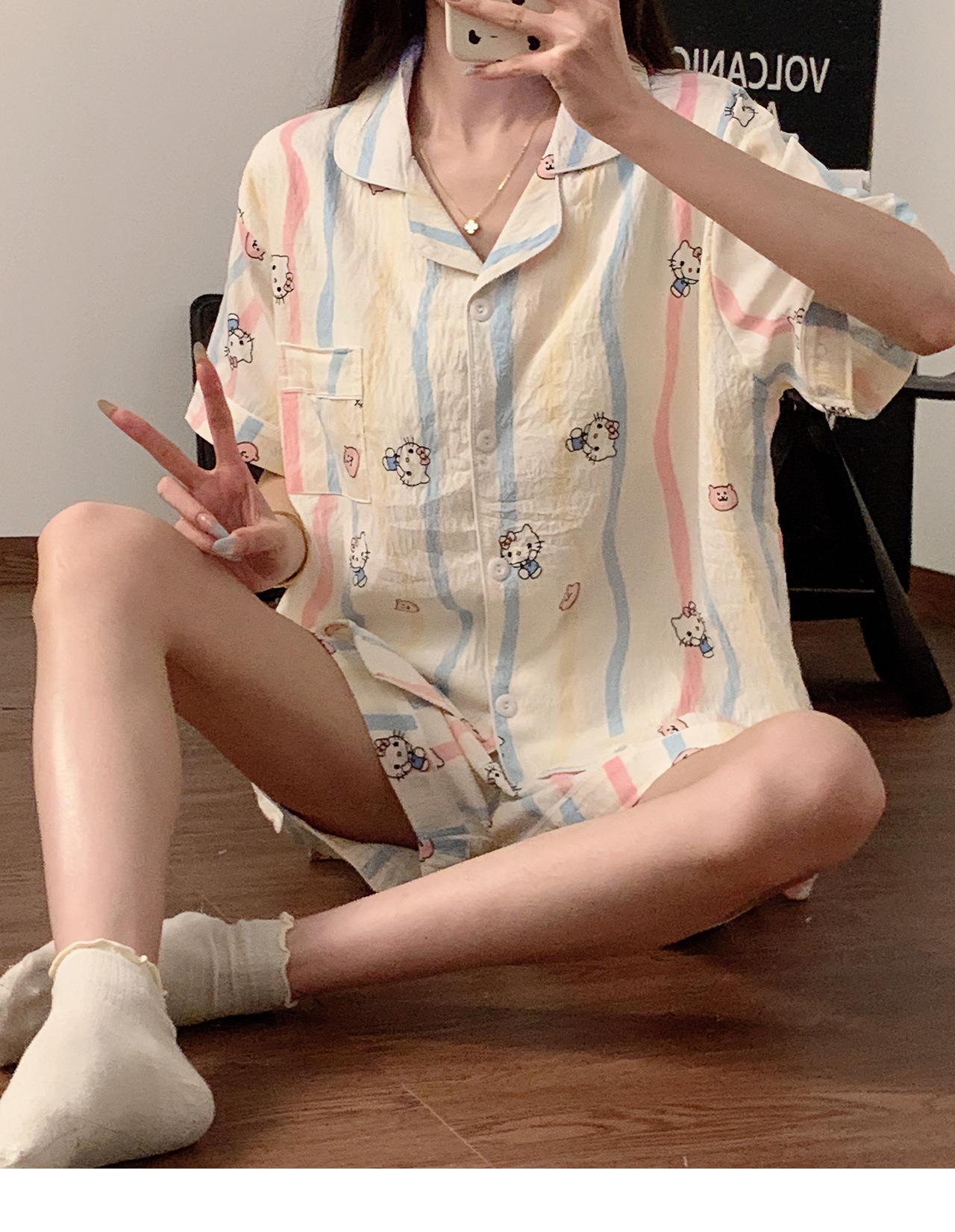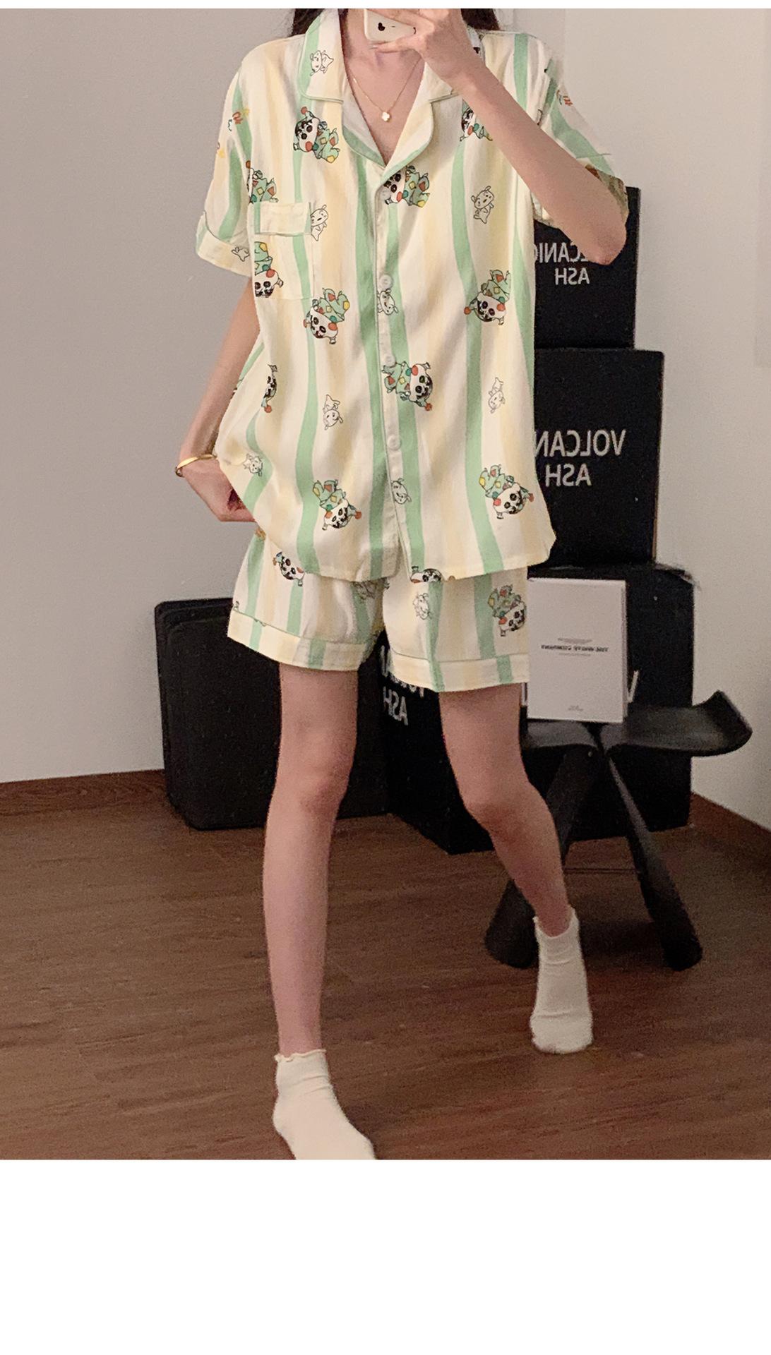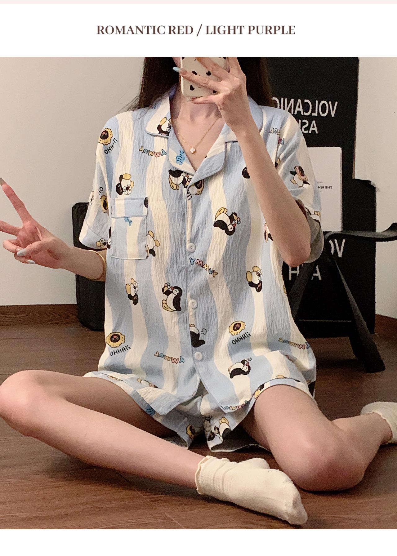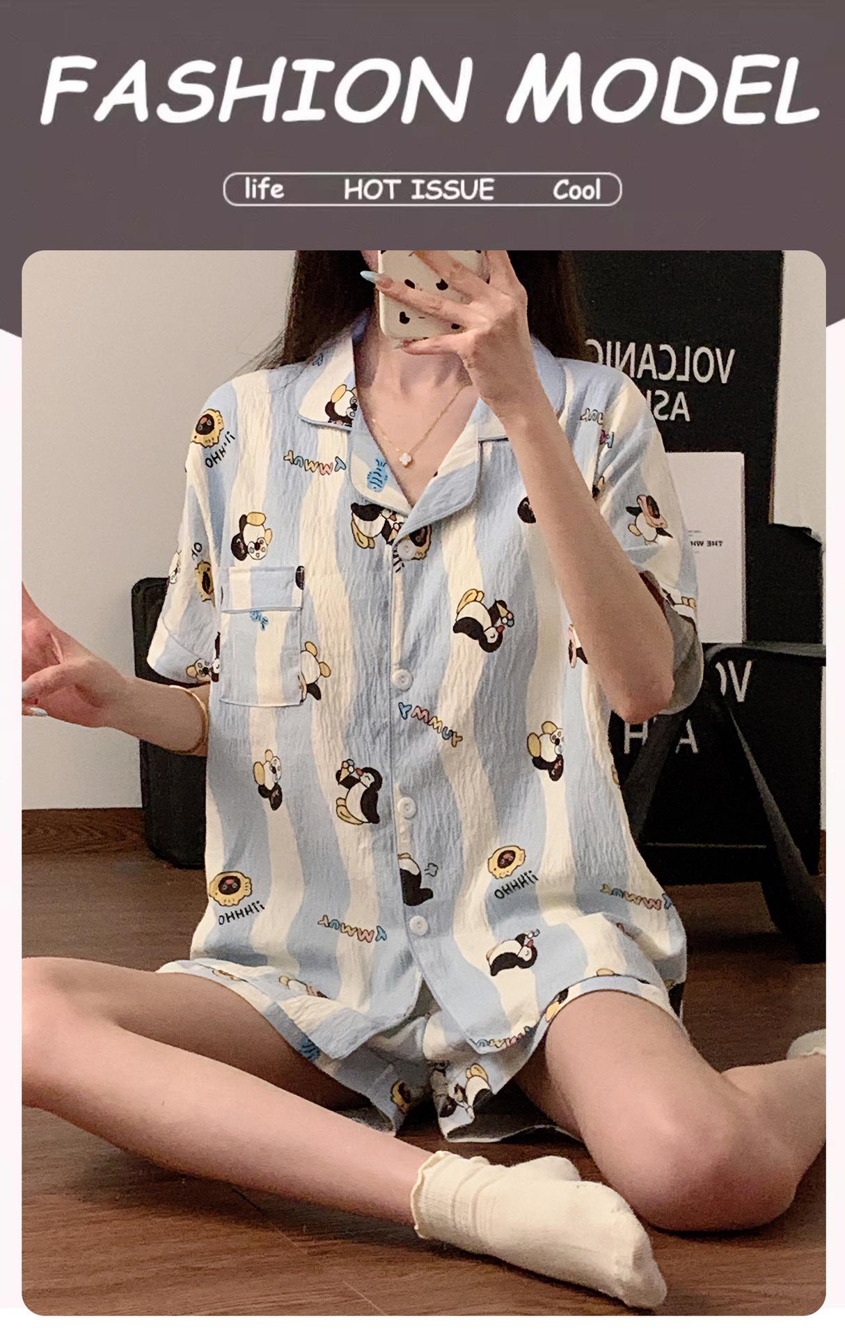 Pijama de verano para mujer, de algodón fino con nubes, de manga corta y pantalones cortos con almohadilla para el pecho, bonito estilo japonés, ropa de casa con dibujos animados, ideal para uso exterior.