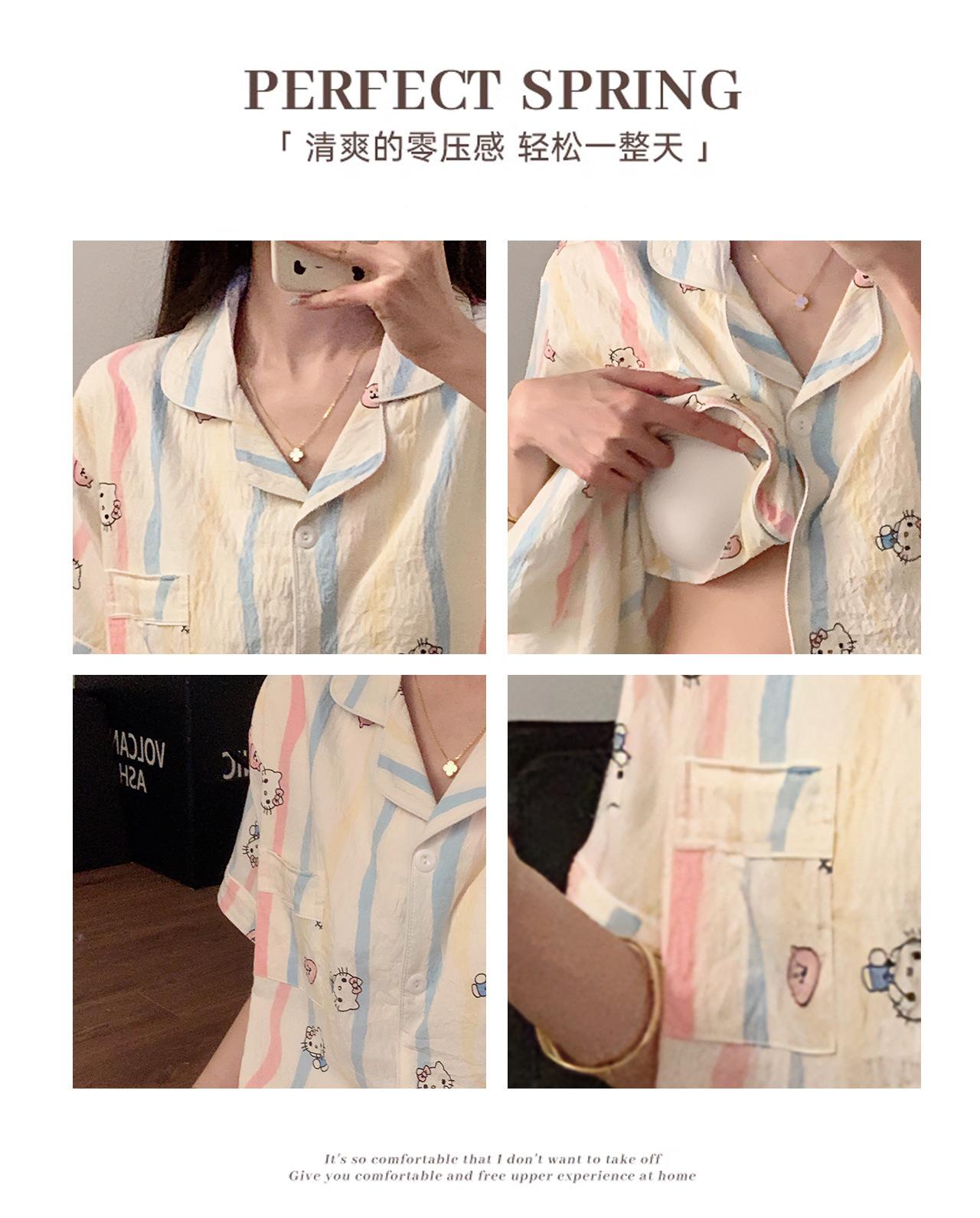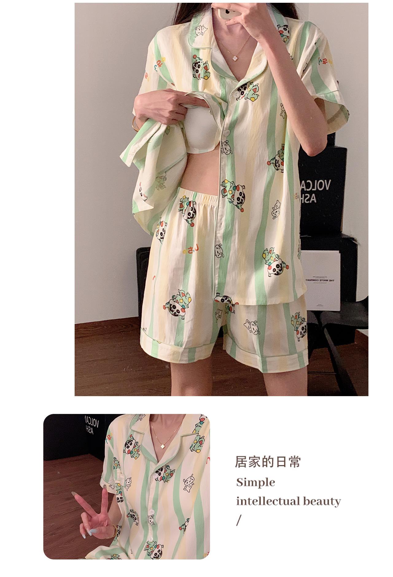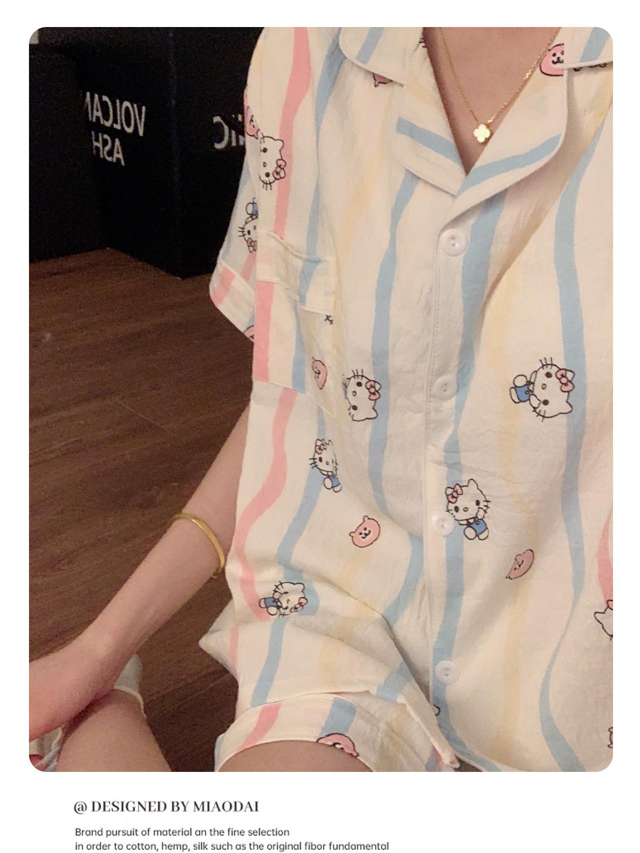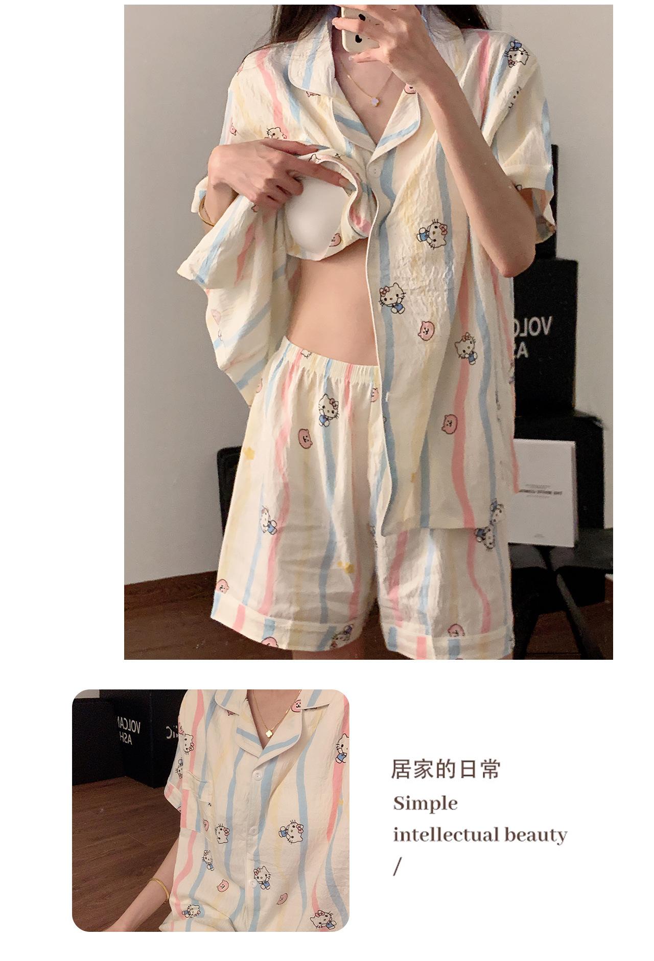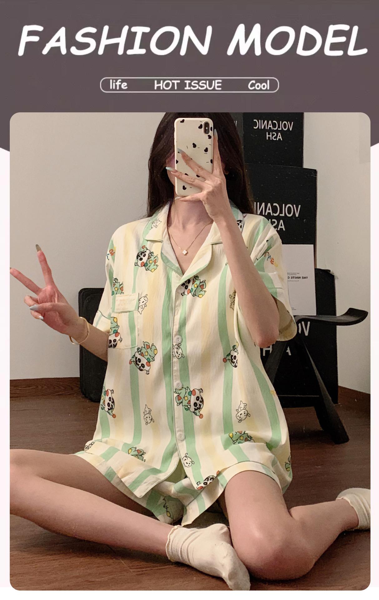 Pijama de verano para mujer, de algodón fino con nubes, de manga corta y pantalones cortos con almohadilla para el pecho, bonito estilo japonés, ropa de casa con dibujos animados, ideal para uso exterior.
