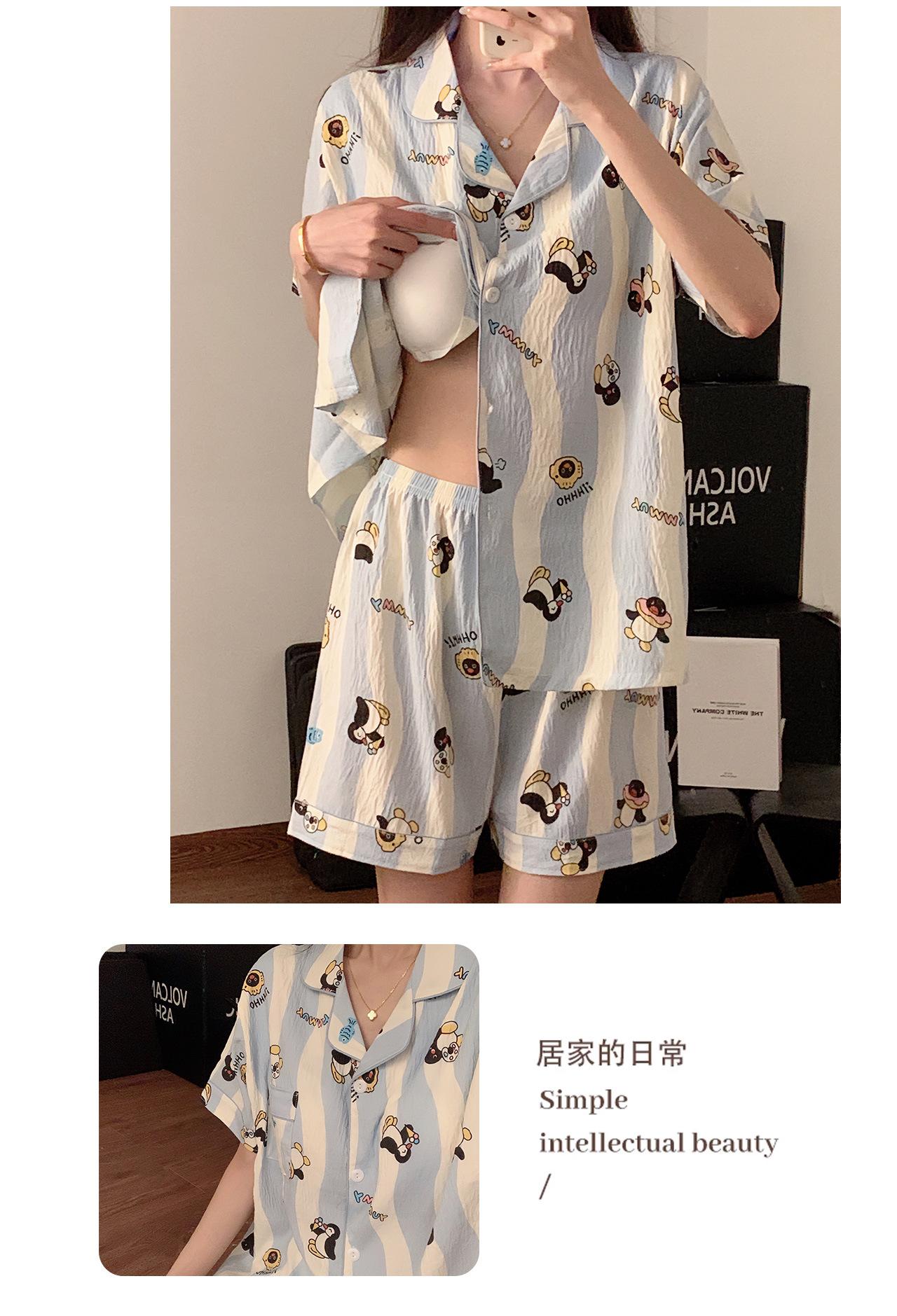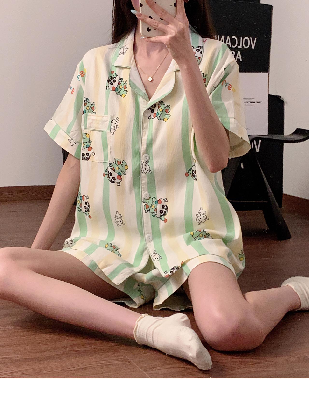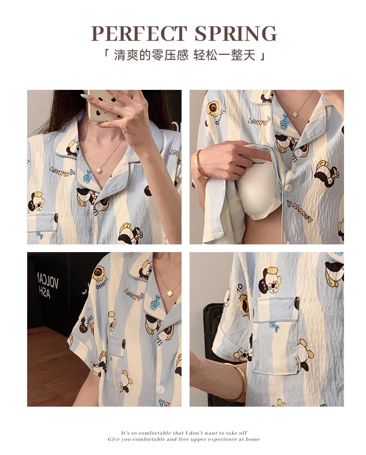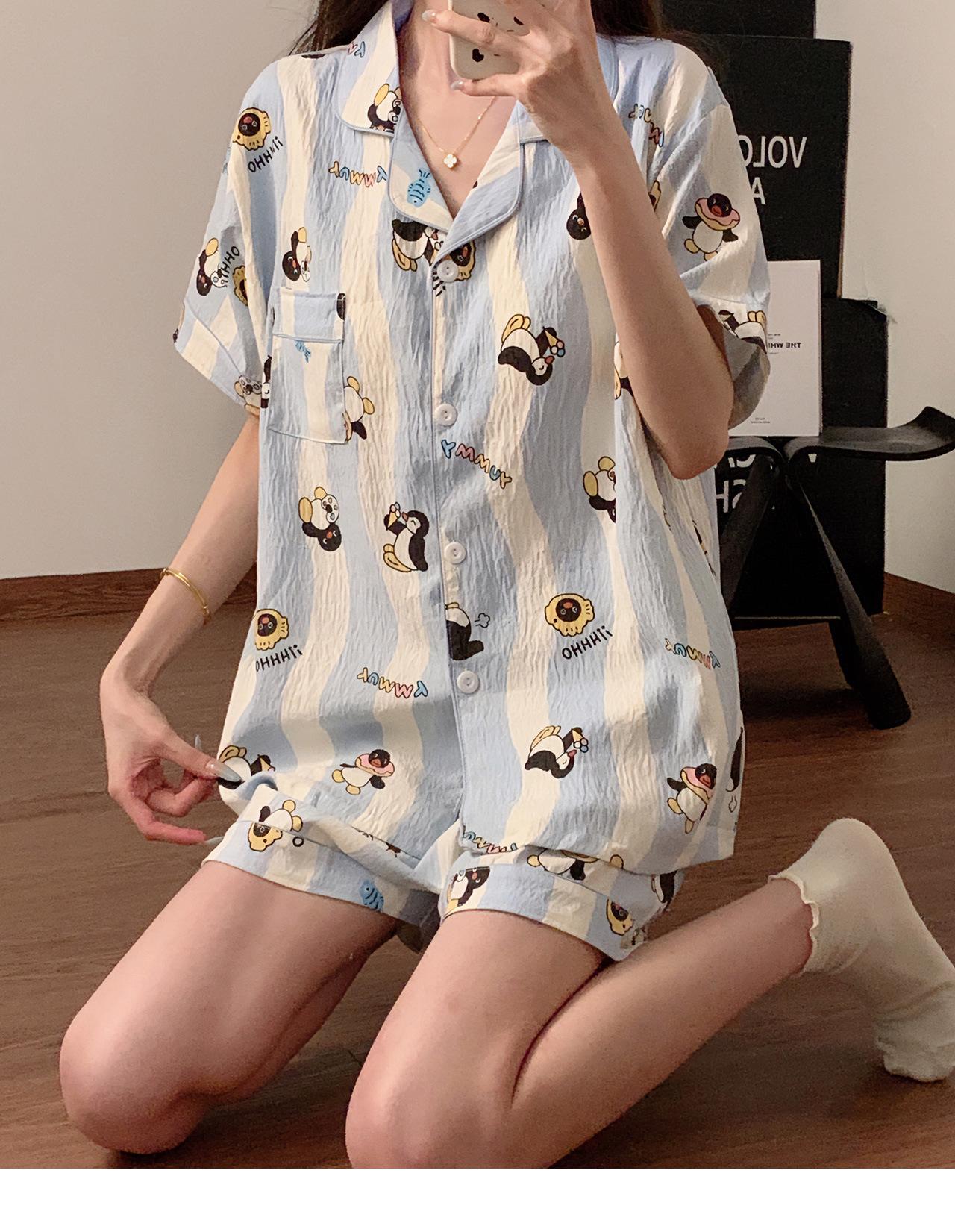 Pijama de verano para mujer, de algodón fino con nubes, de manga corta y pantalones cortos con almohadilla para el pecho, bonito estilo japonés, ropa de casa con dibujos animados, ideal para uso exterior.