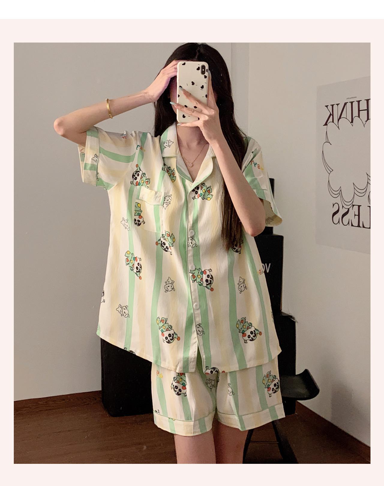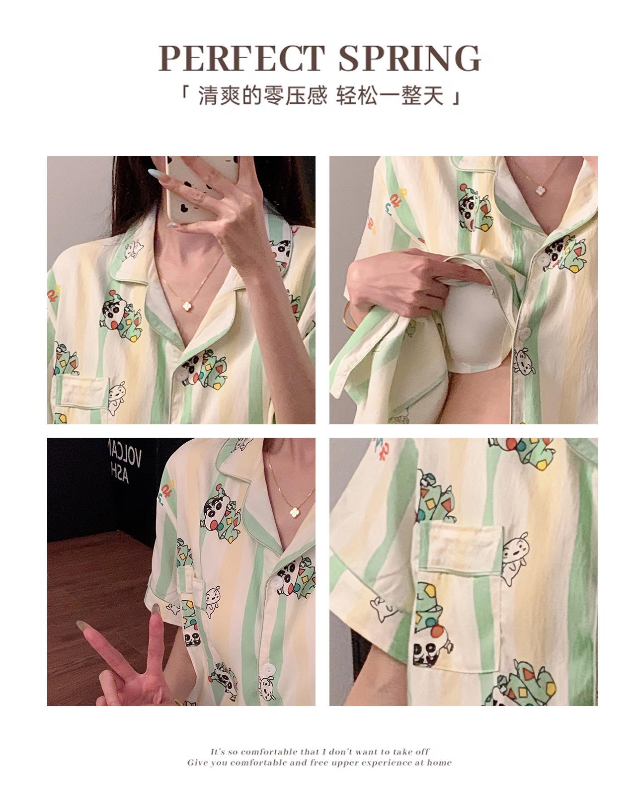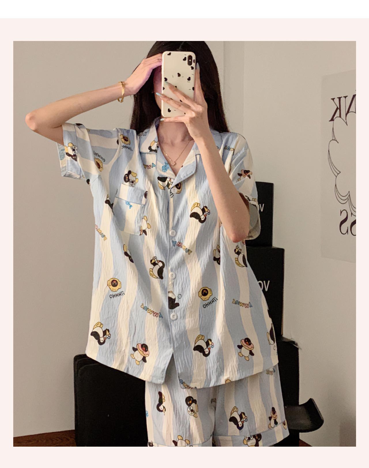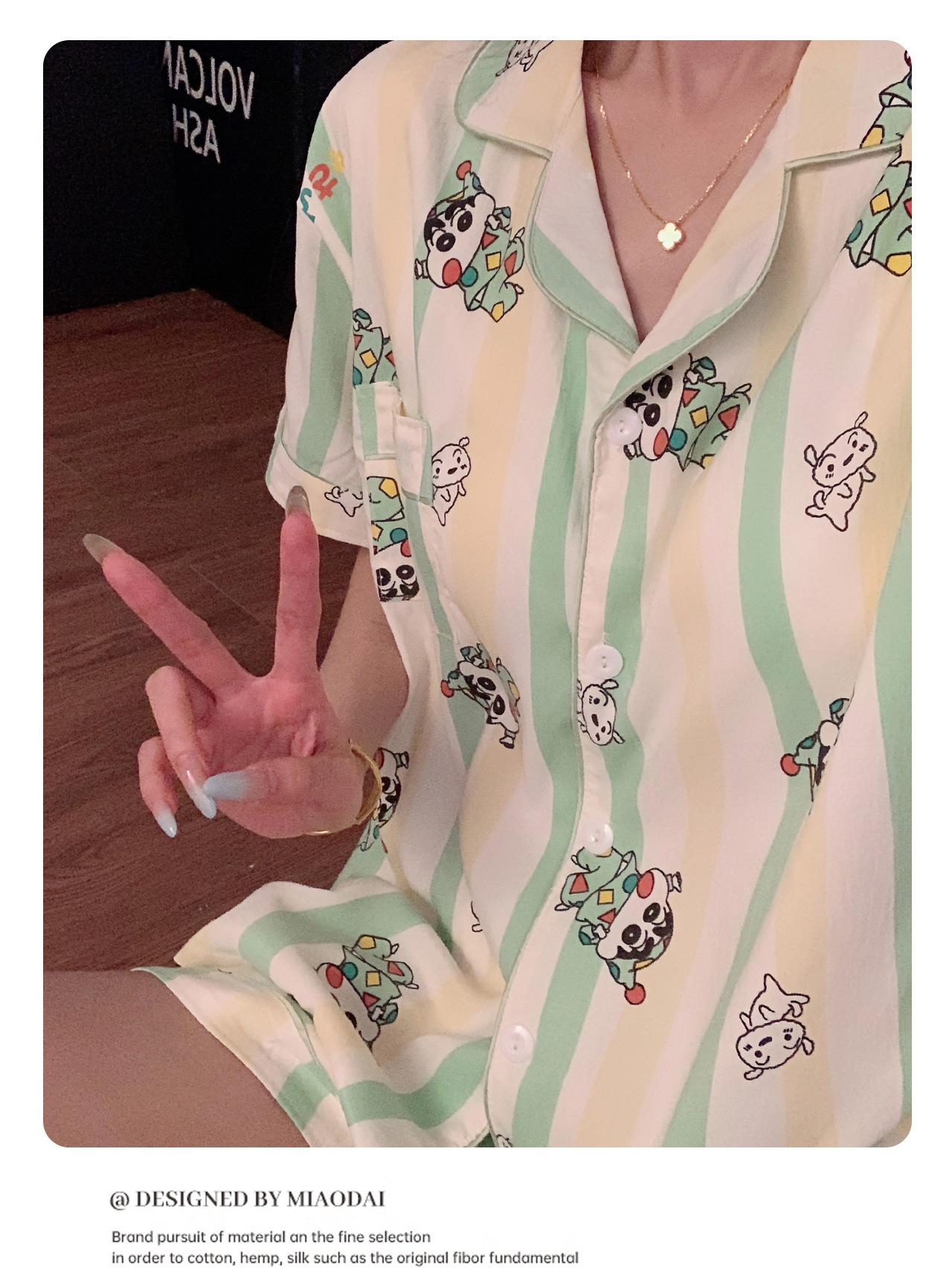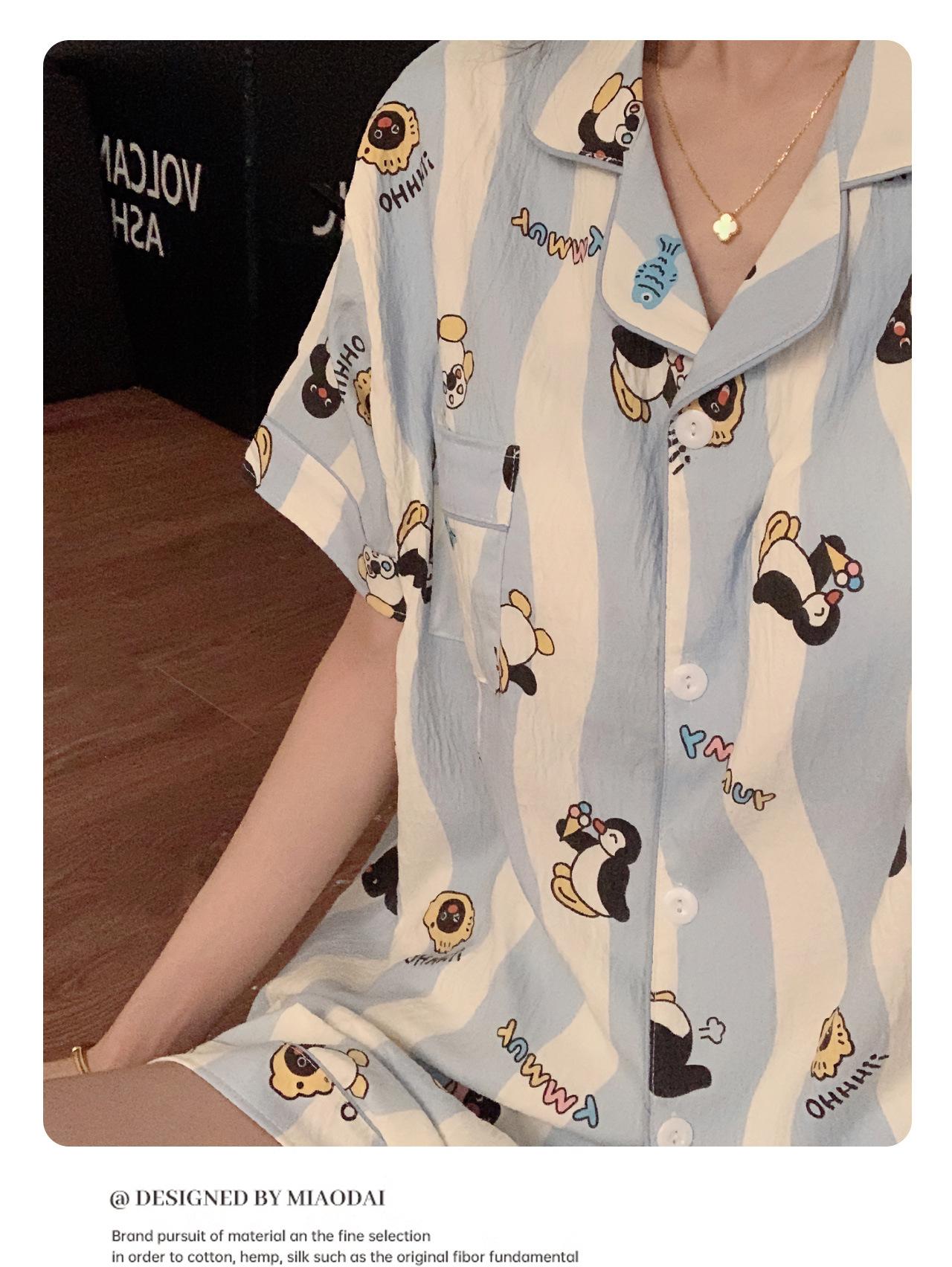 Pijama de verano para mujer, de algodón fino con nubes, de manga corta y pantalones cortos con almohadilla para el pecho, bonito estilo japonés, ropa de casa con dibujos animados, ideal para uso exterior.
