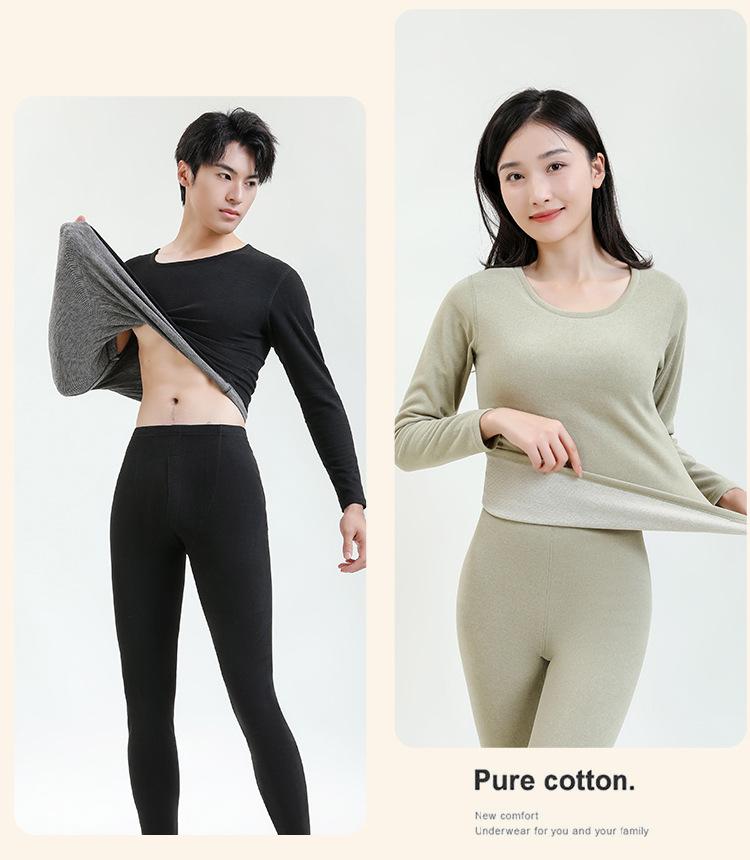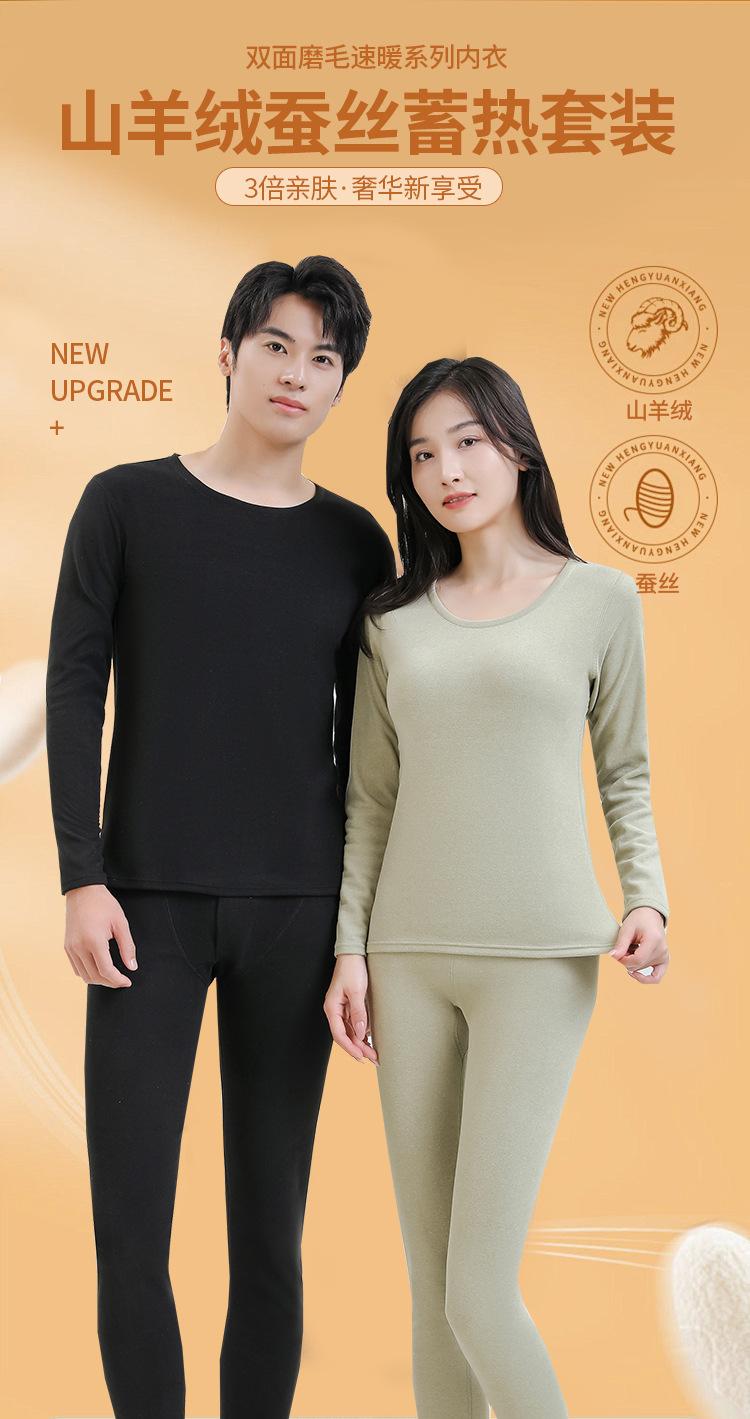 Ropa interior térmica de seda de cachemira para hombre y mujer, otoño e invierno, doble lijado, pantalones de otoño, pijamas de pareja con forro polar.