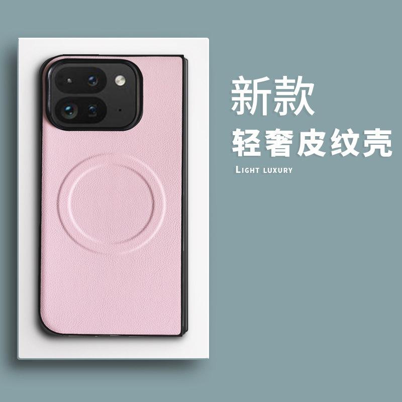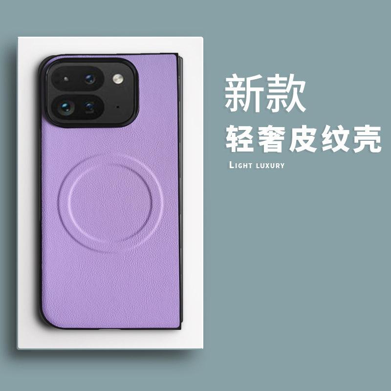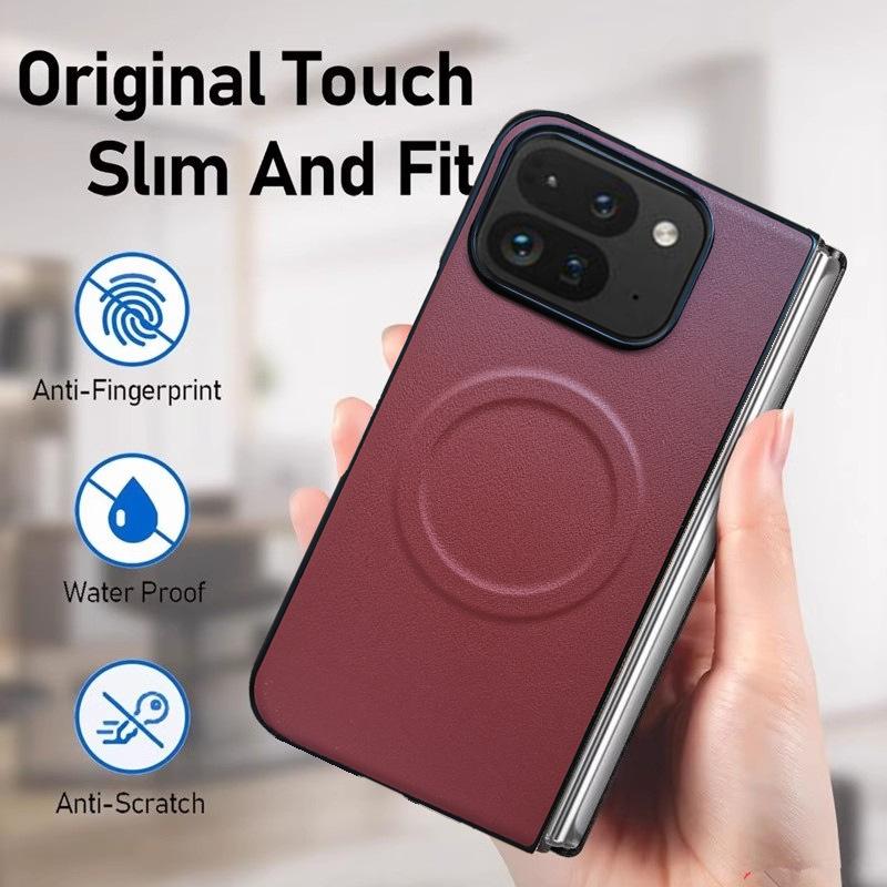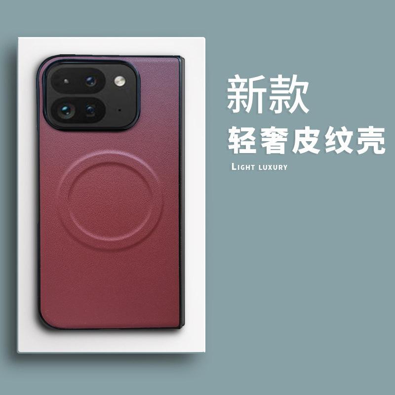 Adecuado para Funda de Teléfono Móvil Plegable de Google con Succión Magnética Textura de Cuero Funda Protectora Google Pixel10/9Pro Fold