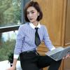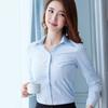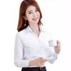Camisa Blanca de Mujer Jacquard Vertical Cuello en V Manga Larga Nueva Otoño e Invierno Ajustada Camisa Base Ropa de Negocios Manga Larga Ropa de Trabajo