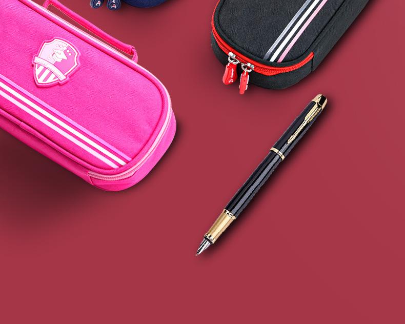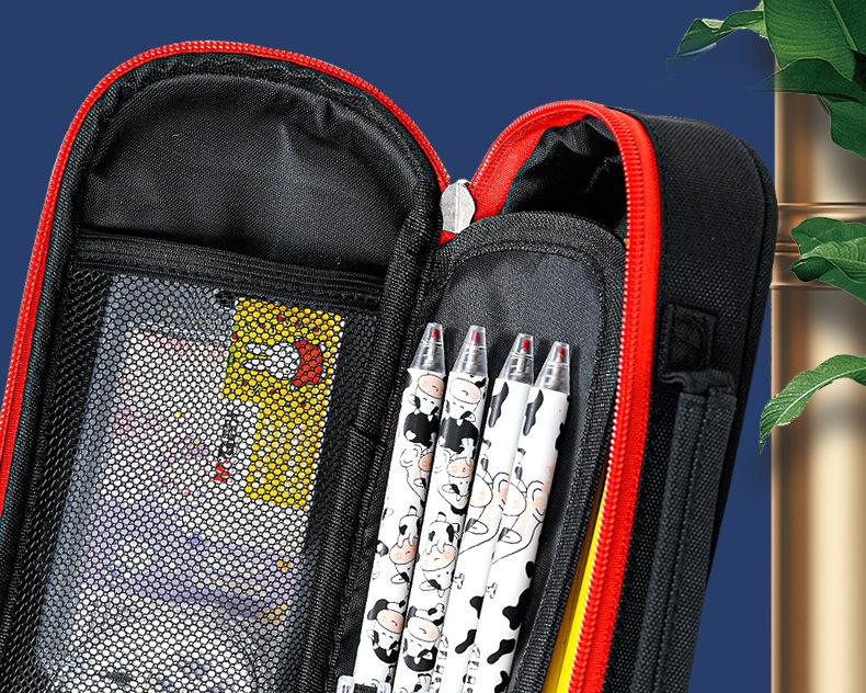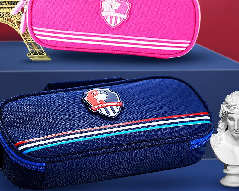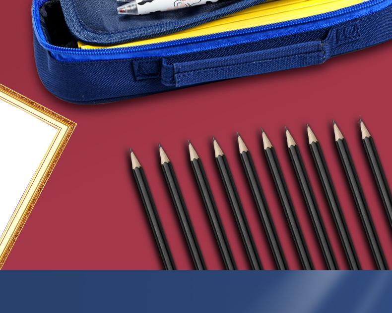 Estuche de lona para lápices de gran capacidad, sencillo, portátil, para papelería, estuche para lápices con doble cremallera, estuche para lápices de doble capa para estudiantes de secundaria, venta al por mayor