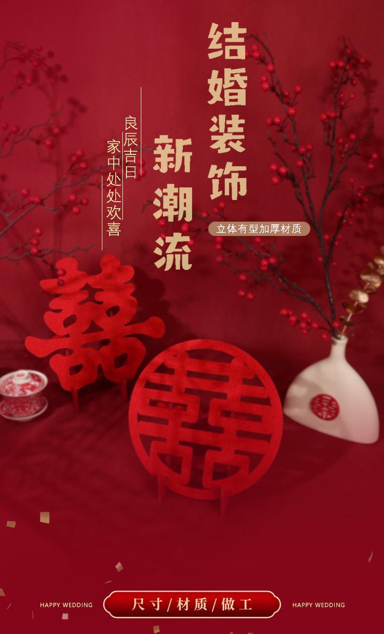 Adornos de tela no tejida con el carácter Xi tamaño pequeño - Cao Xi peso real: 47g peso volumétrico 94g