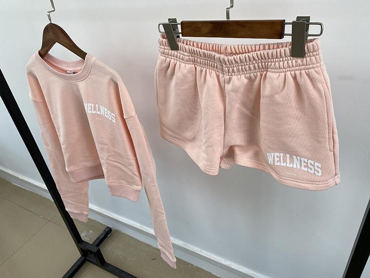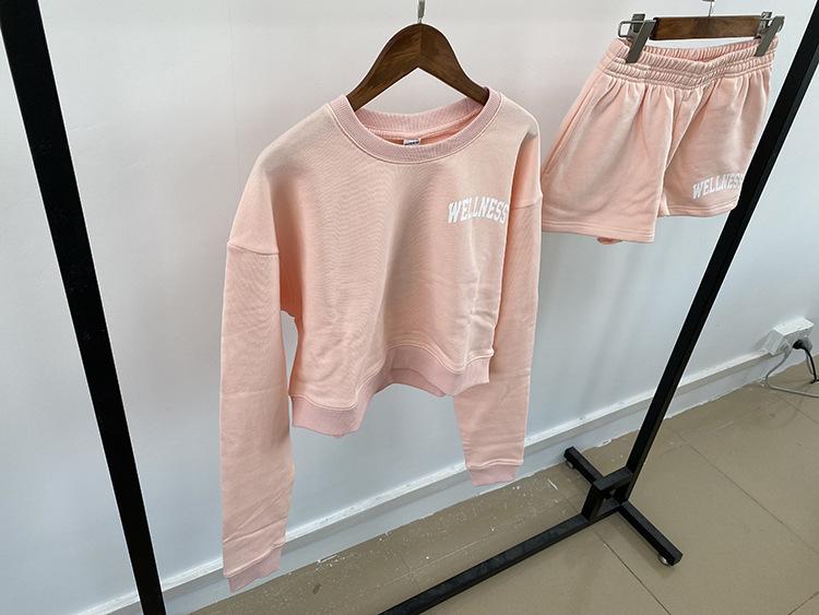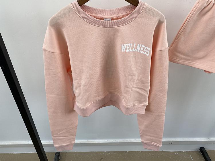 22 otoño e invierno nuevo nicho norteamericano SP clásico estampado de letras sudadera de mujer de manga corta larga de algodón puro cuello redondo