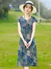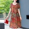 2025 Nuevo Estilo de Verano Vestido de Algodón Seda para Mujer Floral Moda para Mamá Mediana Edad y Adulta Mayor Falda de Algodón Artificial