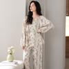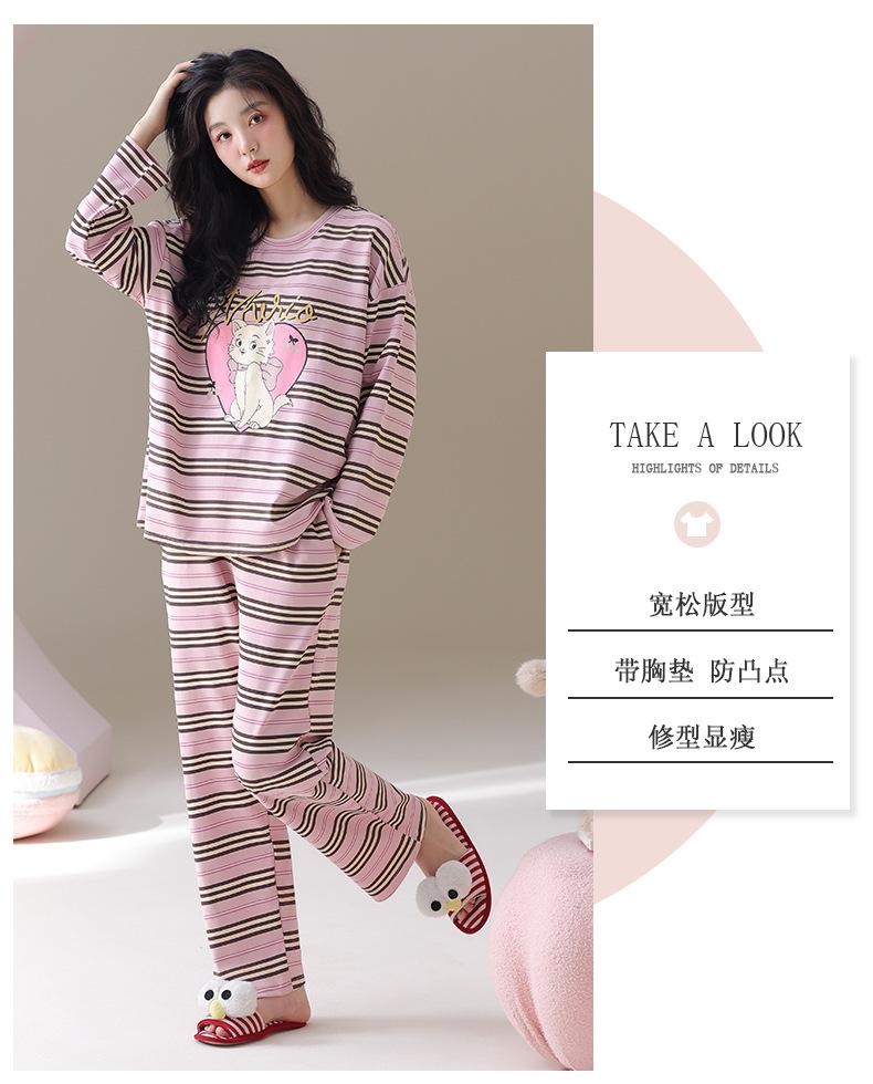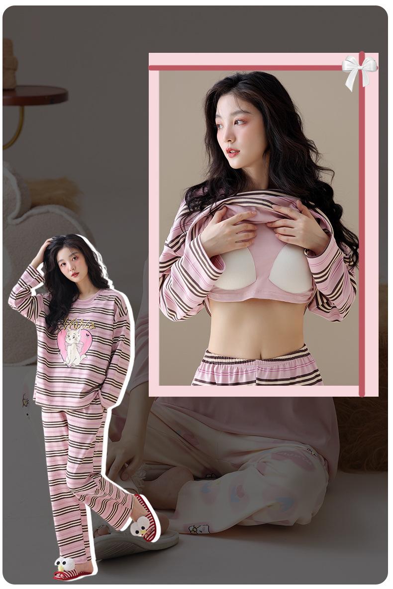 Pijamas de algodón puro para mujer con almohadilla para el pecho, primavera, otoño e invierno, manga larga, ropa de hogar a la moda, antigolpes, novedad de 2025.