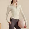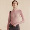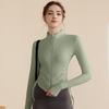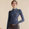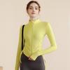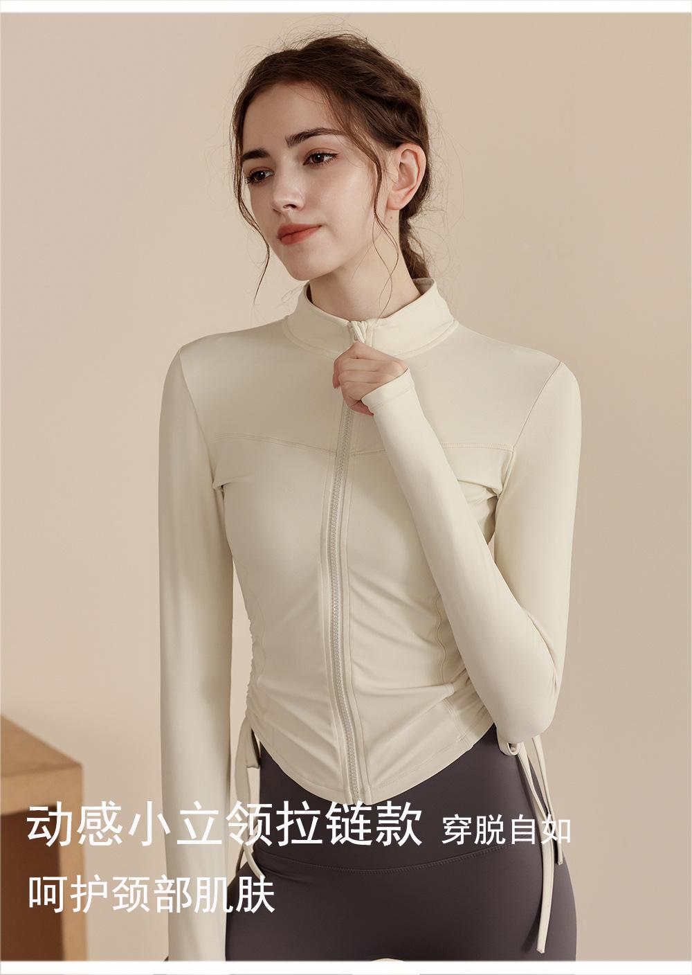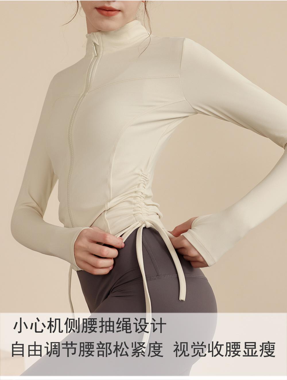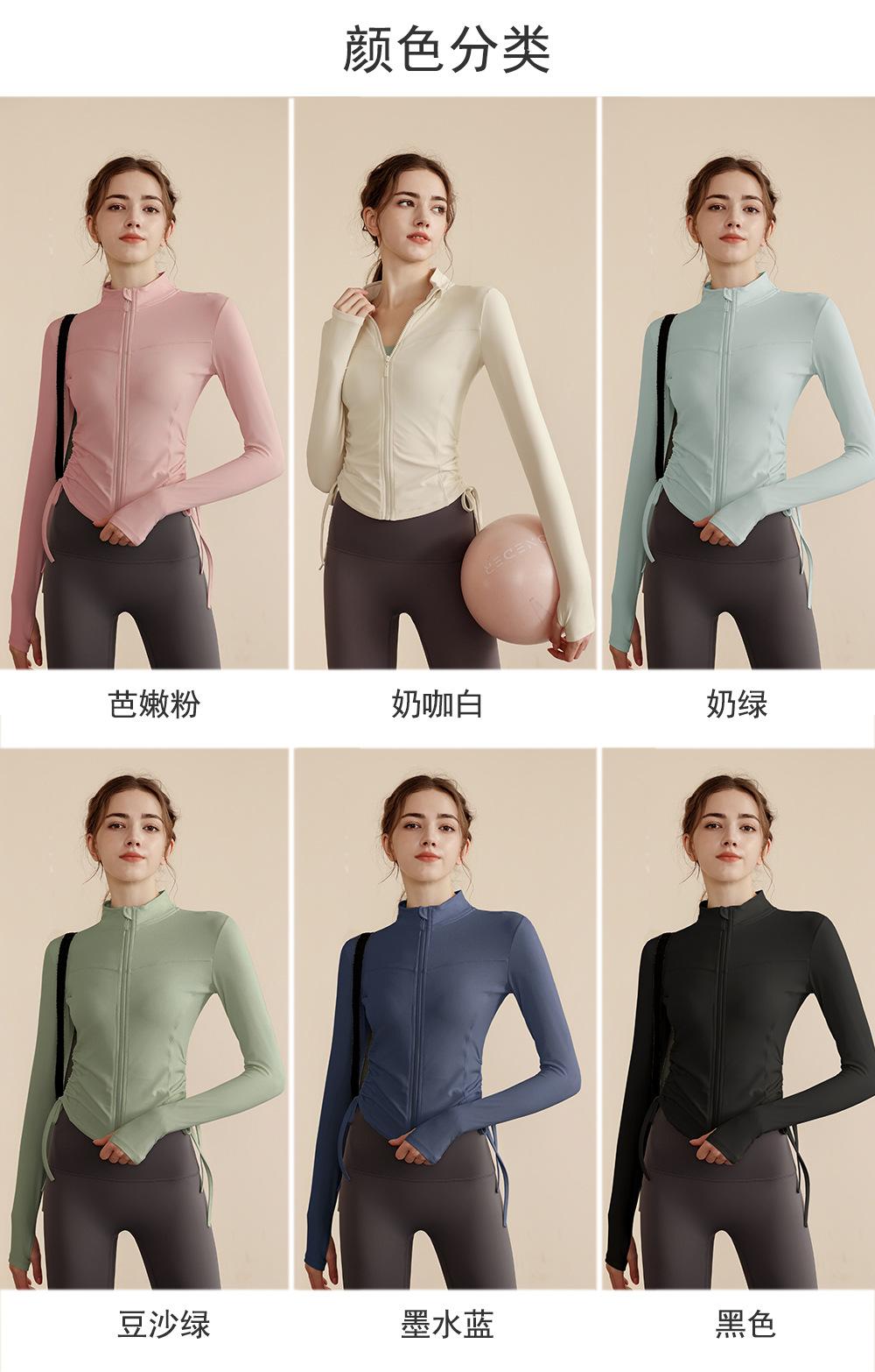 Ropa de yoga para mujer, chaqueta deportiva con cremallera y cuello vertical, cordón ajustable, secado rápido, ajuste ajustado, ropa deportiva de manga larga.