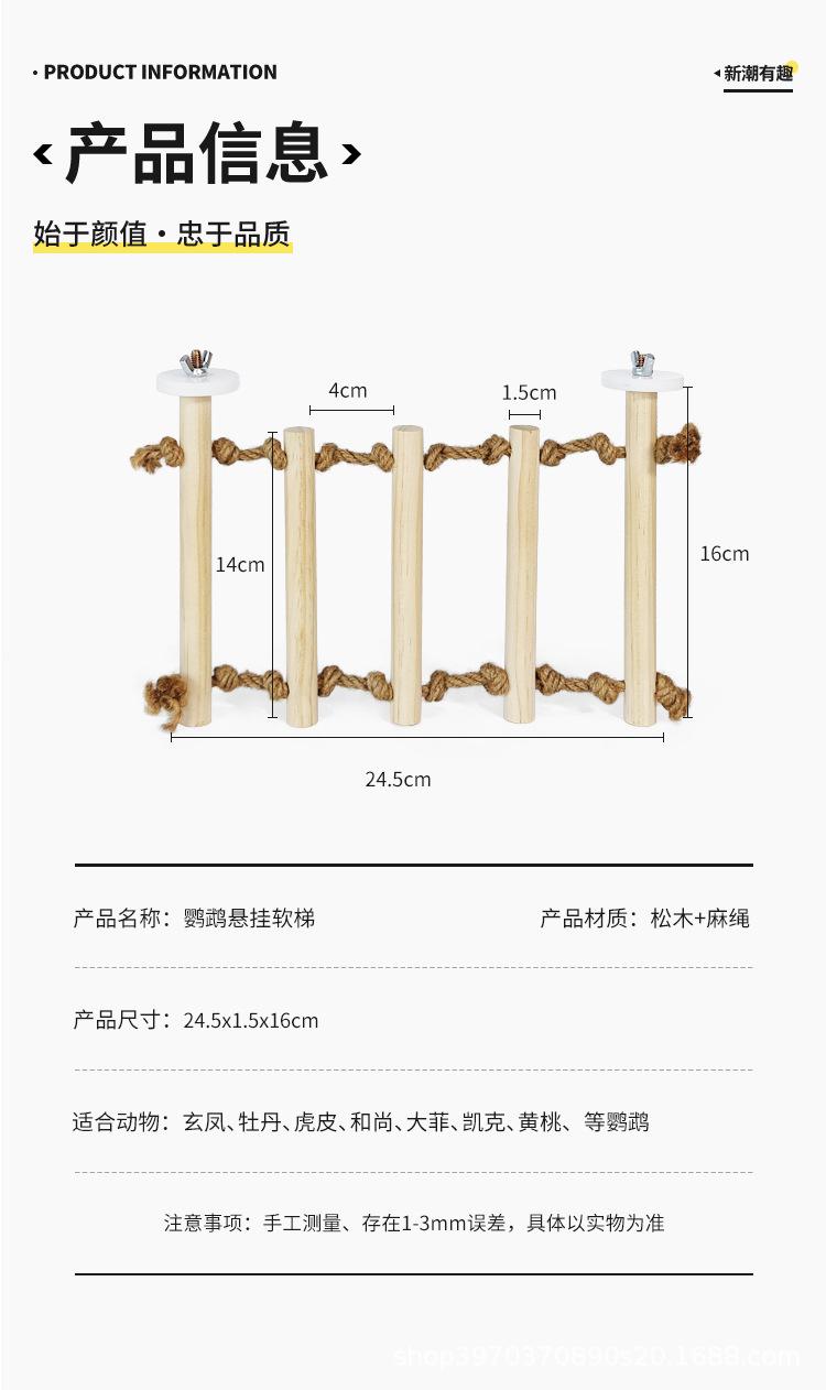 Escalera de madera para loros, puente colgante, escalera para pájaros, puente blando, juguete fijo para morder loros, juguete para pájaros, venta al por mayor