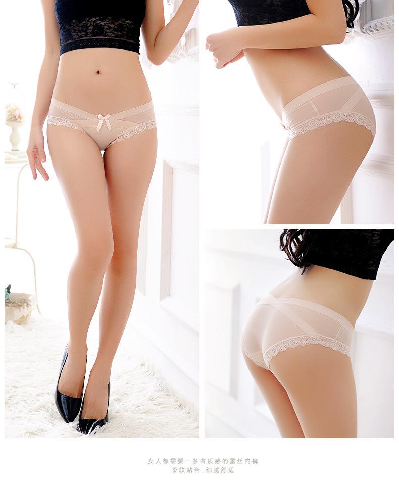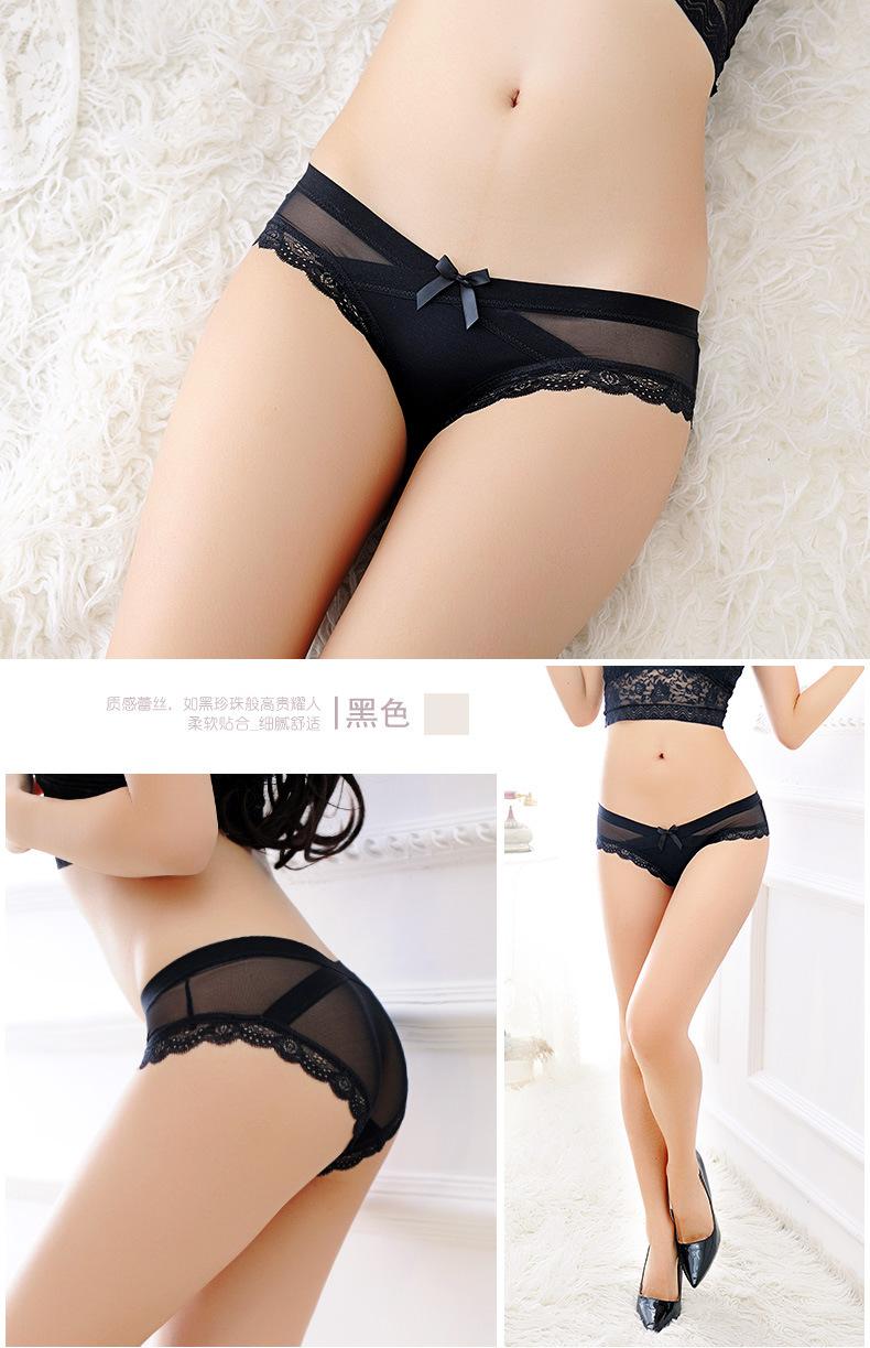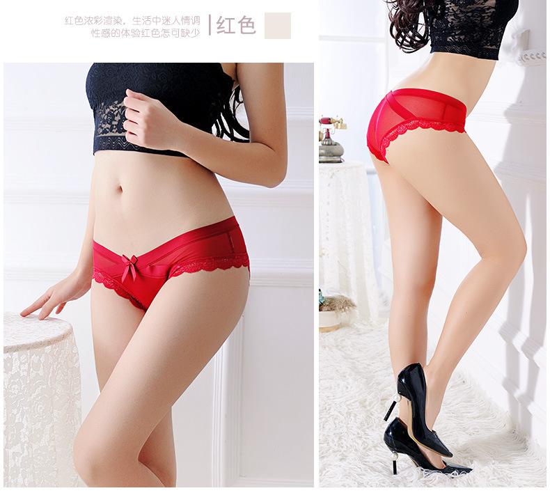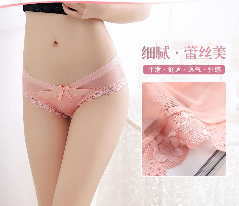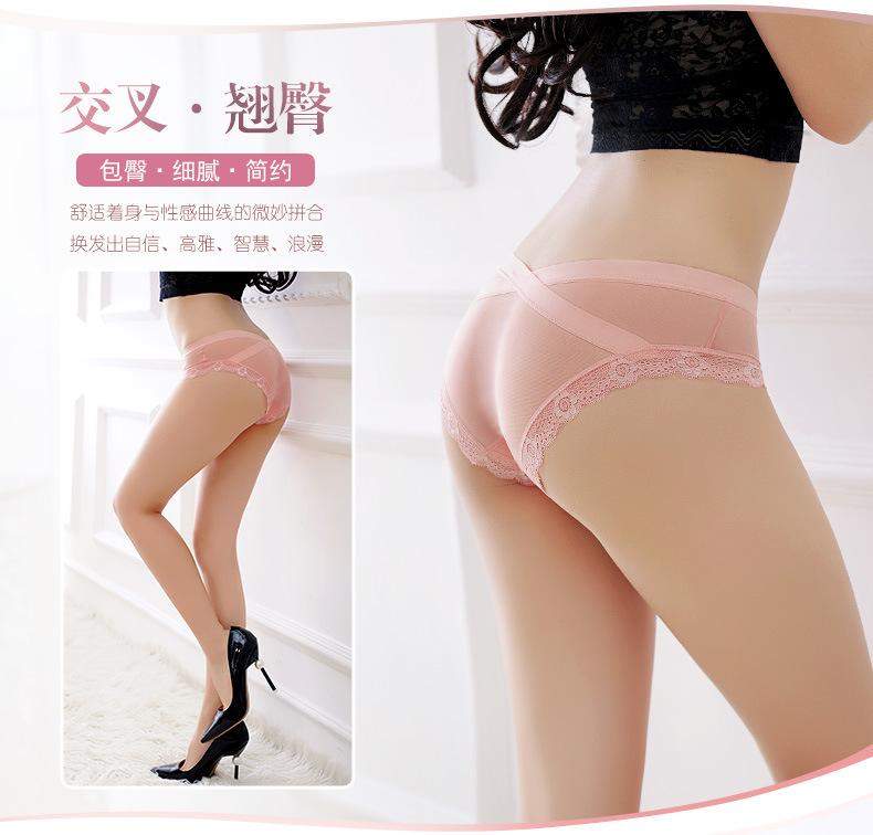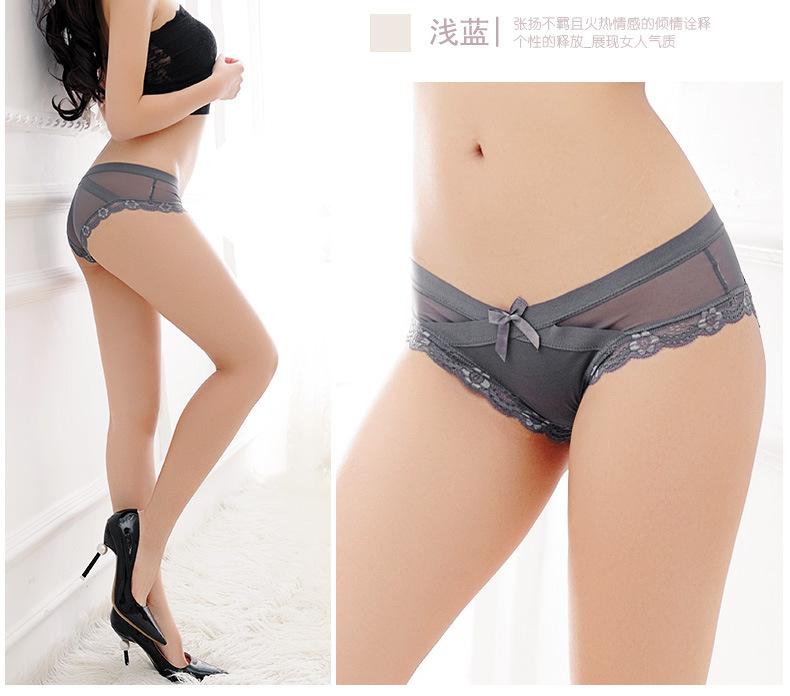 Encaje estilo sexy seductor tiro bajo sin costuras calzones entrepierna de algodón para mujer malla cruzada transparente ropa interior para mujer al por mayor