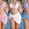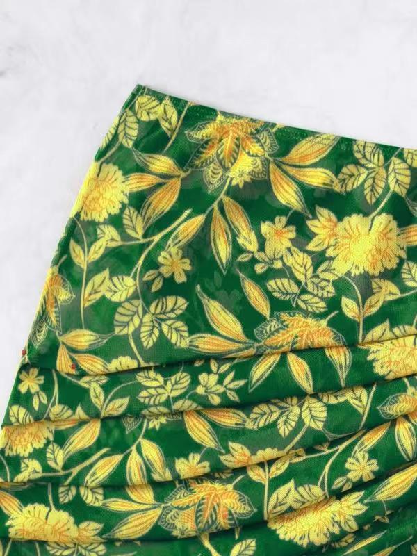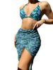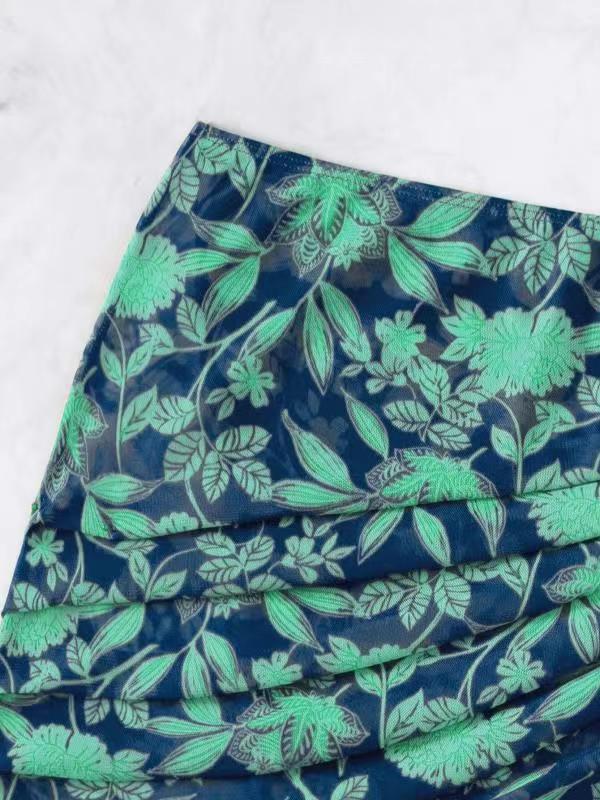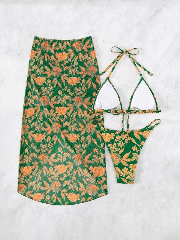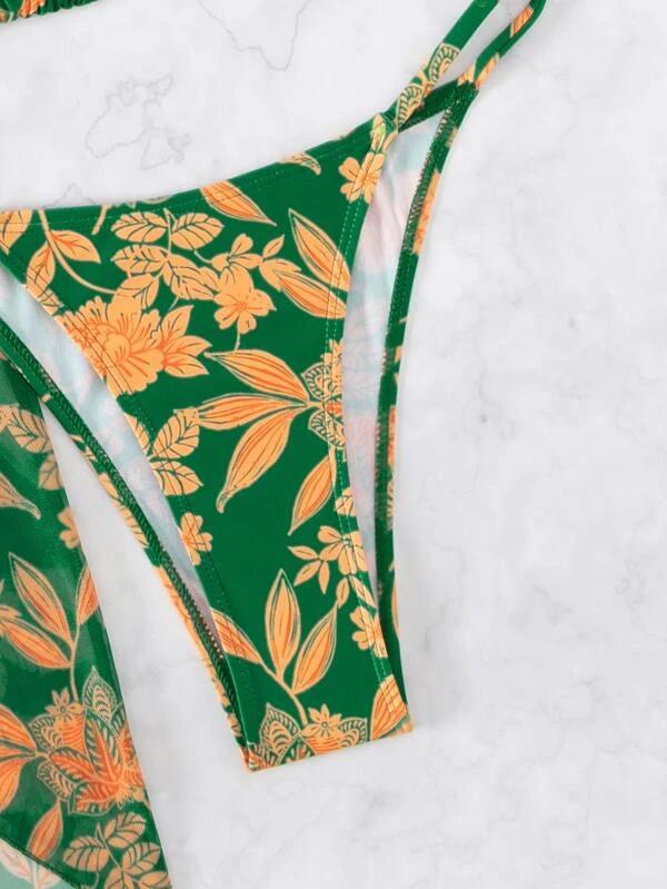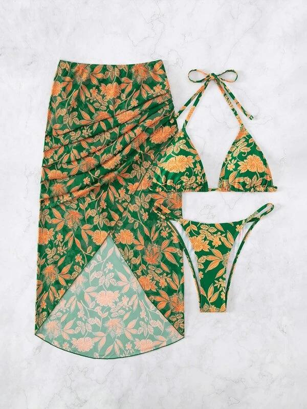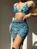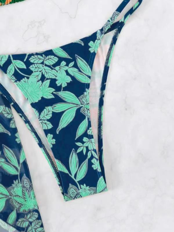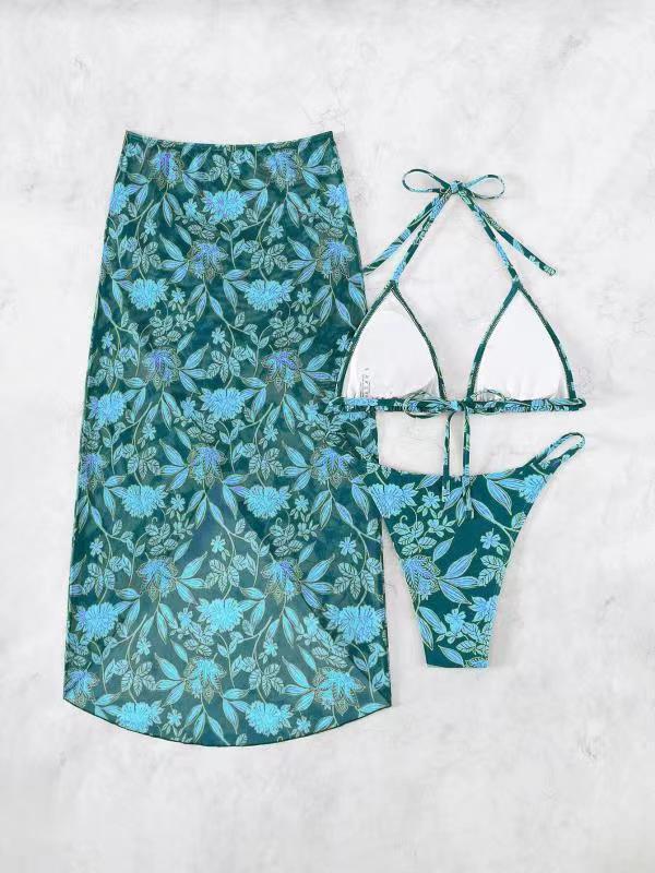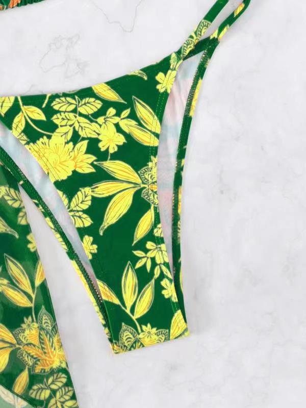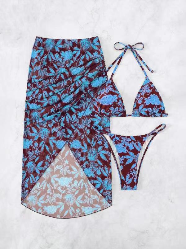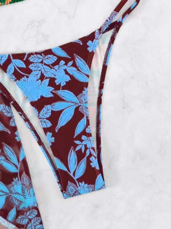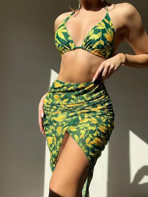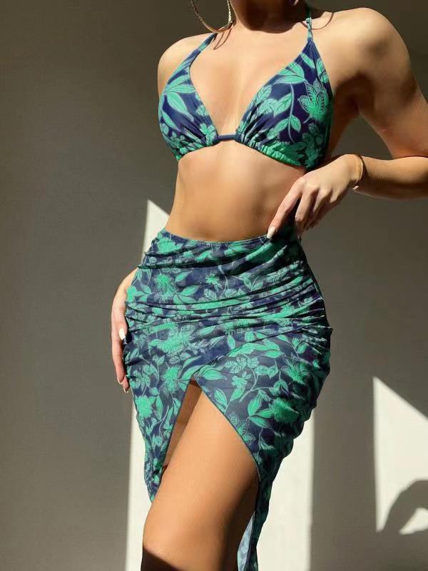 2024 nuevo traje de baño de comercio exterior con estampado de hojas transfronterizo europeo y americano, bikini dividido de tres piezas sexy, bikini femenino