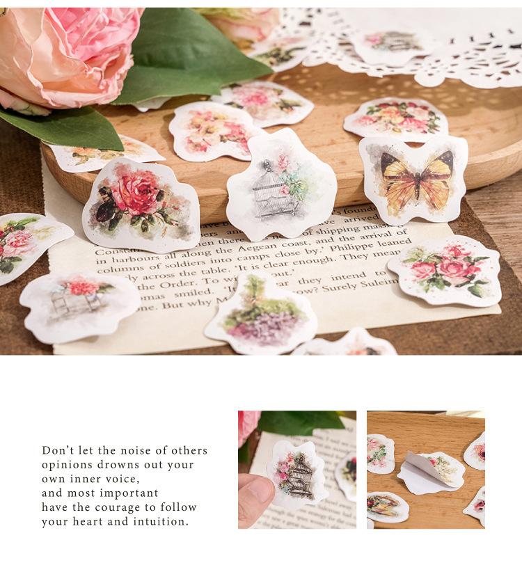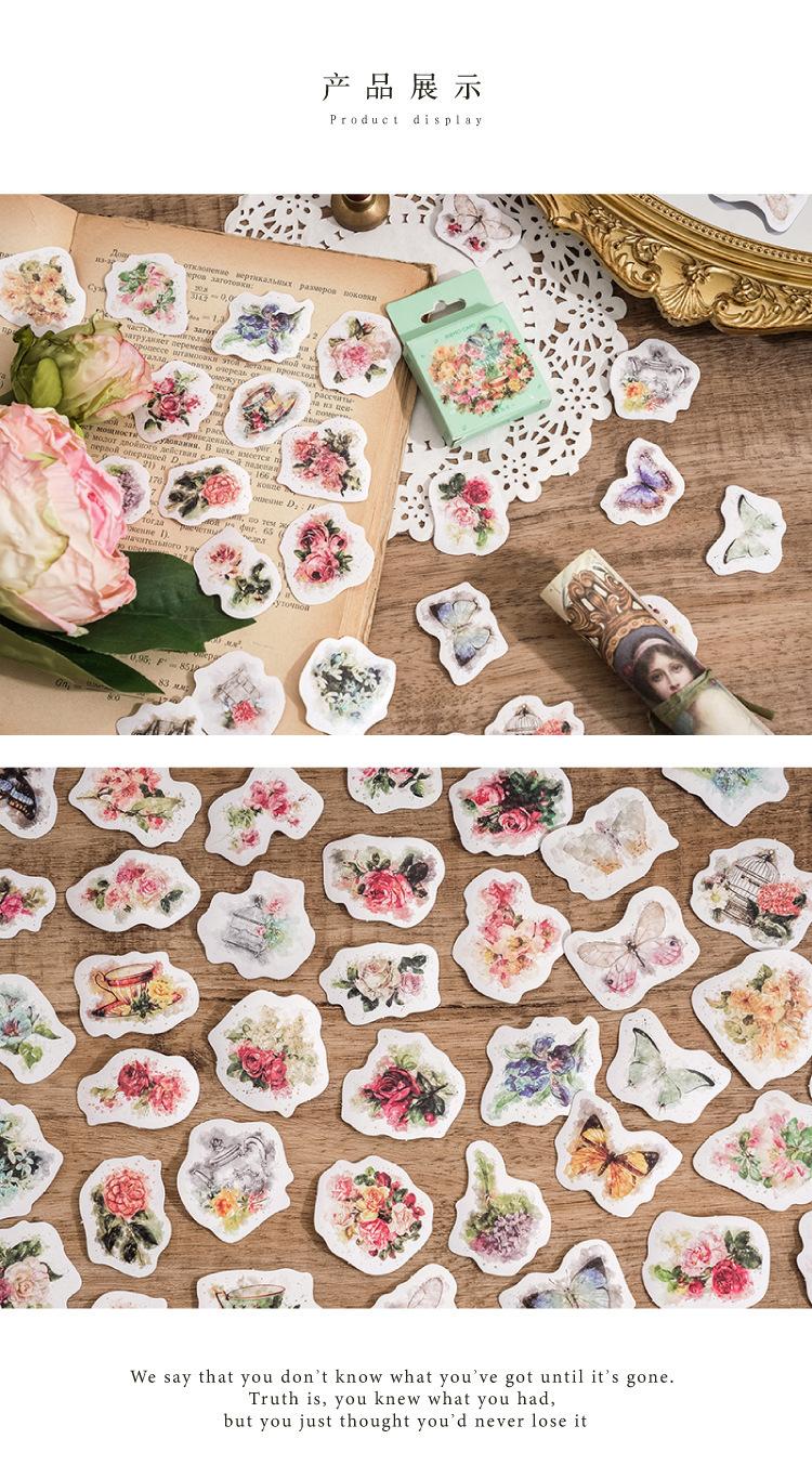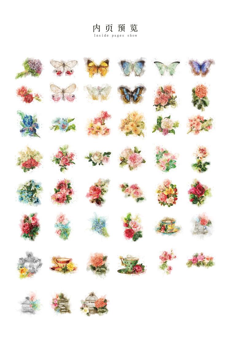 Pegatinas en caja Mo Mo, serie Fiesta en el jardín, Planta, Flor, Mano, Cuenta, Material de decoración, Pegatinas adhesivas, 45