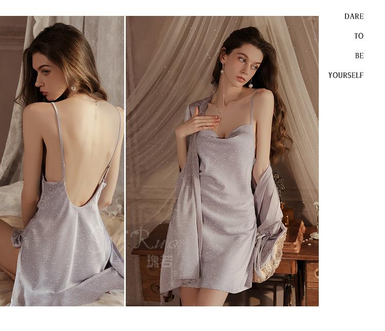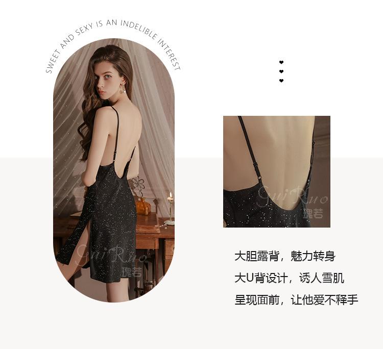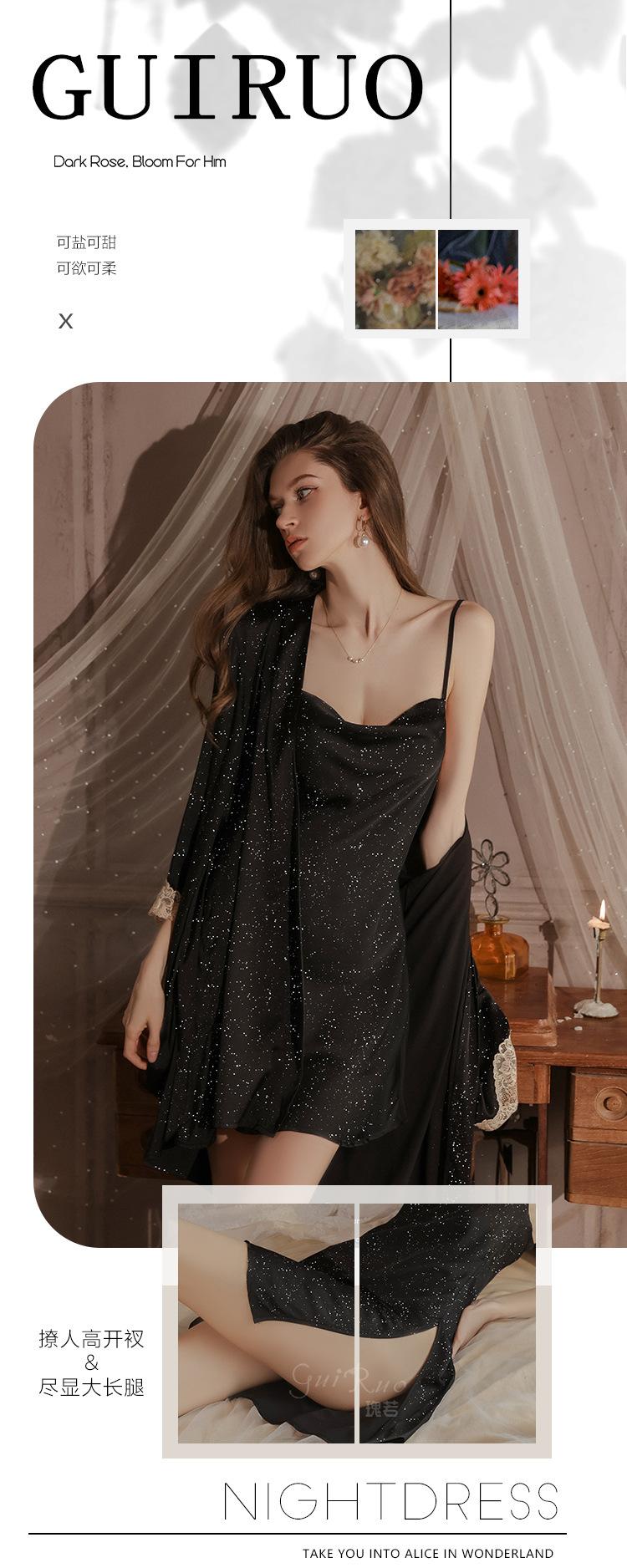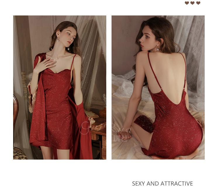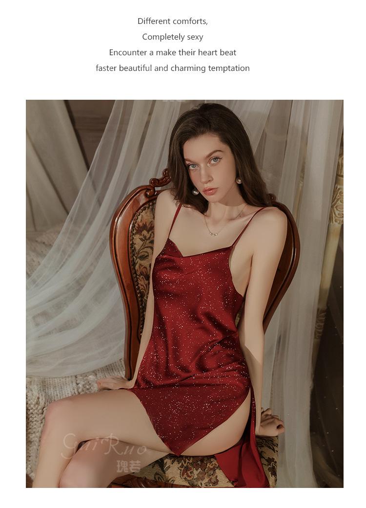 Guiruo Intimates Camisón de Tirantes para Mujer con Cuello Bardot Hot Profundo en V sin Espalda Cómodo Batín Exterior Talla Grande Conjunto para Estar en Casa 4563