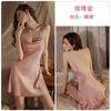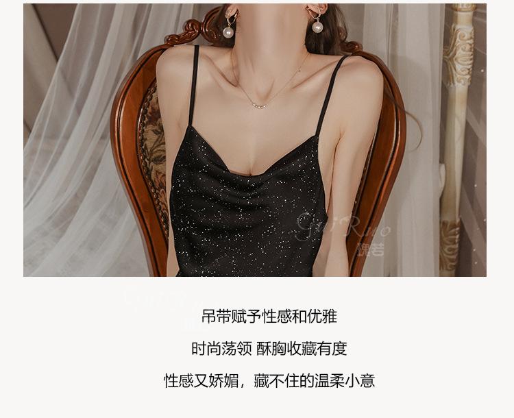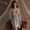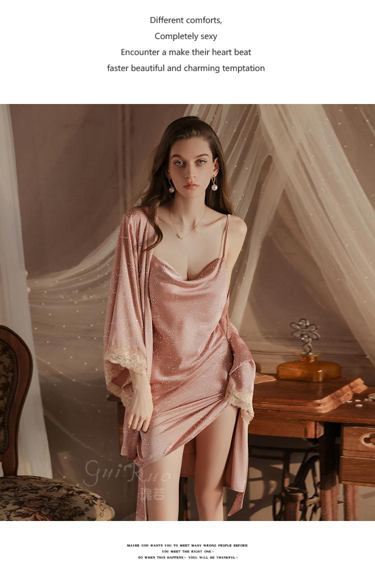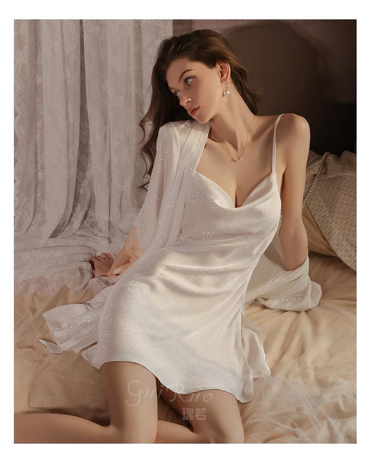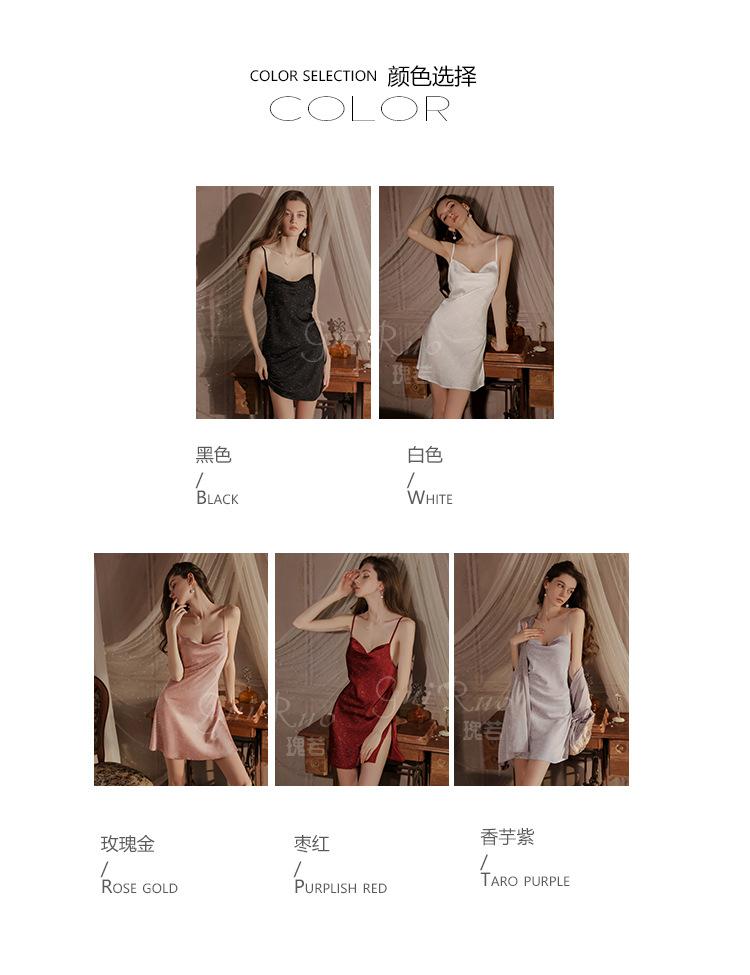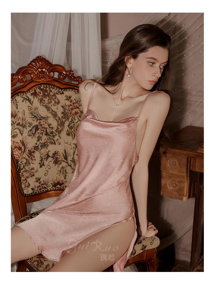 Guiruo Intimates Camisón de Tirantes para Mujer con Cuello Bardot Hot Profundo en V sin Espalda Cómodo Batín Exterior Talla Grande Conjunto para Estar en Casa 4563