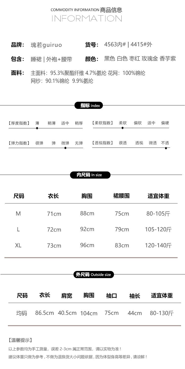 4563 black (nightgown), 4415 black (robe + belt), 4563 white (nightgown), 4415 white (robe + belt), 4563 maroo...