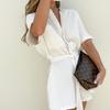 Mono de crepé de algodón blanco estilo francés de lujo ligero 2023 nueva moda de otoño europea y americana comercio exterior pantalones cortos de mujer