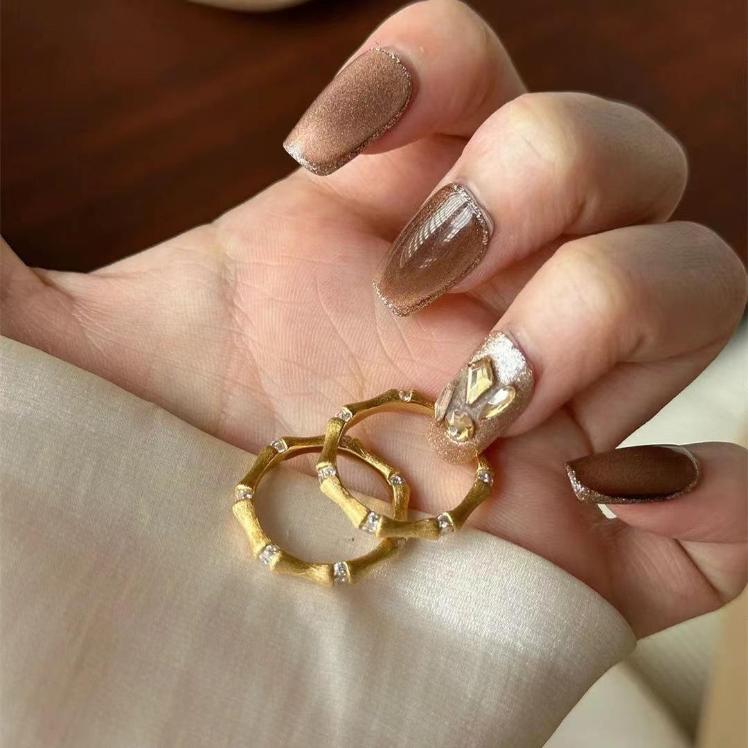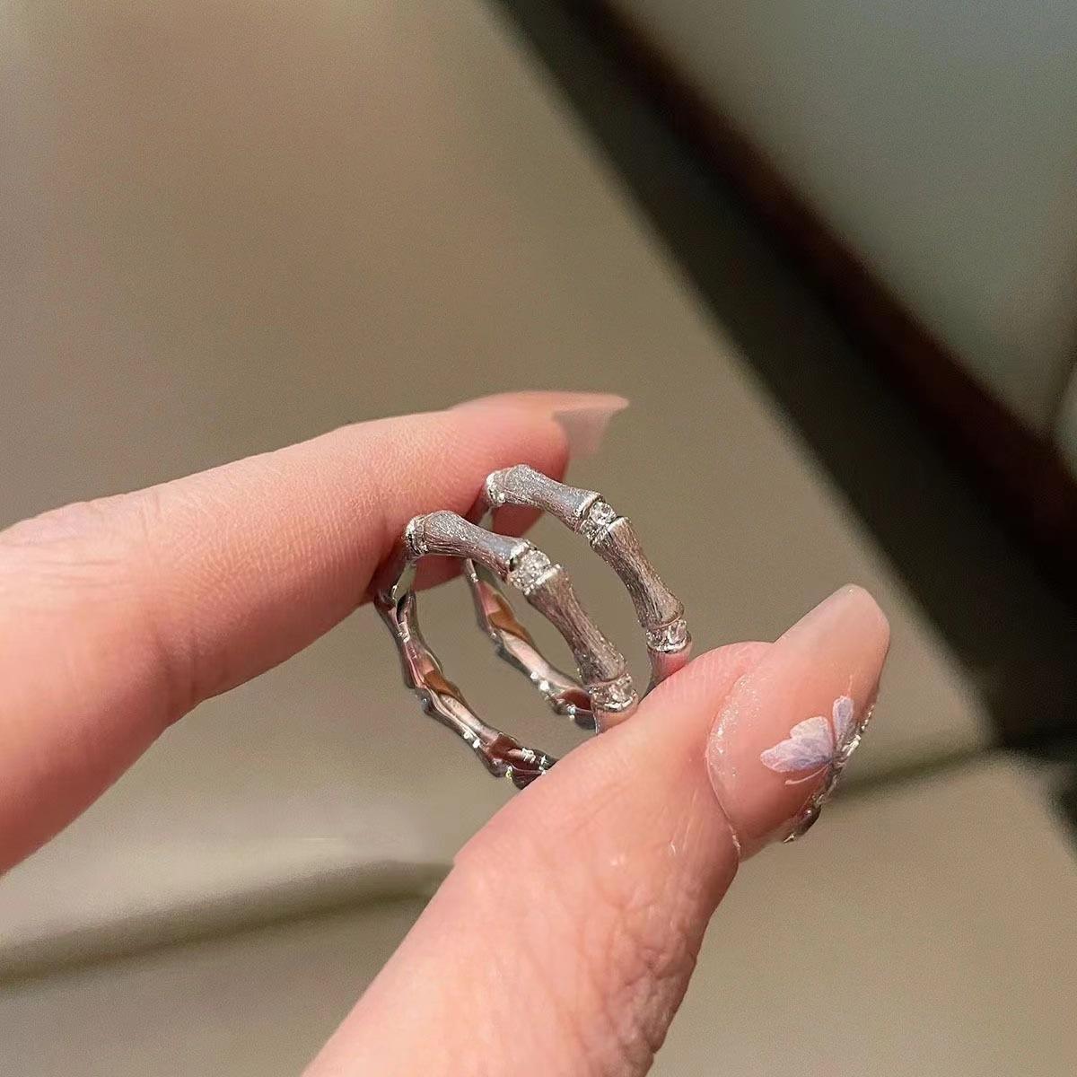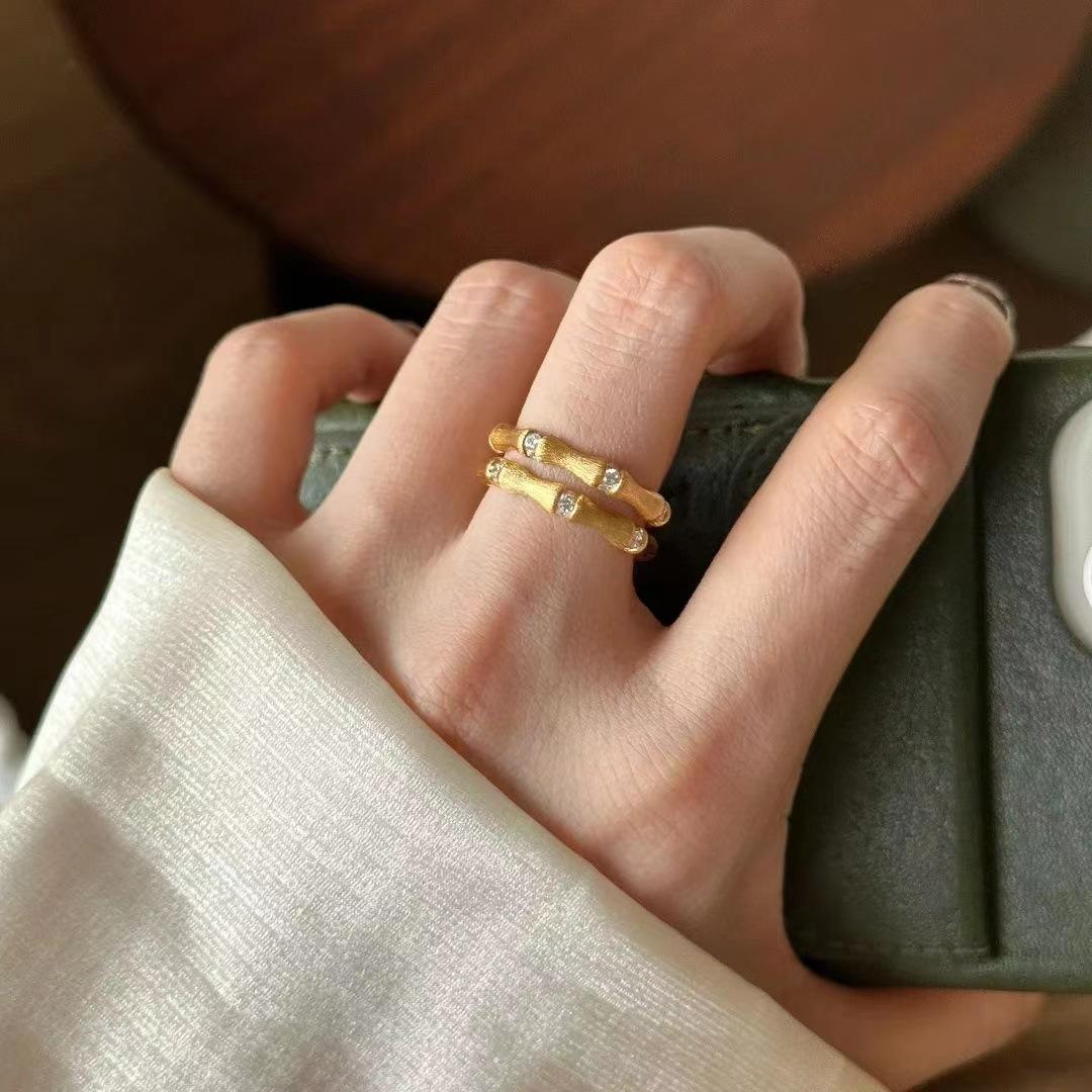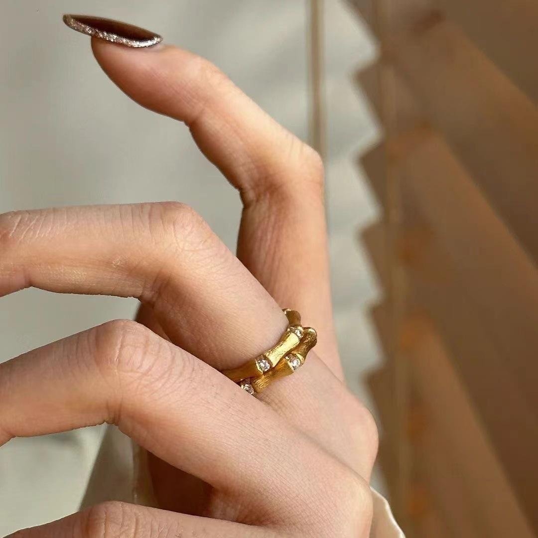 Nuevo Anillo de Diamantes de Bambú Estilo Chino para Mujer Nicho Exquisito Lujo Ligero de Alta Gama Anillo Versátil 2024 Nuevo Venta al por Mayor