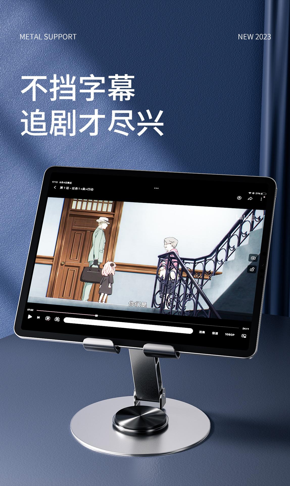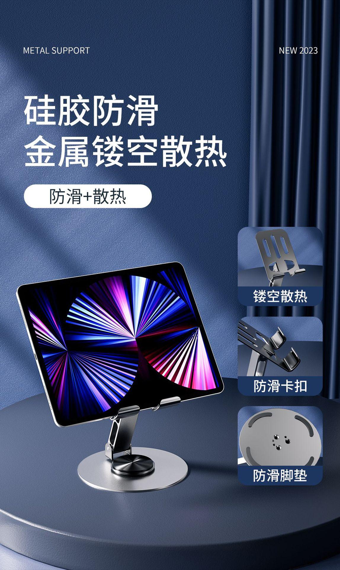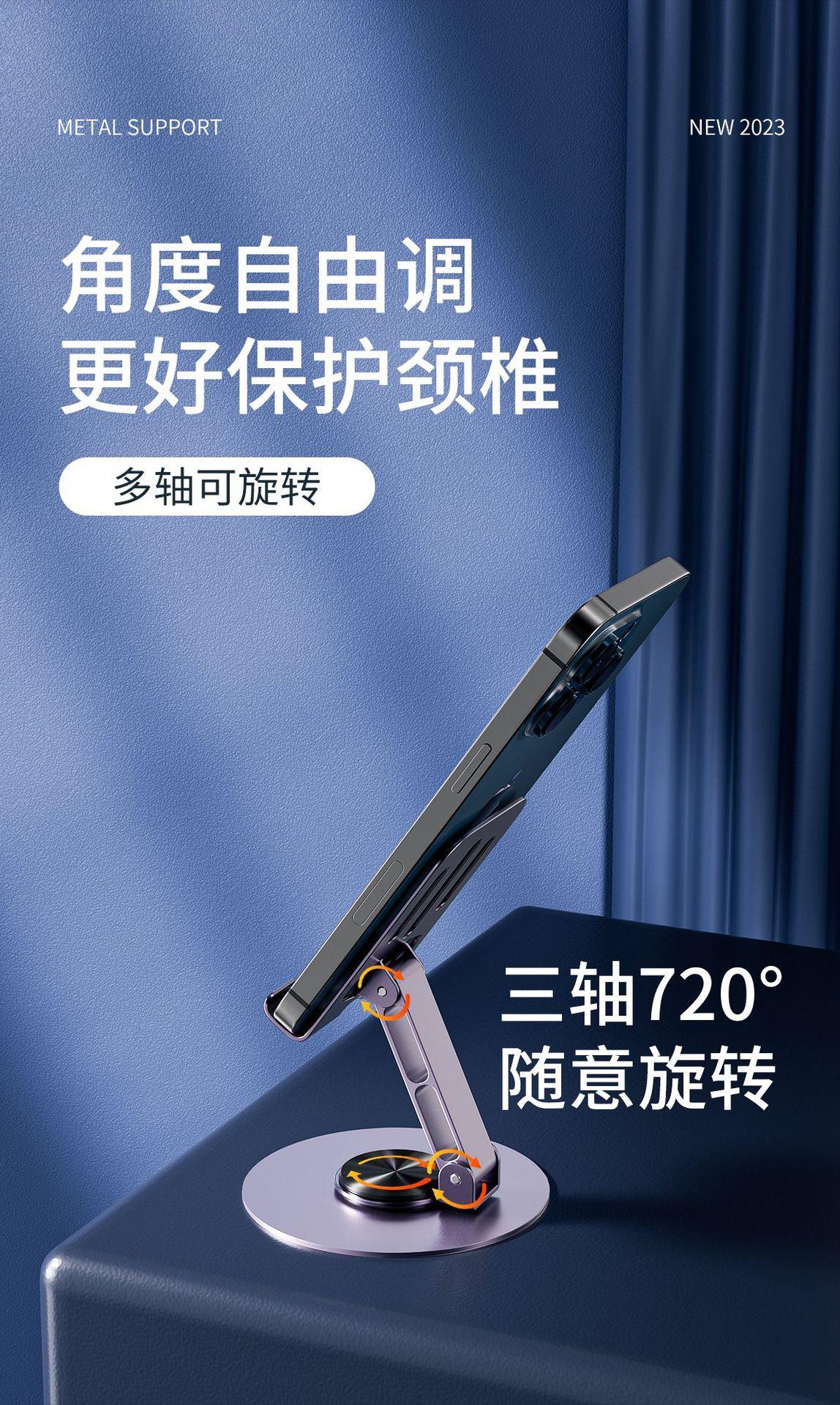 [Versión Lujo Ligero] Soporte Giratorio para Teléfono Móvil Totalmente Metálico Doble Soporte de Escritorio Plegable Transmisión en Vivo Ver Drama Soporte Perezoso