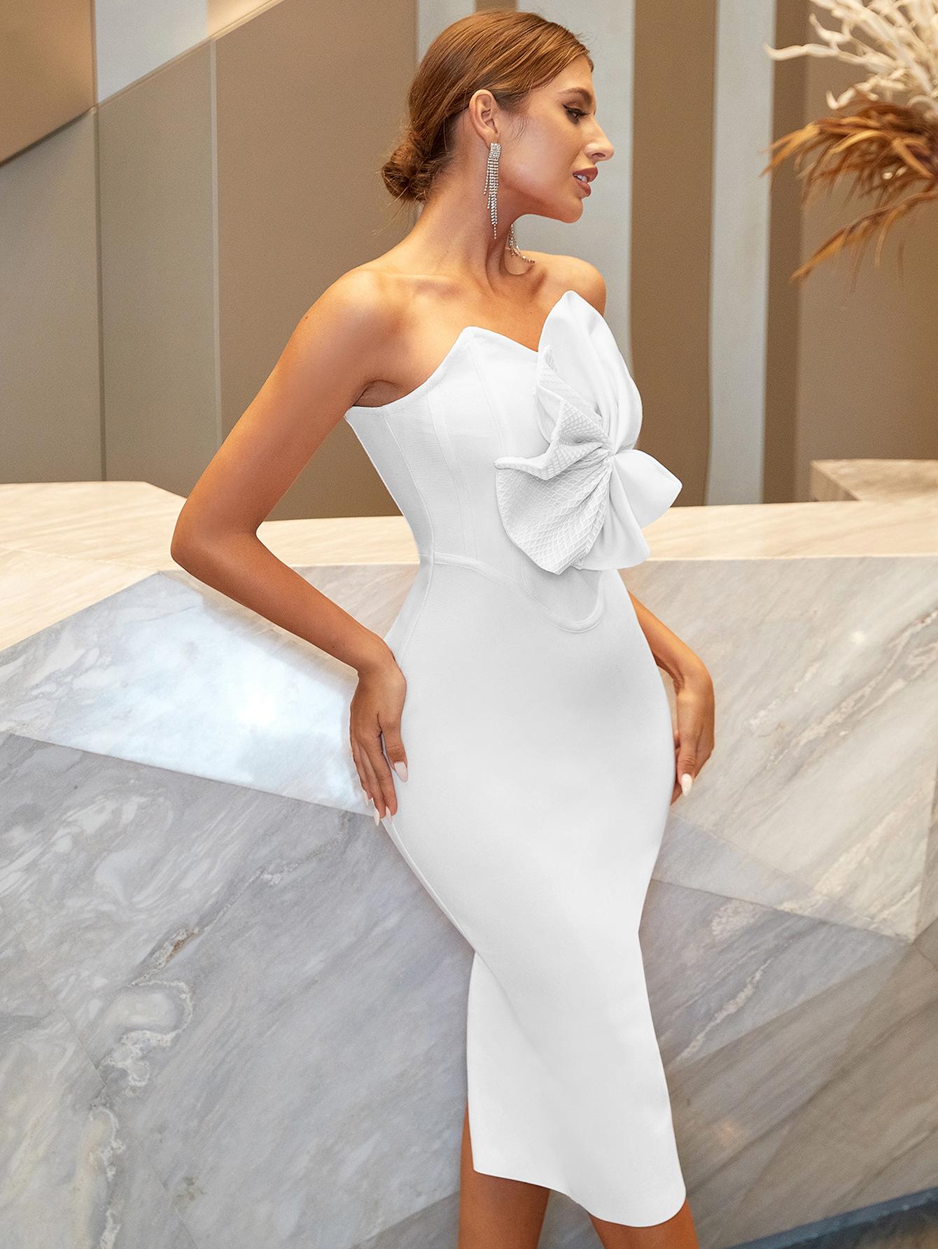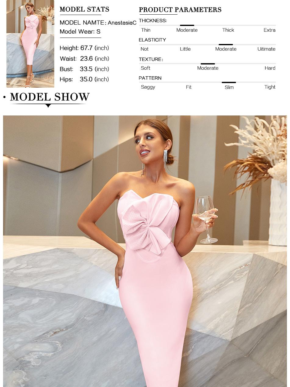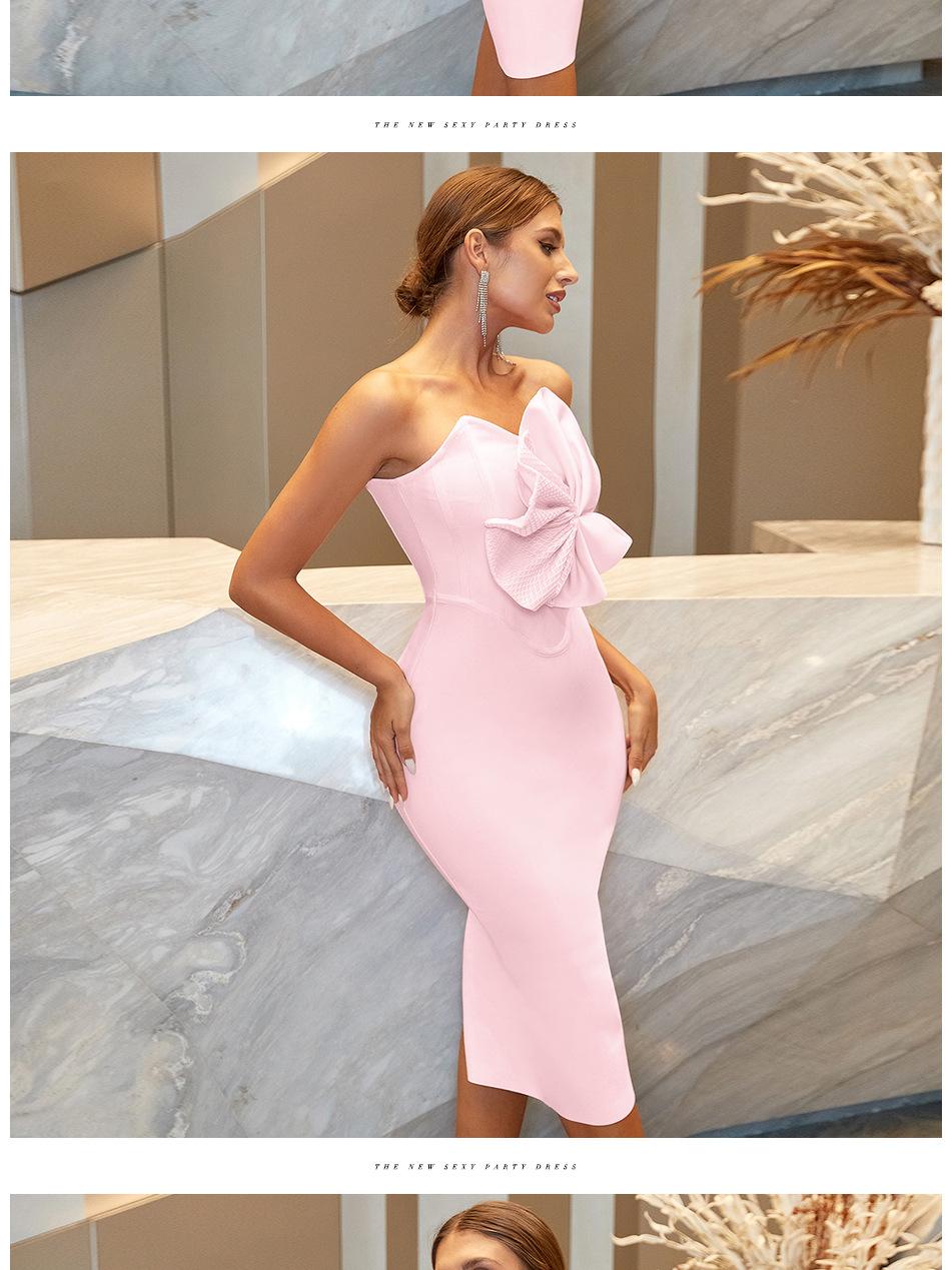 Vestido Vendaje Vestido de Noche Estilo Europeo y Americano Bodycon Lazo Fiesta Vestido Vendaje con Diseño Sin Espalda de Cintura Alta