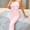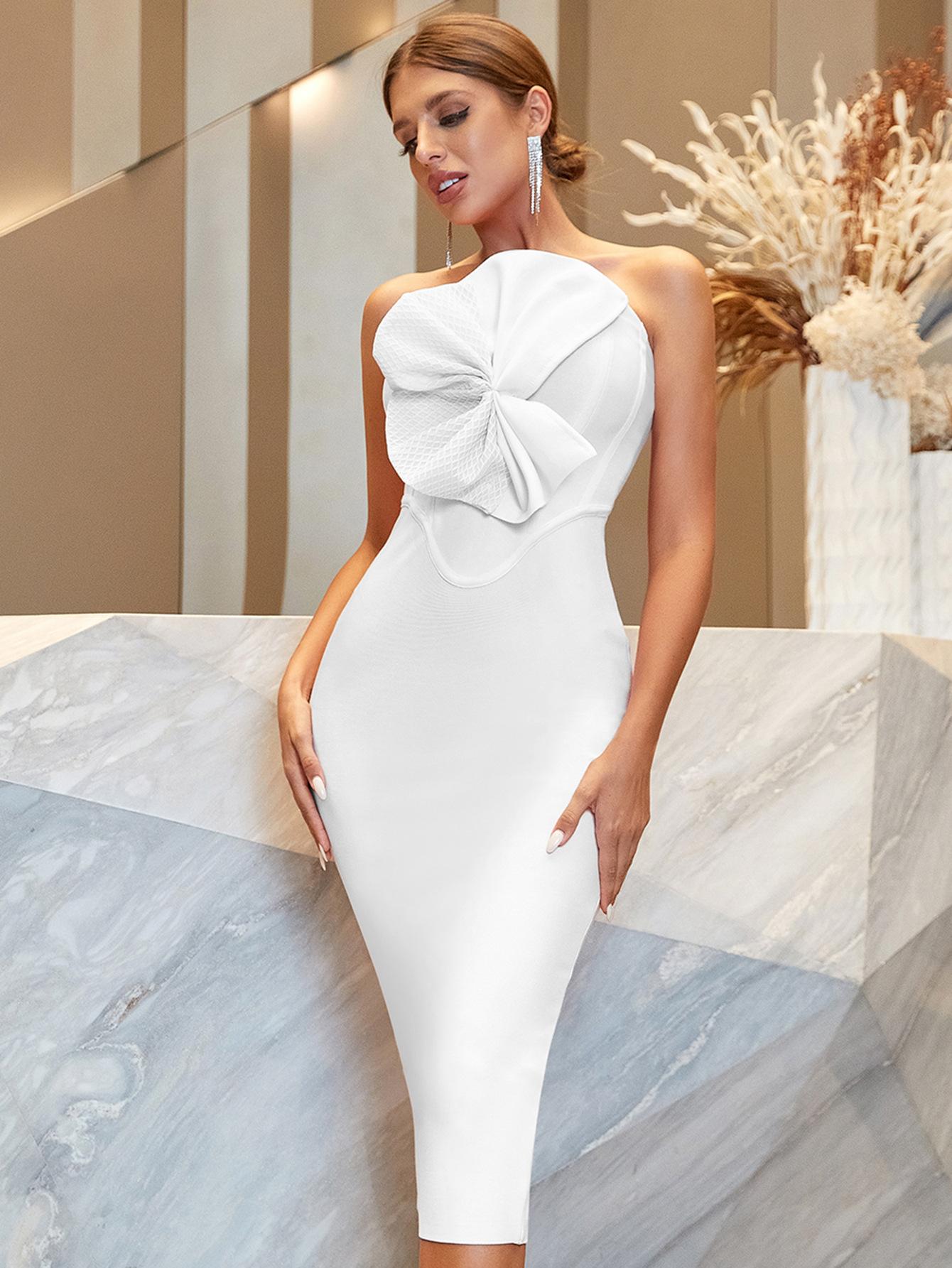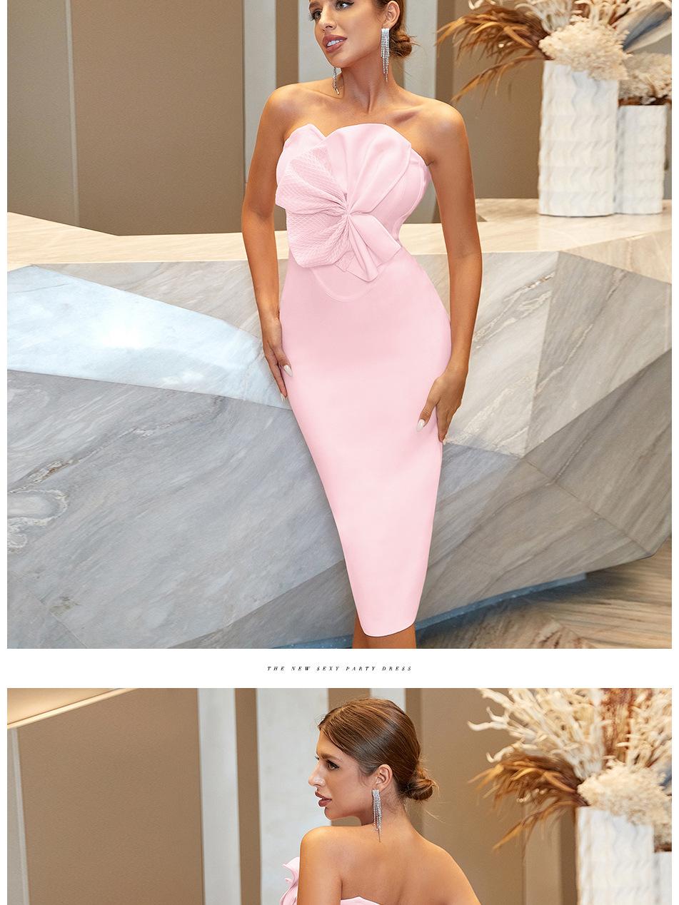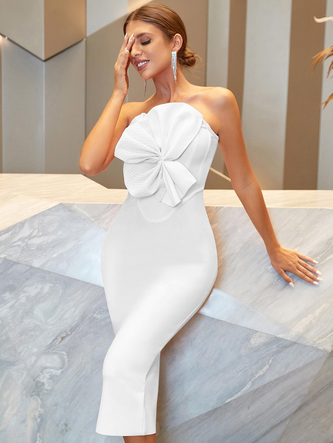 Vestido Vendaje Vestido de Noche Estilo Europeo y Americano Bodycon Lazo Fiesta Vestido Vendaje con Diseño Sin Espalda de Cintura Alta