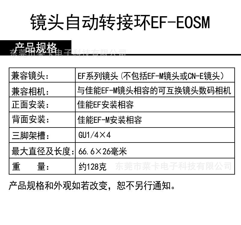 El anillo adaptador Canon EF-EOSM es adecuado para micro single M50M5M6M3M100 a lente EF/EFS enfoque automático