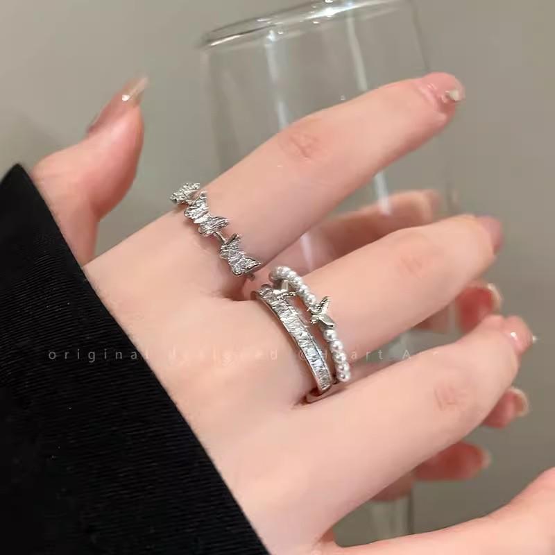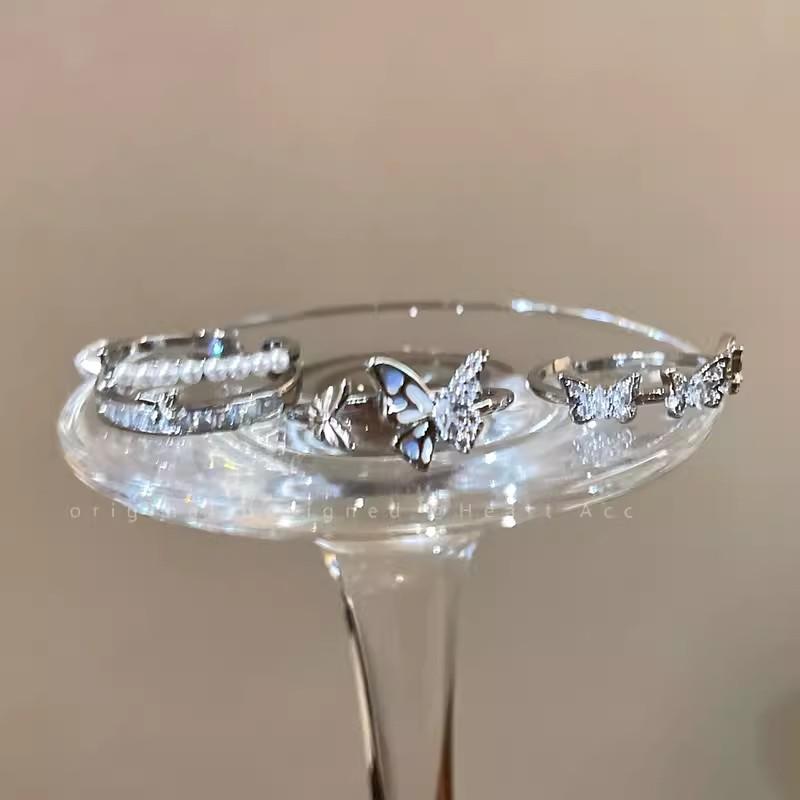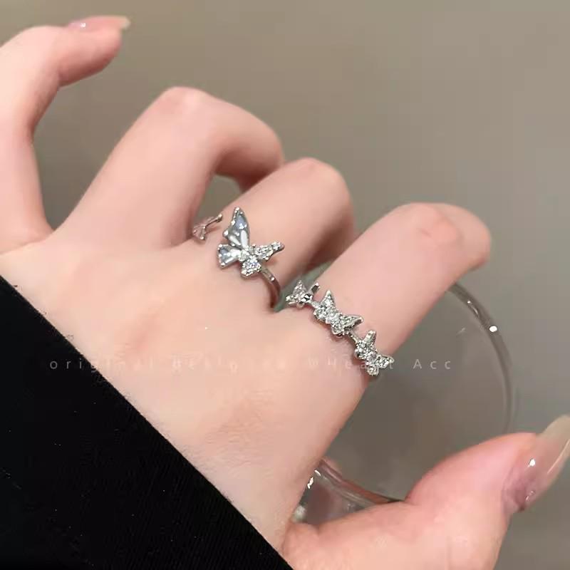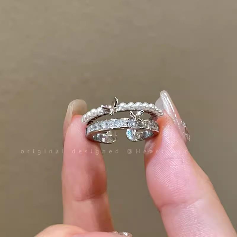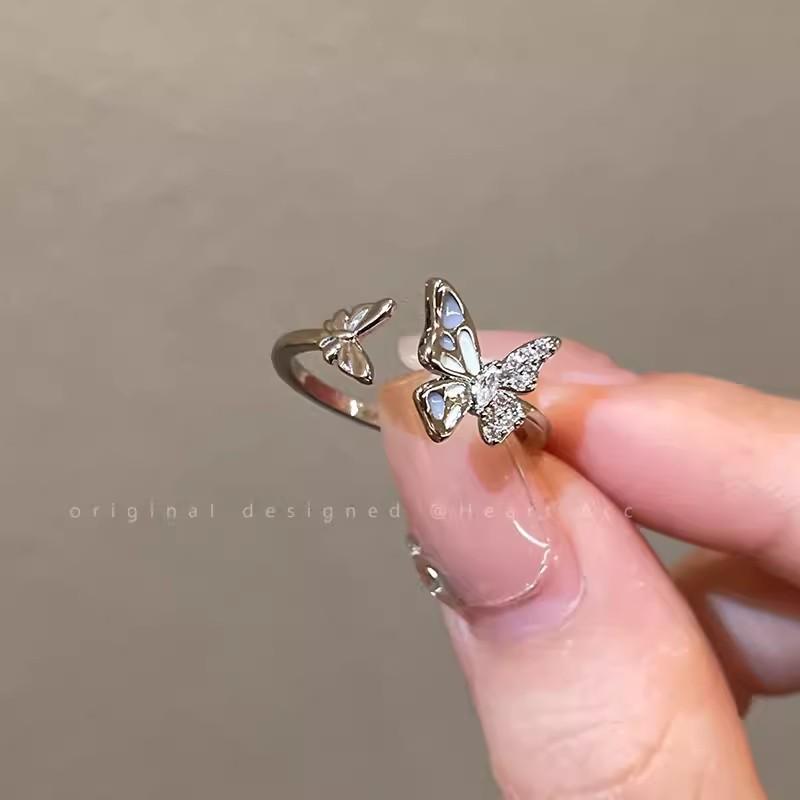Butterfly oil dripping ring, Butterfly stitching zircon ring, Double layer butterfly shell bead ring