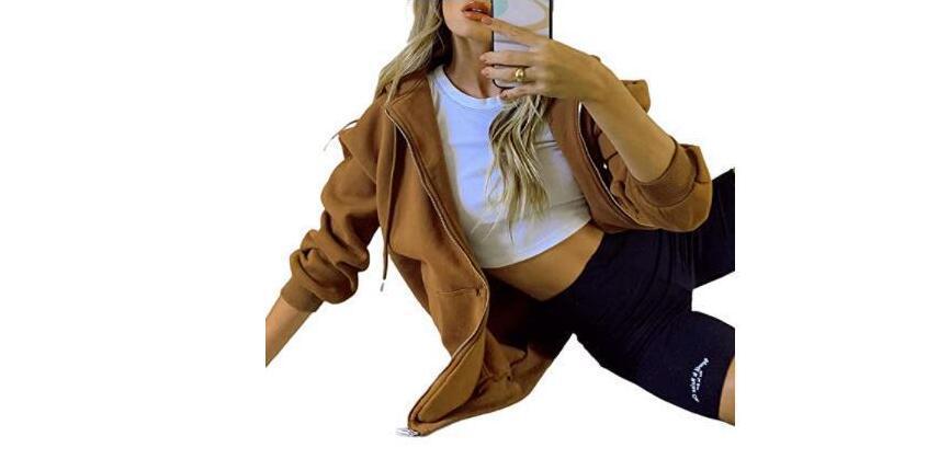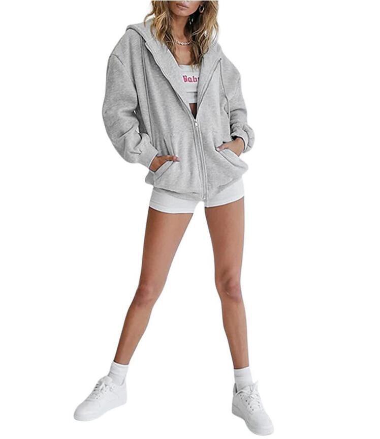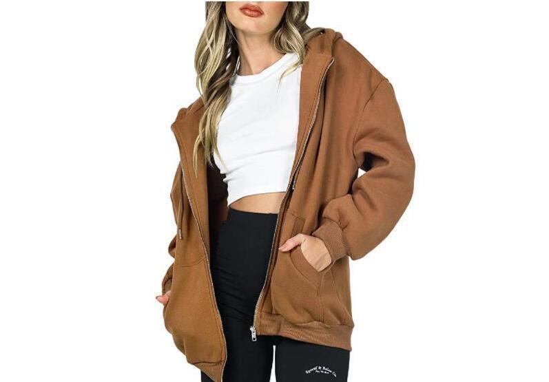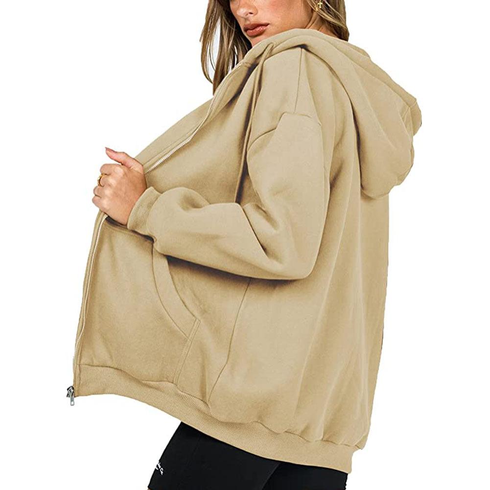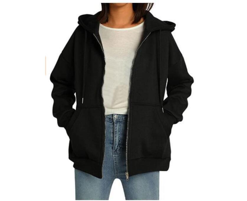 Suéter de moda transfronterizo, grueso, con capucha, cárdigan casual, estilo cremallera, top, ropa de mujer