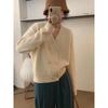 Suéter holgado de estilo coreano para mujer, abrigo de otoño, nuevo diseño, color liso, cuello en V, de punto de una sola botonadura