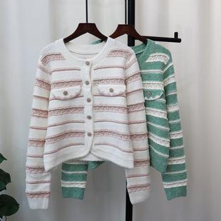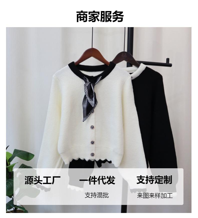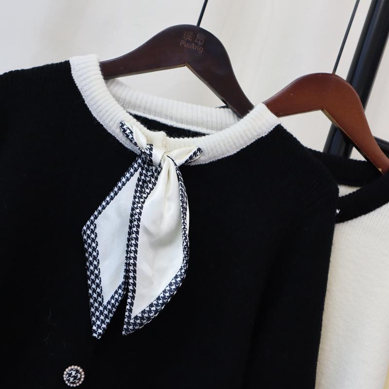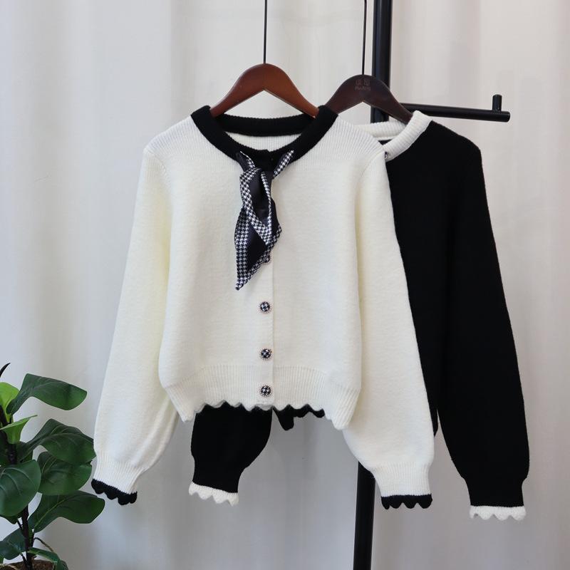 Otoño e Invierno 2024 Nuevo Estilo Estilo Chanel Abrigo Elegante de Suéter Sentido del Diseño Bufanda de Seda Socialité Cárdigan de Punto Holgado para Mujer Moderno
