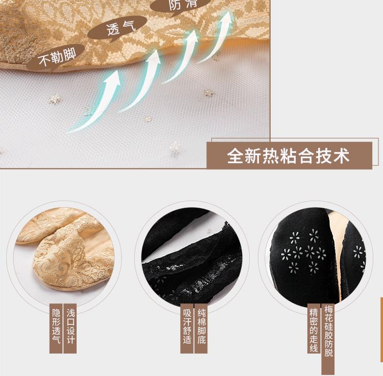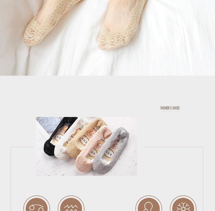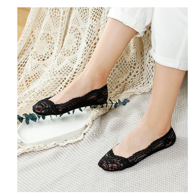 Calcetines Cortos de Encaje de Boca Baja Color Caramelo de Silicona Antideslizante para Mujer Encaje Seda de Hielo swazi