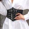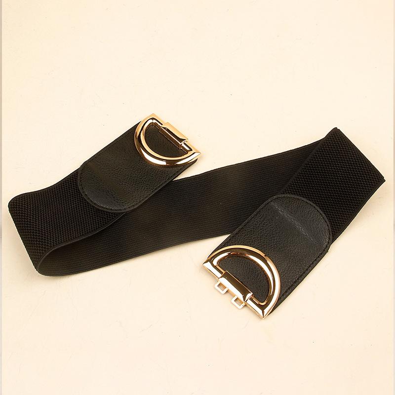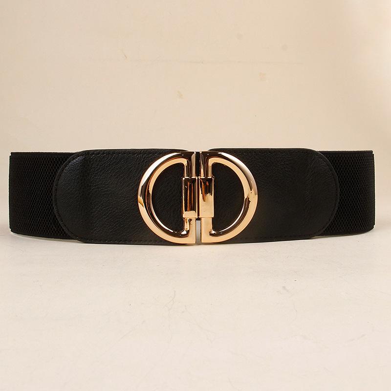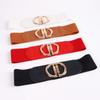 Cinturón ancho con hebilla elástica estilo europeo y americano para mujer, estilo vintage con hebilla en D, cinturón para abrigo, pretina sencilla con cierre de presión.