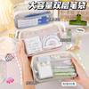 Estuche transparente de tres capas para estudiantes de secundaria, caja de papelería japonesa sencilla y de aspecto elegante, bolsa de papelería multicapa para hombres.