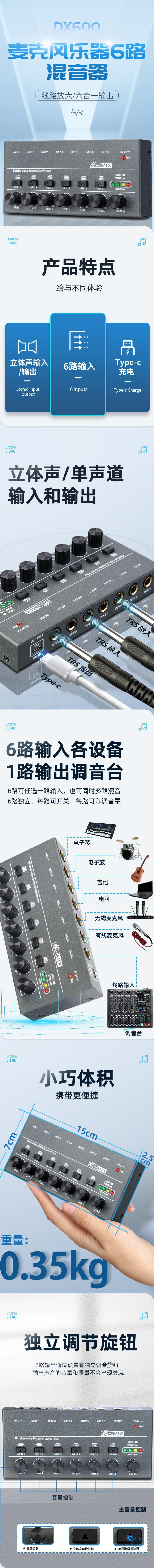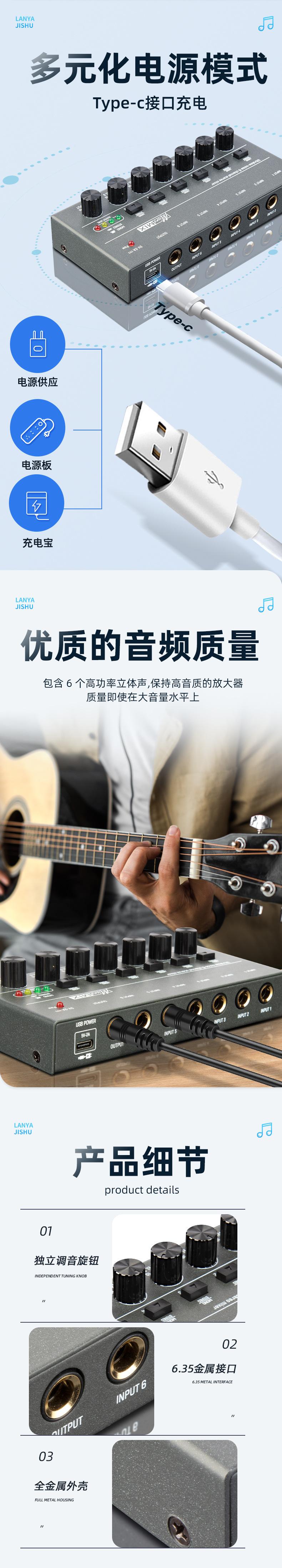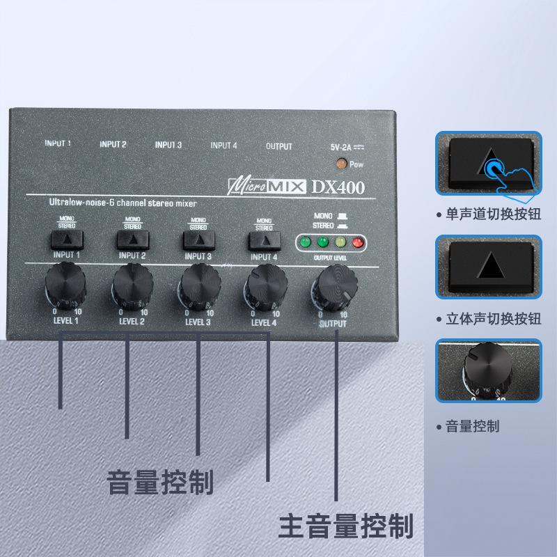 Mezclador de Audio de 8 Canales con Conmutación Mono Estéreo Mini Mezclador de Señal
