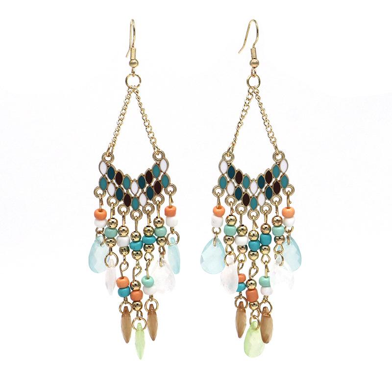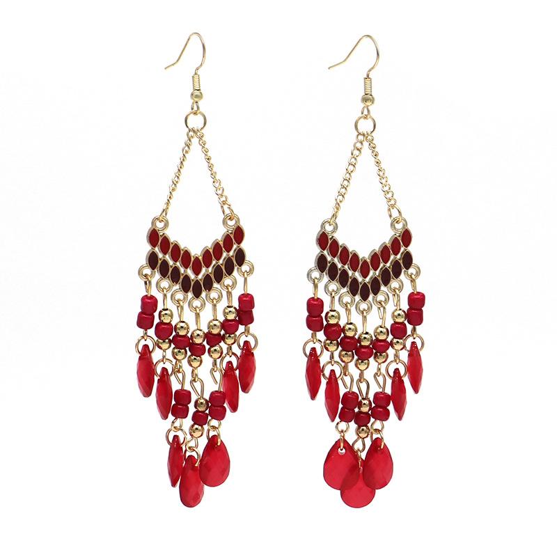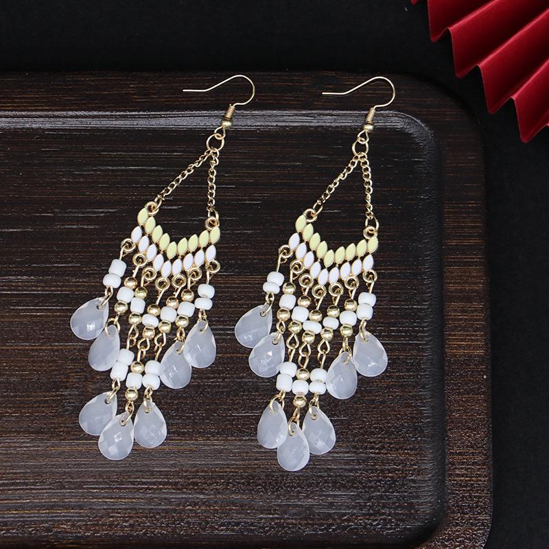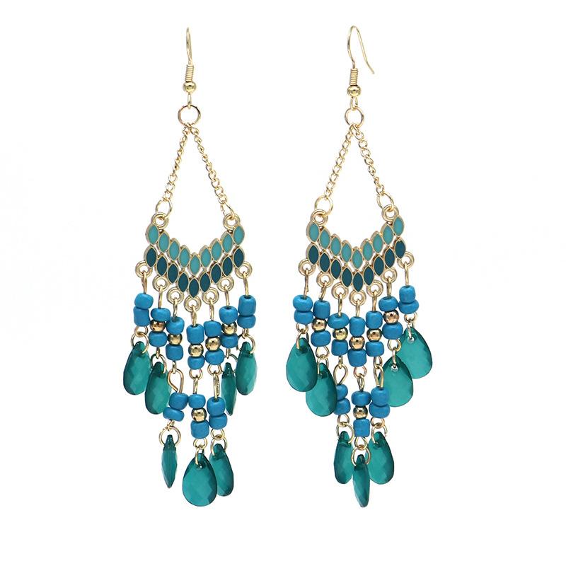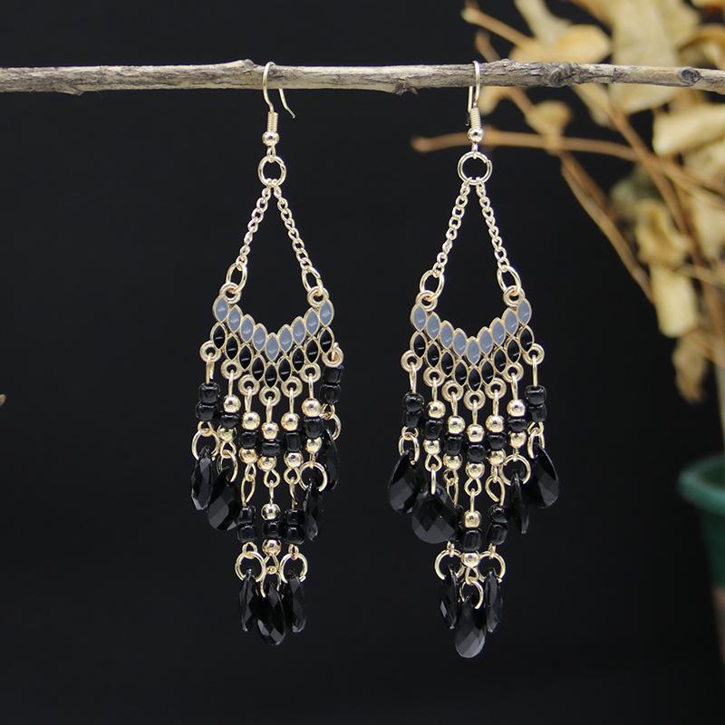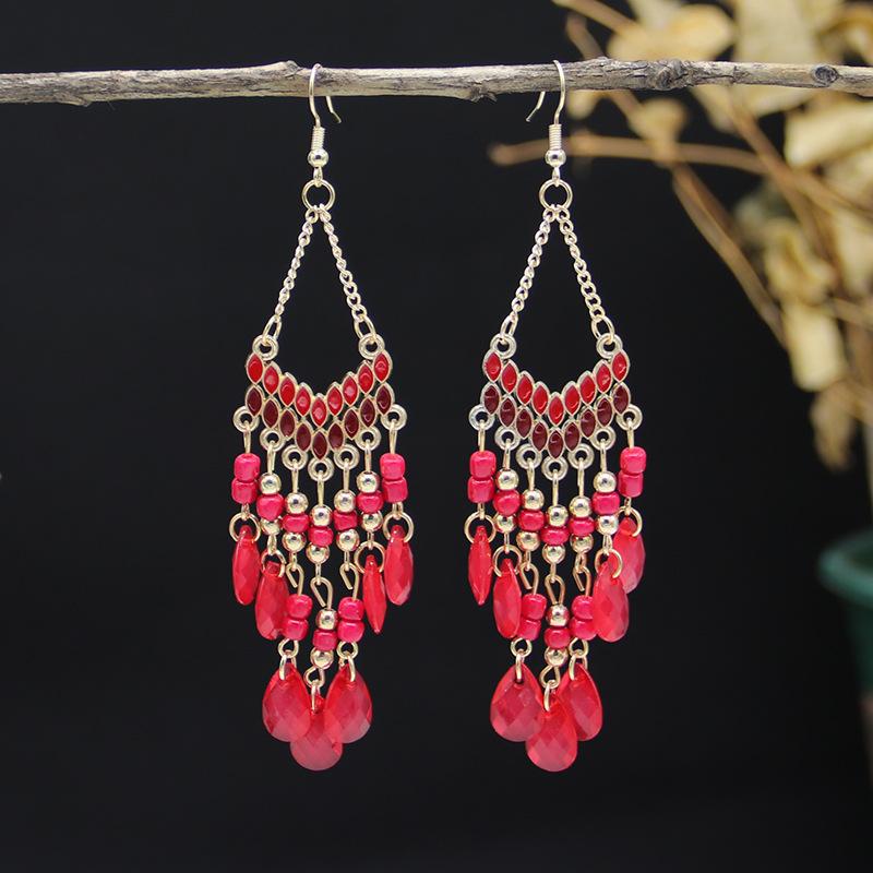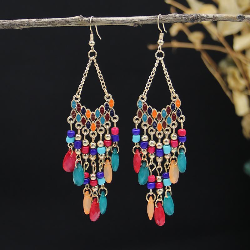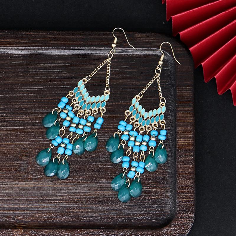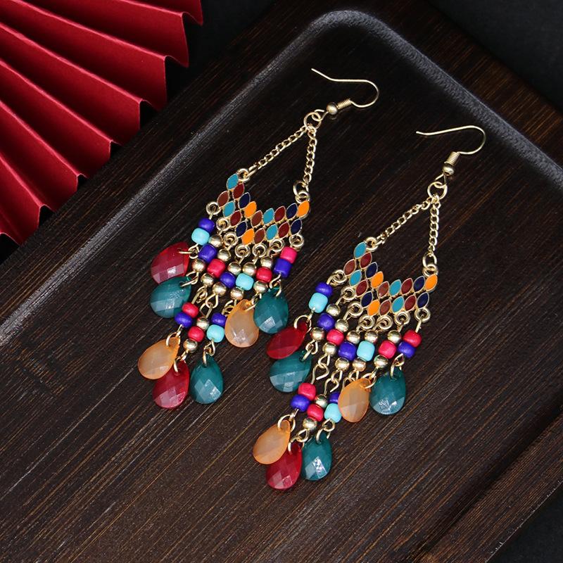 Aretes de moda de estilo étnico para mujer, aretes bohemios retro con temperamento de gota de agua, aretes de borla transfronterizos de Yunnan al por mayor