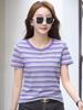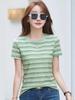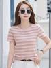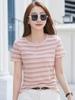 449 Nueva Camiseta de Manga Corta a Rayas para Mujer Estilo Coreano Blanco Retro Color de Contraste Verano Holgada Slim Bottoming Top de Color Sólido