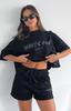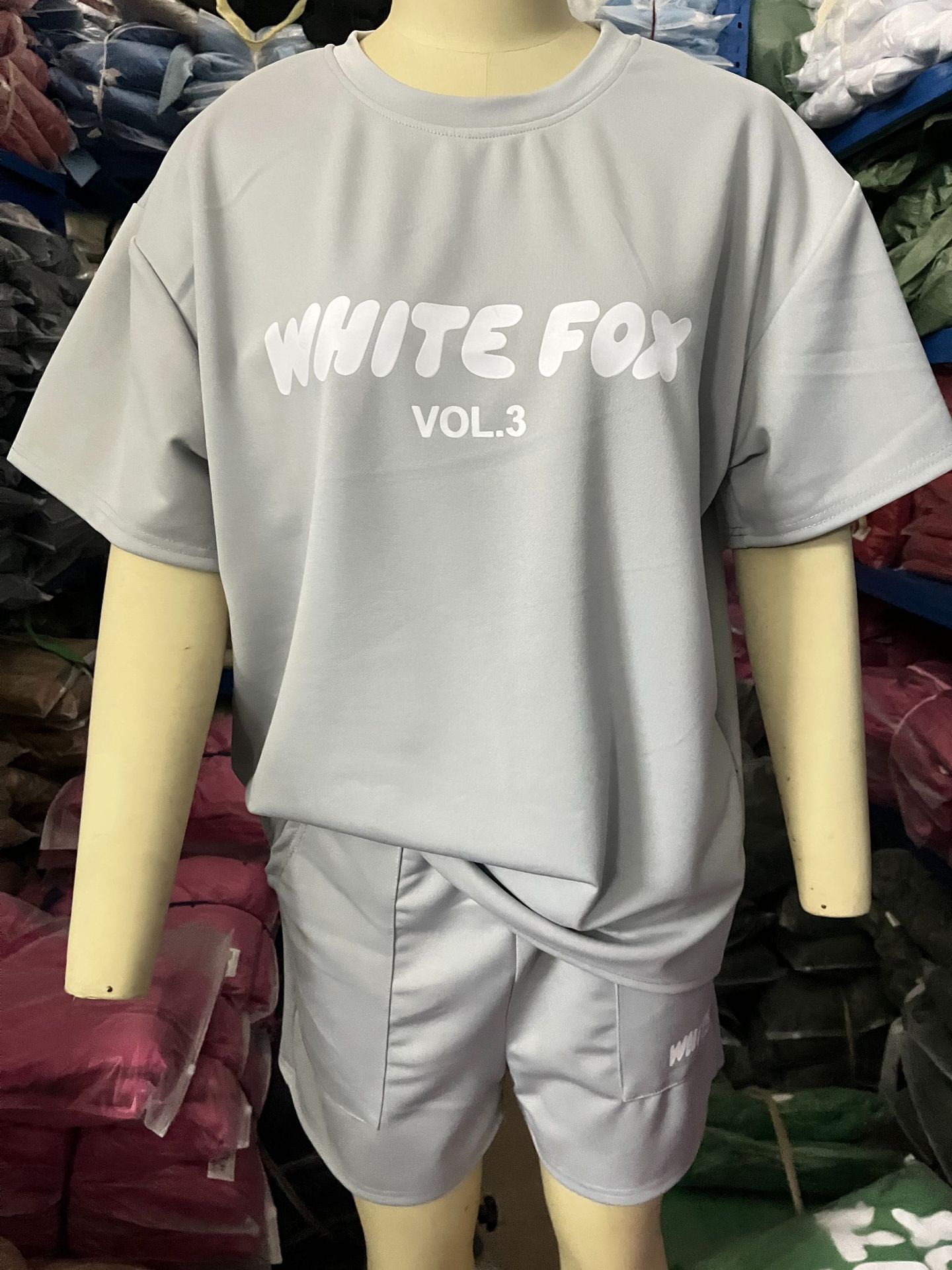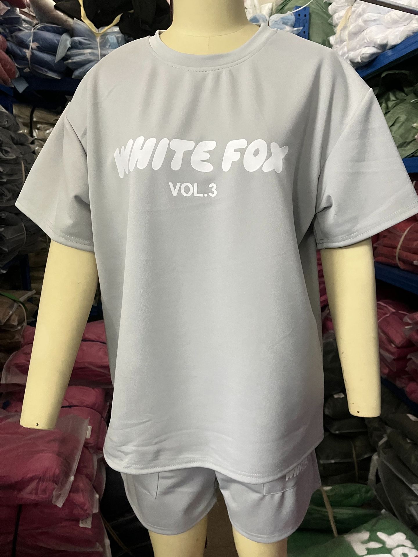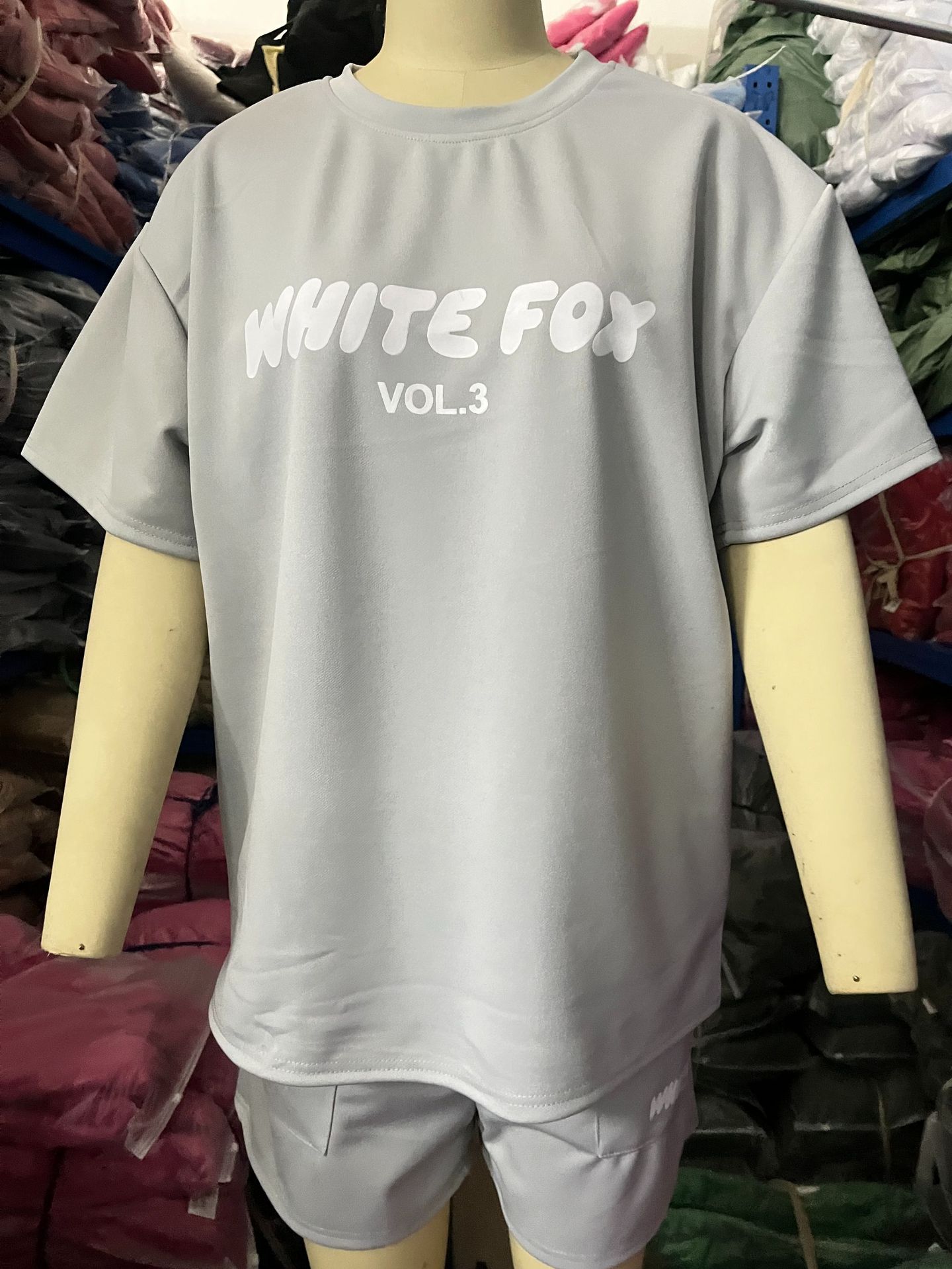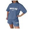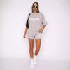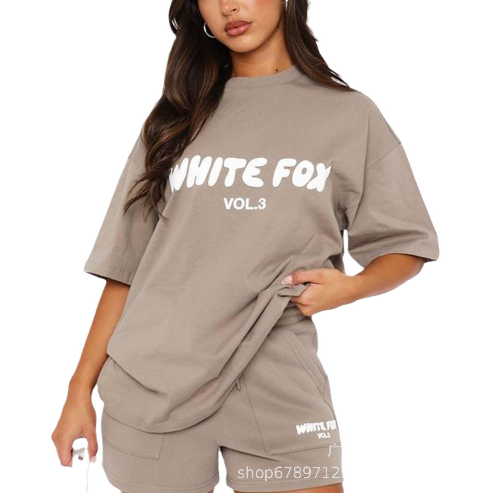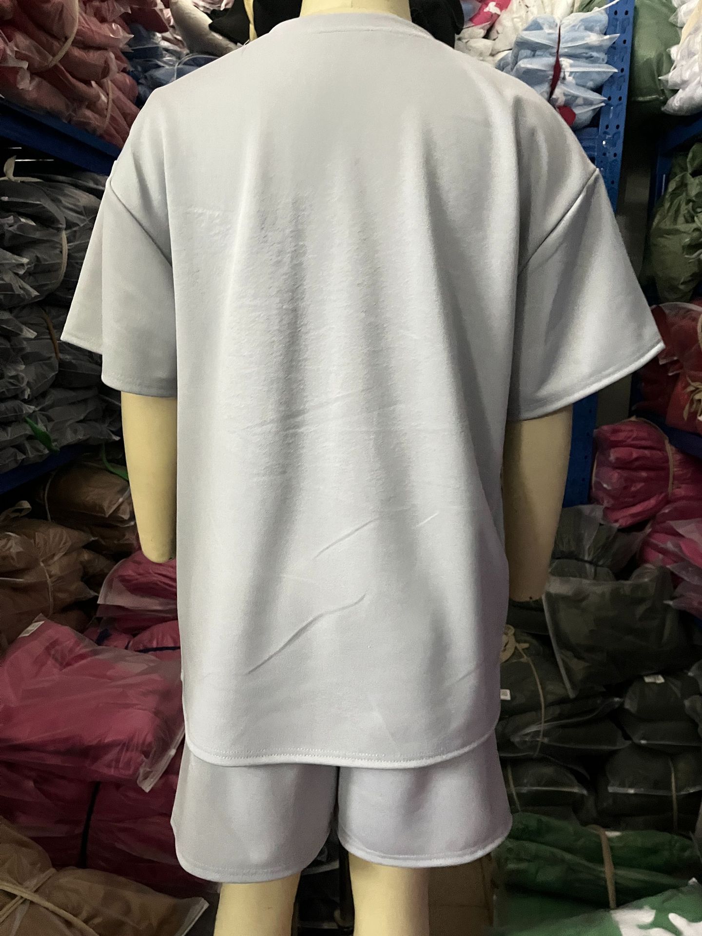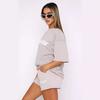 Traje Europeo y Americano Transfronterizo Otoño Nuevo Color Sólido Cuello Redondo Holgado Deportivo Manga Corta Pantalones Cortos Conjunto de Dos Piezas Amazon Venta al Mayoreo