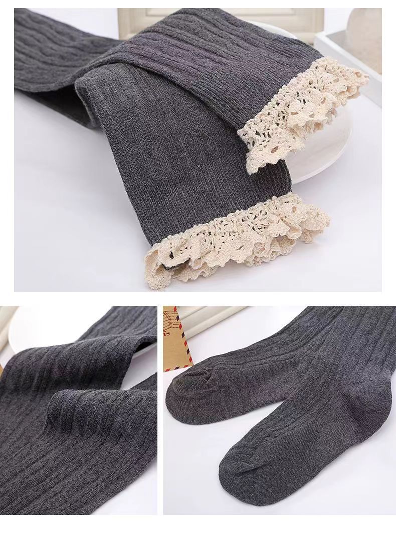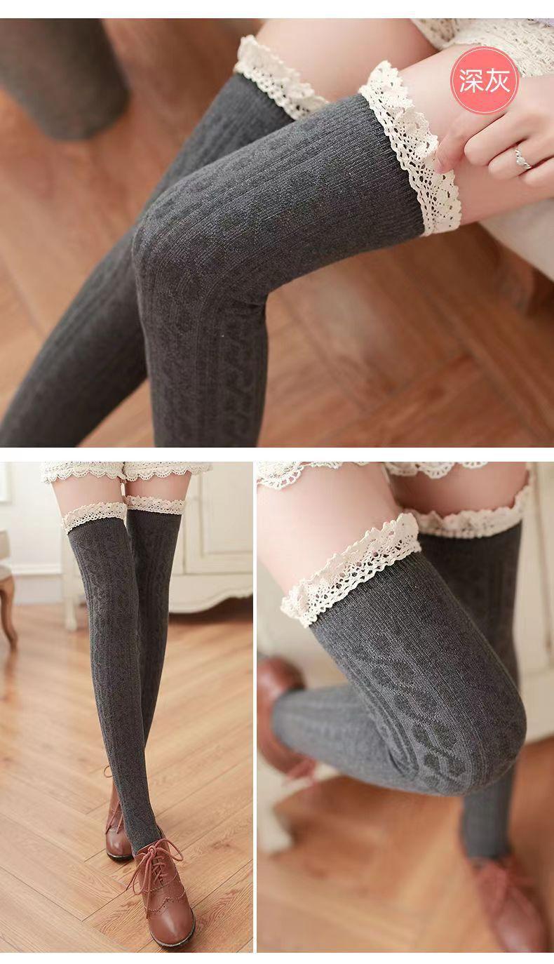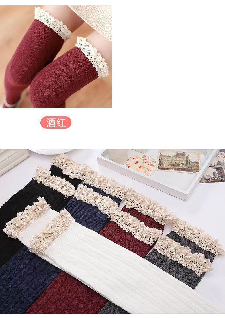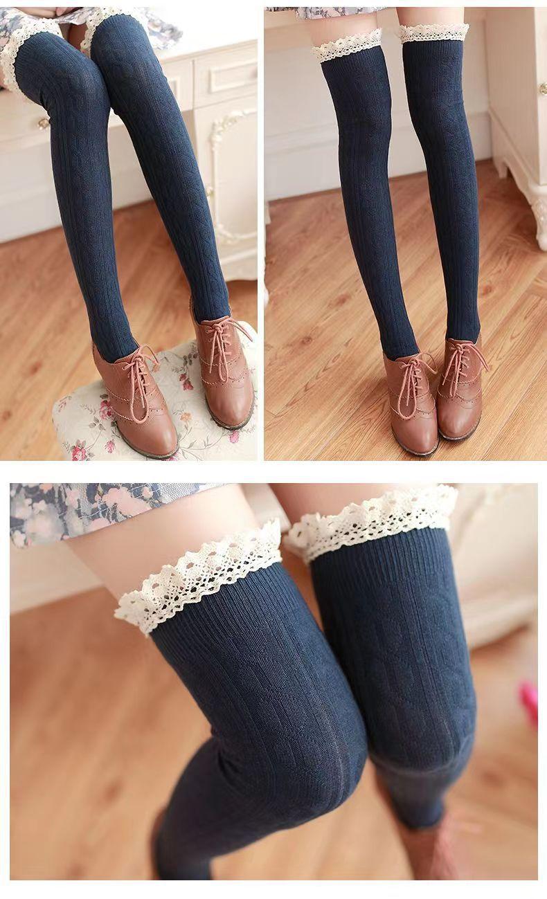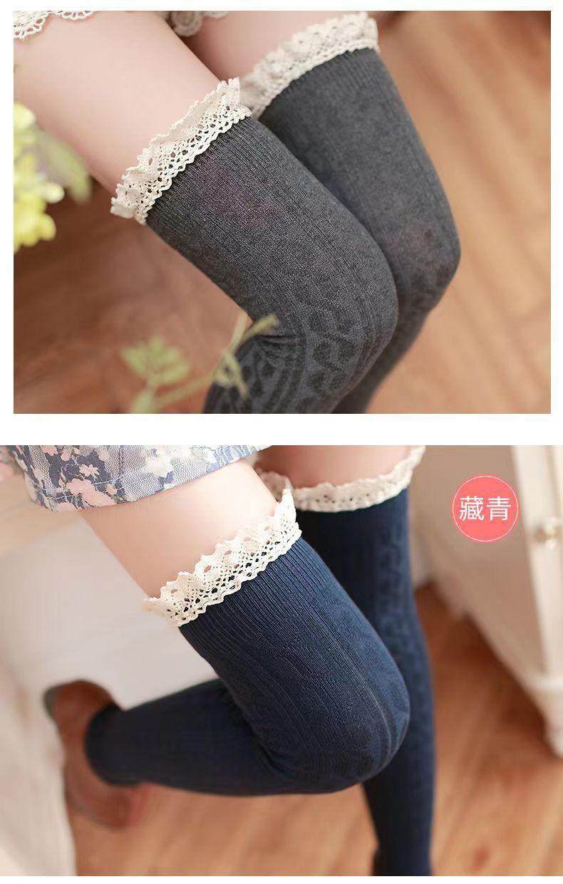 Calcetines hasta la rodilla estilo Lolita con giro japonés de primavera y otoño para niña, bonitos calcetines largos hasta la rodilla con encaje blanco y negro.