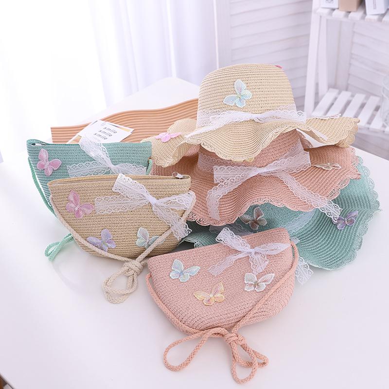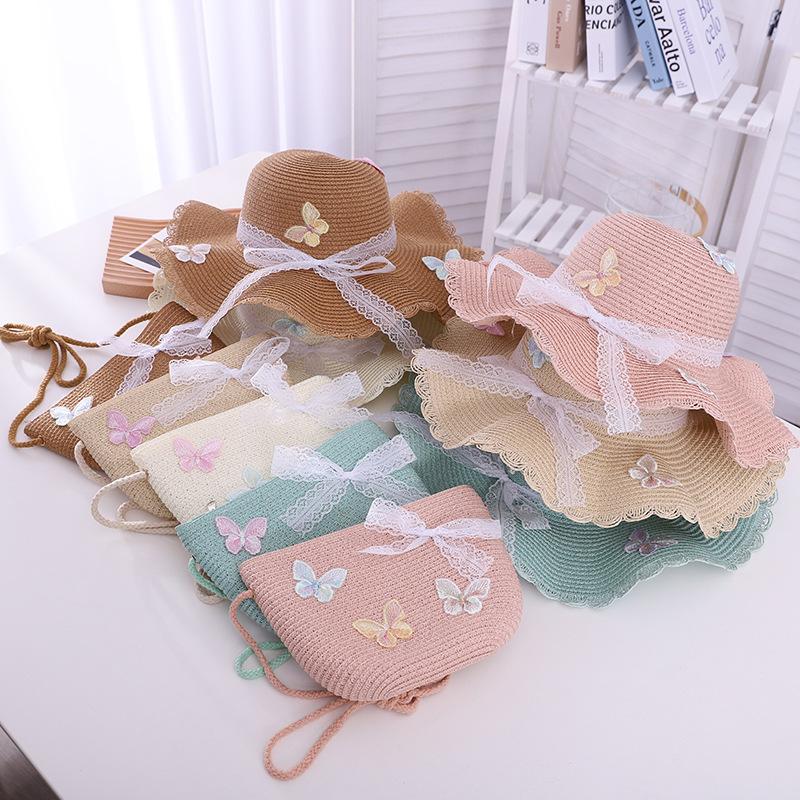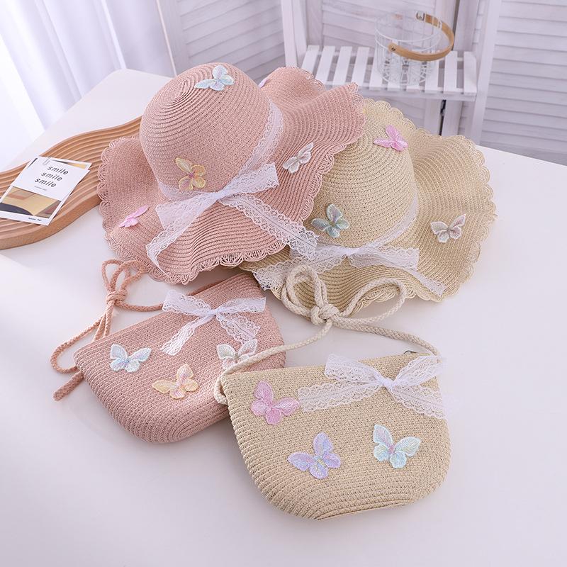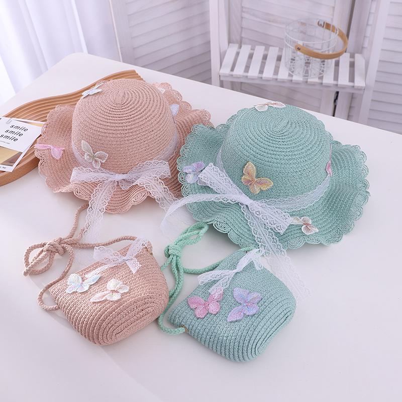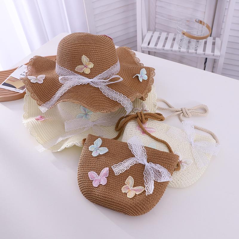 Conjunto de sombrero de paja para niños y bolsos, sombrero de sol de playa pequeño y fresco de verano para mujer, sombrero de sol para exteriores, sombrero para padres al por mayor