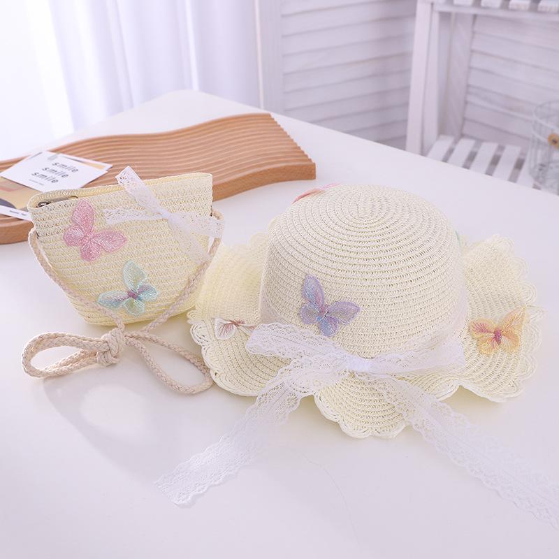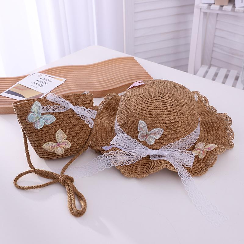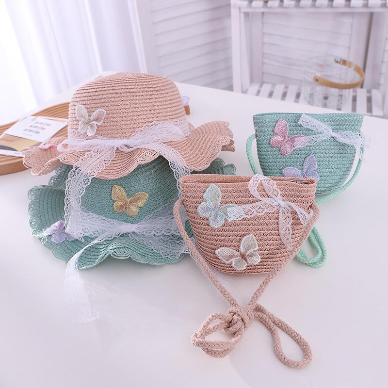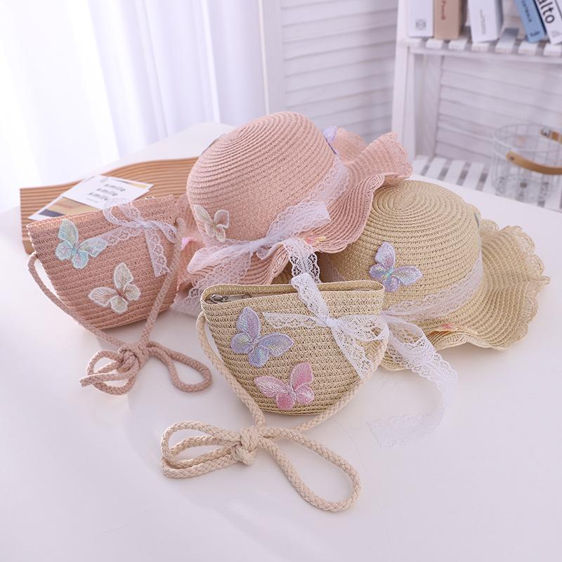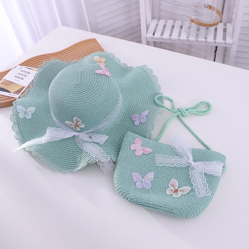 Conjunto de sombrero de paja para niños y bolsos, sombrero de sol de playa pequeño y fresco de verano para mujer, sombrero de sol para exteriores, sombrero para padres al por mayor