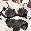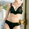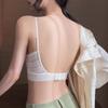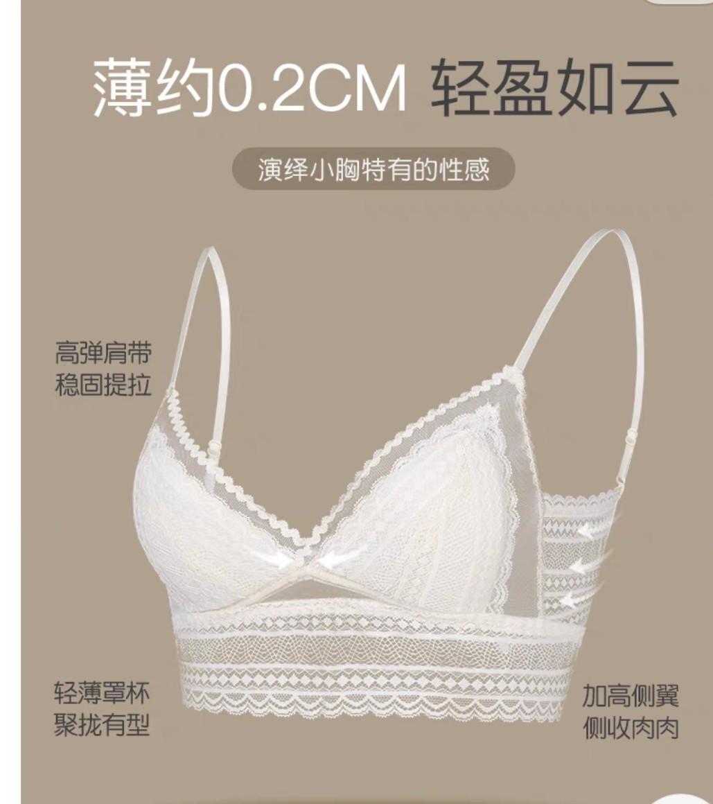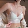Ropa interior de encaje sexy francés, sujetador sin aros con copa triangular fina, sujetador grande de pecho pequeño sin espalda