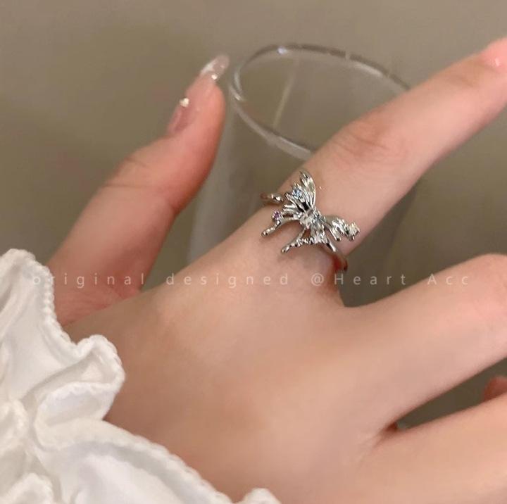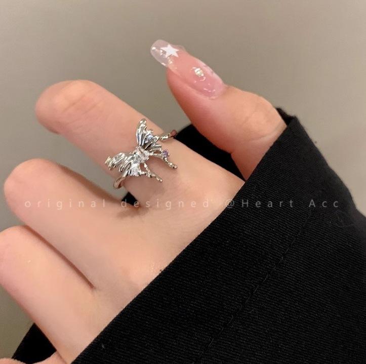 Nuevo anillo de apertura de mariposa tridimensional moda para mujer sentido de alta gama ajustable anillo de dedo para dieta anillo de viento frío al por mayor