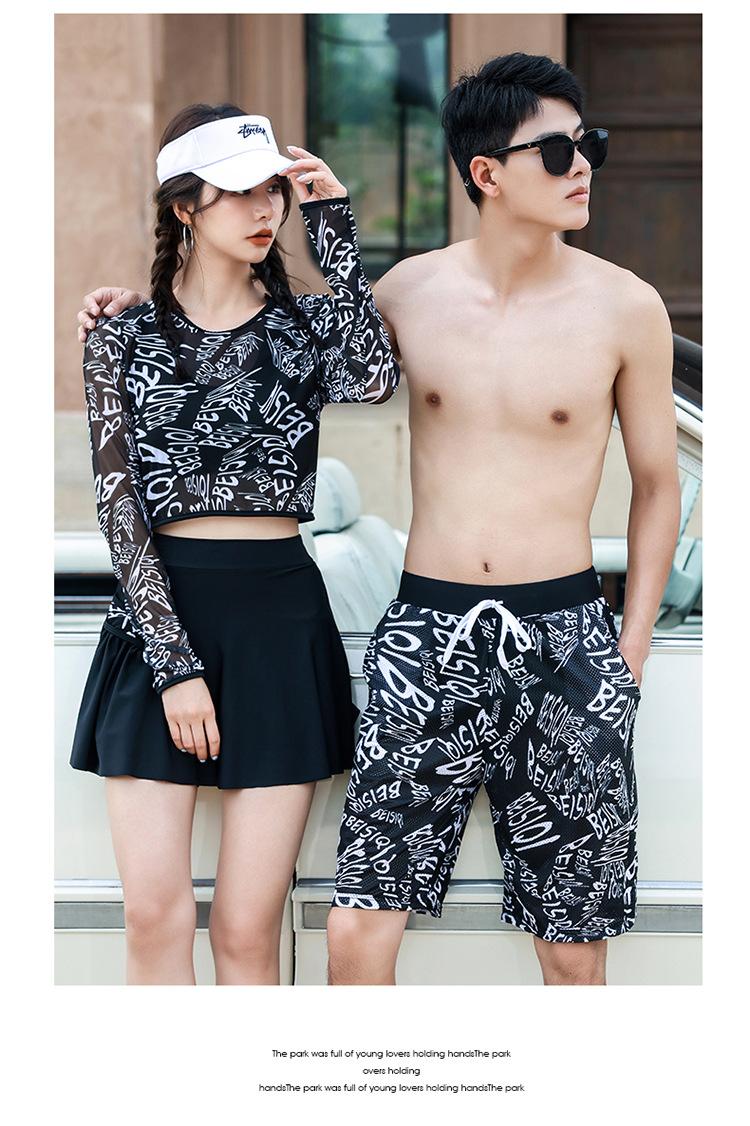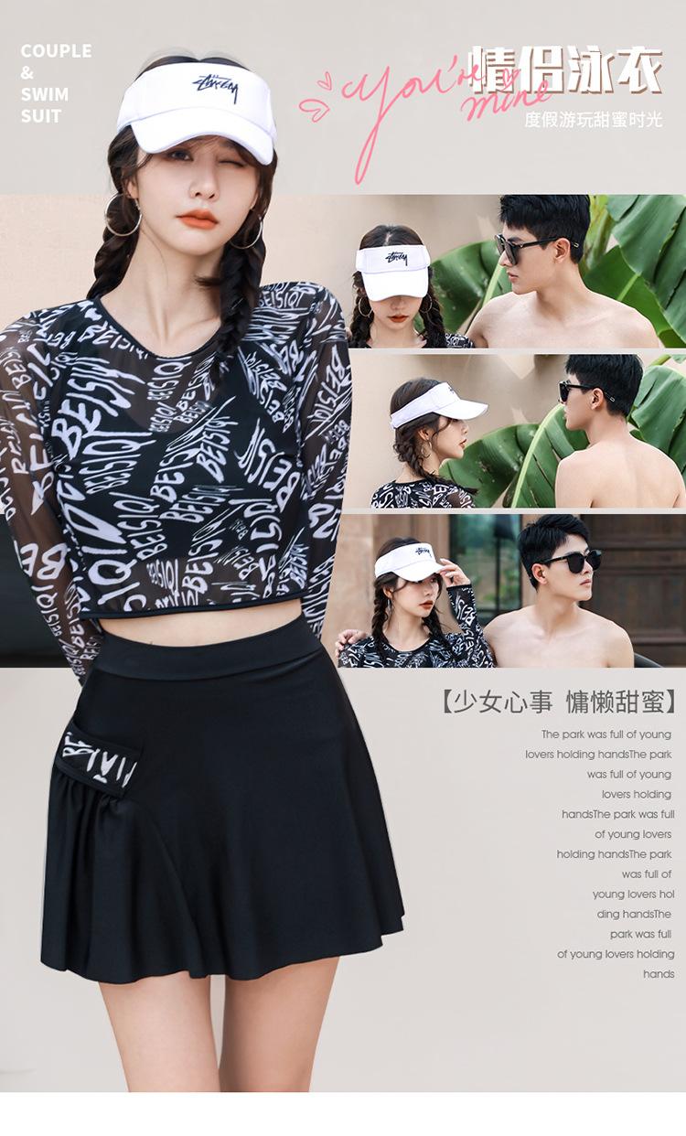Traje de baño de pareja de estilo coreano, falda deportiva de moda, conjunto de tres piezas dividido, adelgazante, conservador, para estudiantes, vacaciones en aguas termales.