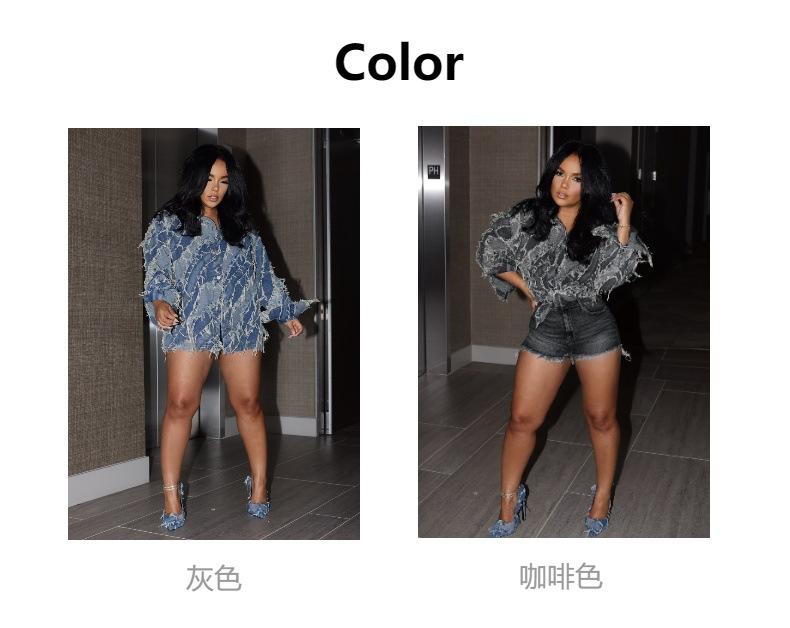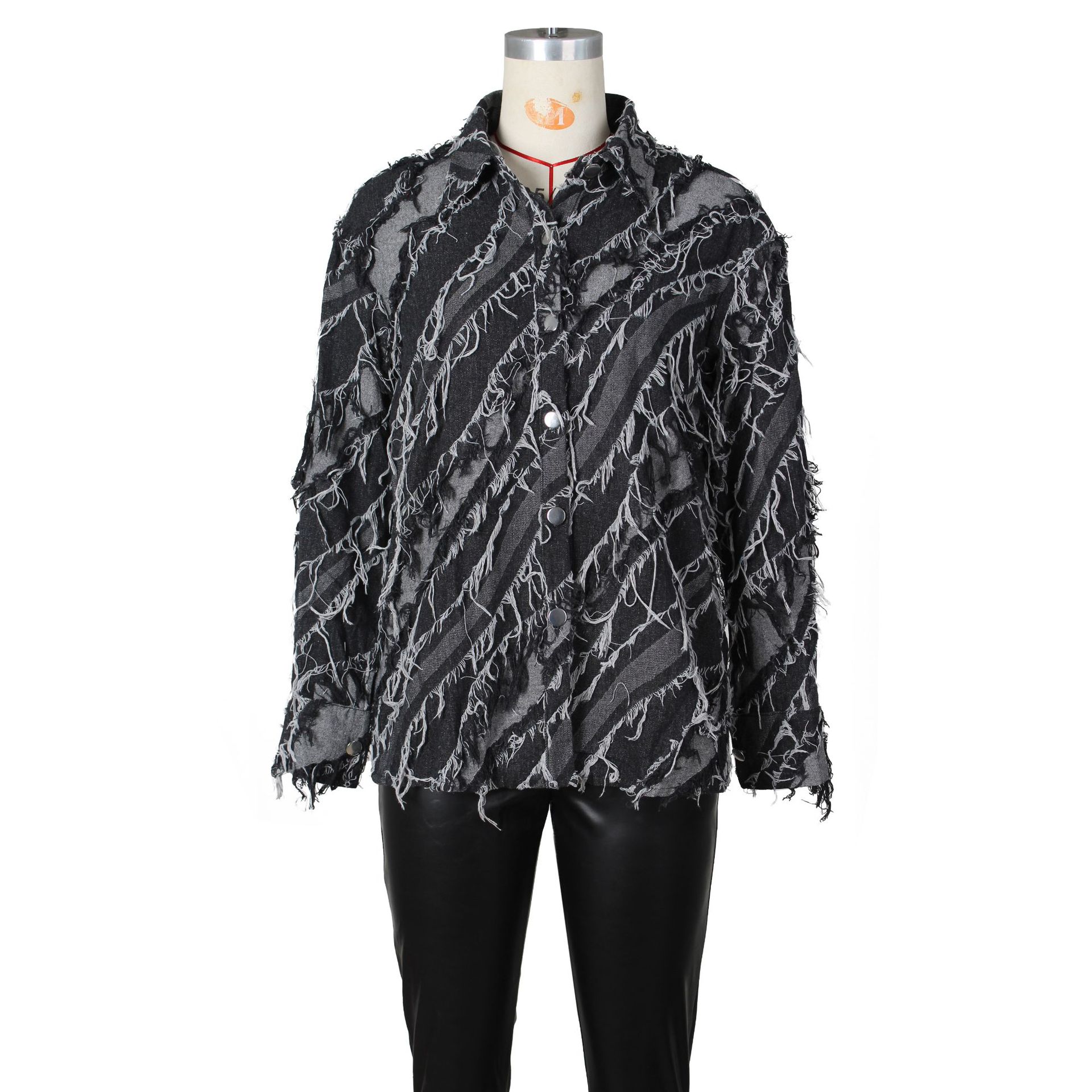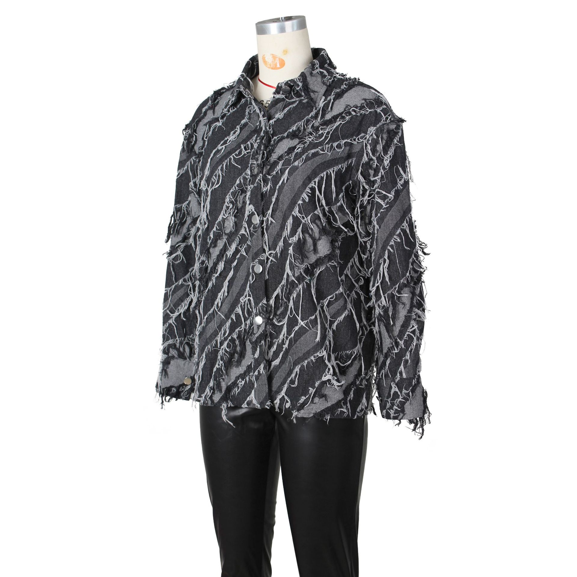 Chaqueta vaquera holgada informal con borlas distintivas para mujer, primavera 2024