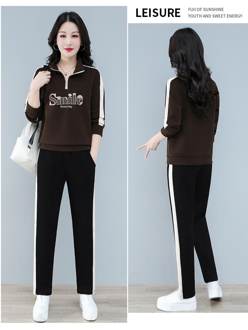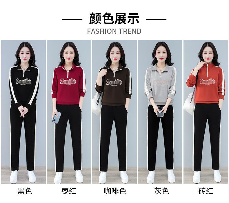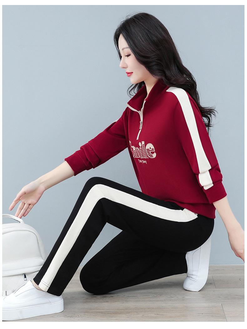 Conjunto de sudadera con media cremallera para mujer, primavera y otoño de 2024, nuevo conjunto deportivo informal de dos piezas de estilo occidental que reduce la edad para mujer.