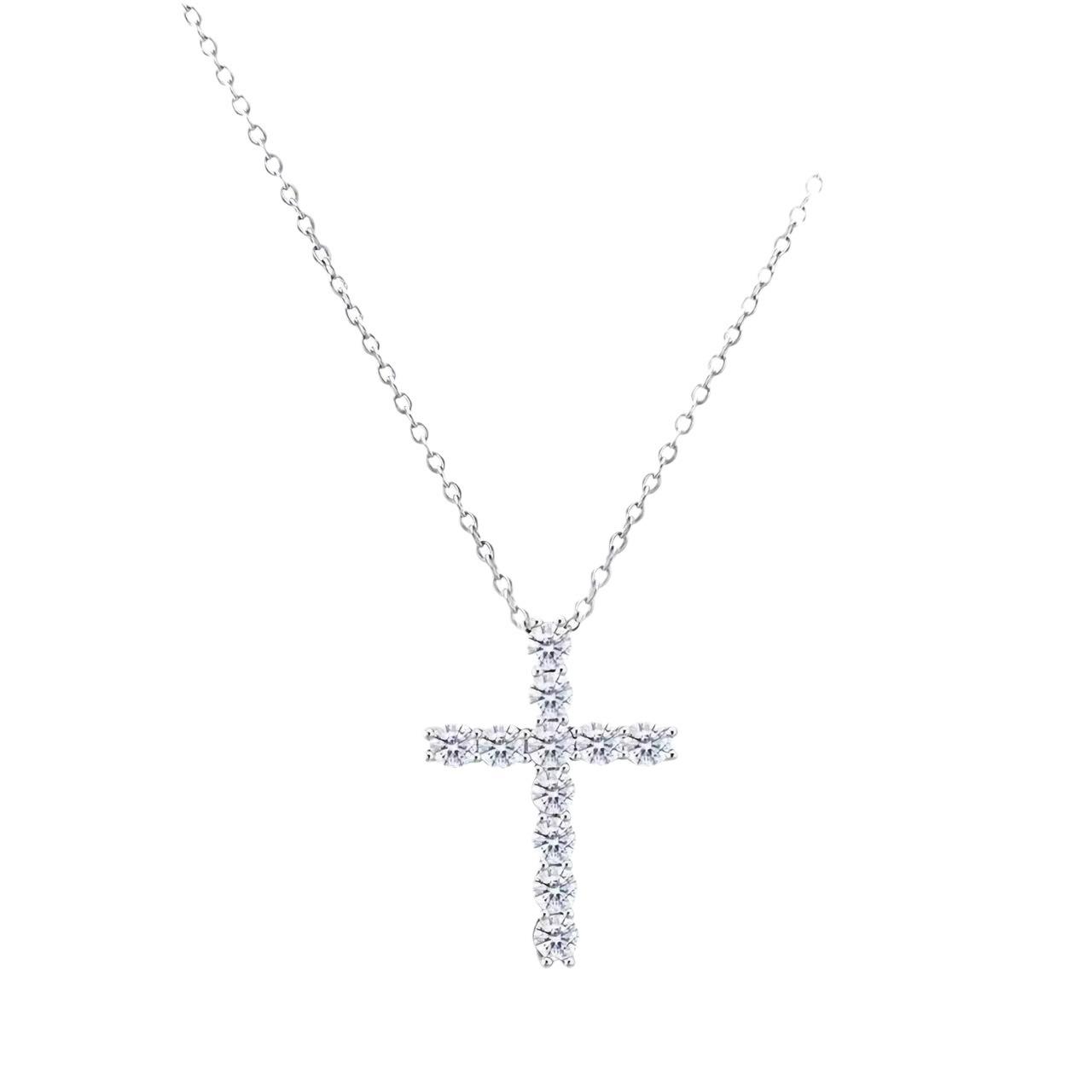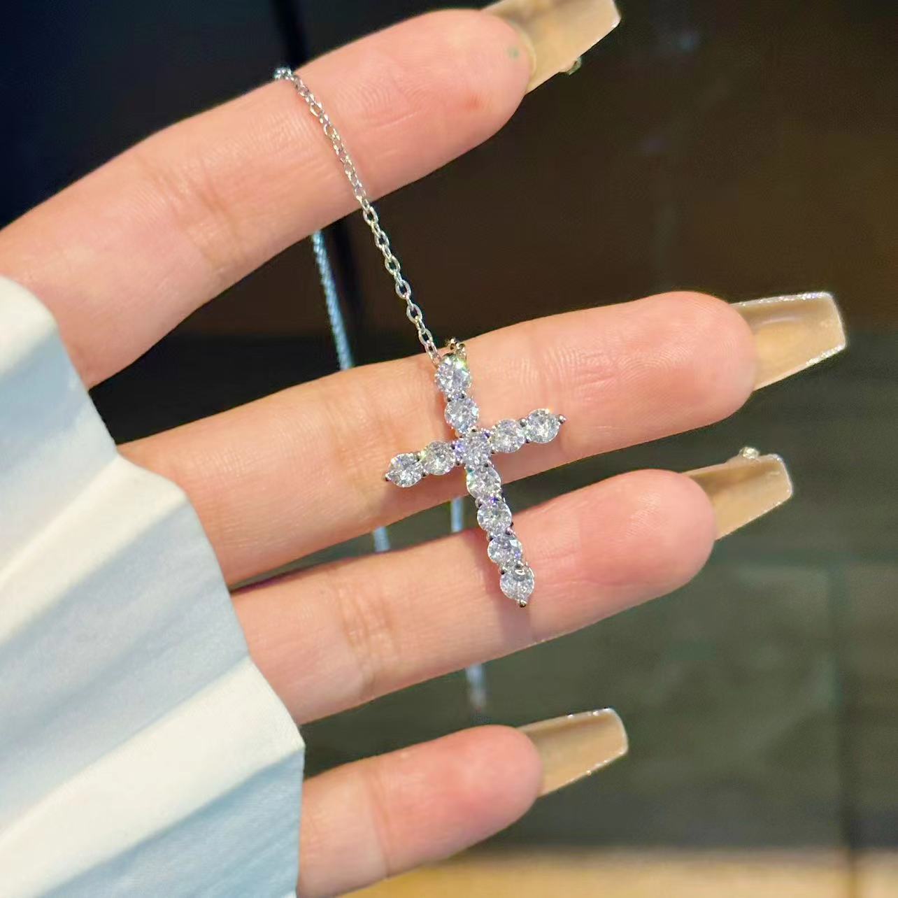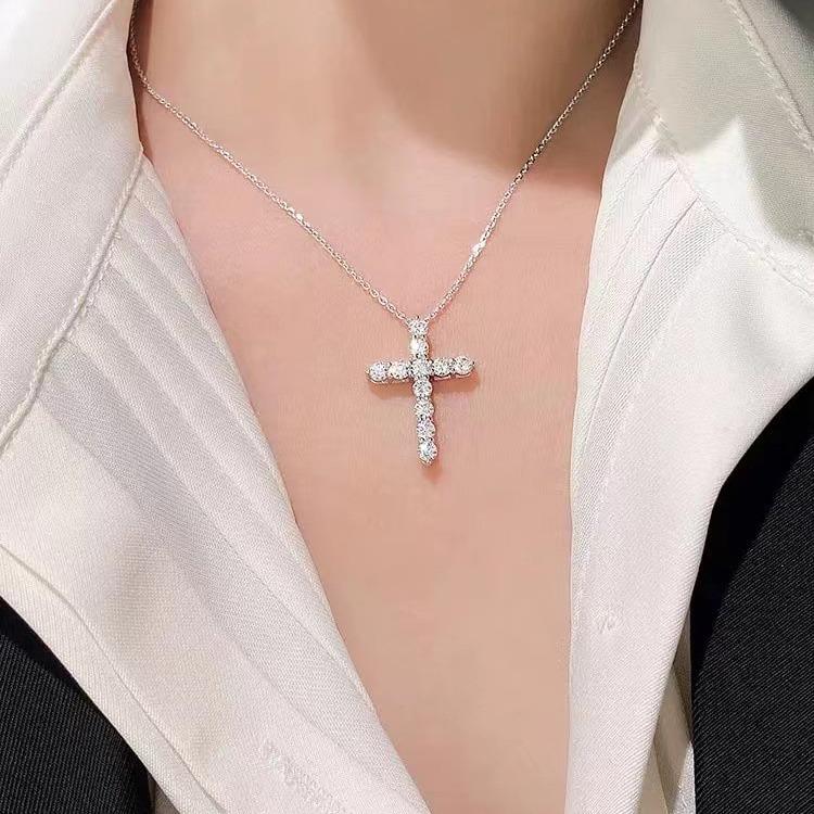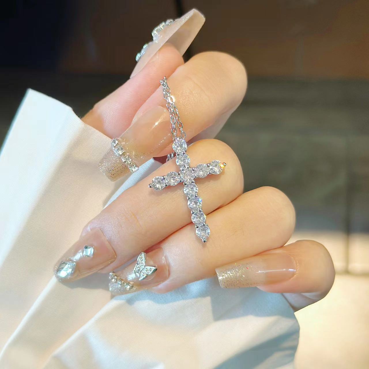 ¡Destello! Collar de diamantes con cruz de Renen, acero de titanio, ligero, de lujo, joyería al por mayor, cadena de clavícula con incrustaciones de diamantes, collar sencillo que combina con todo.