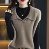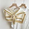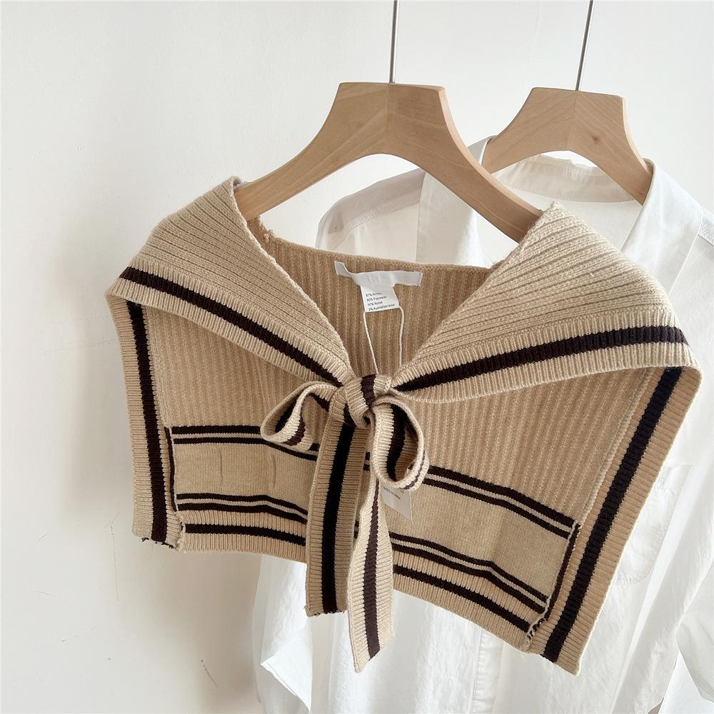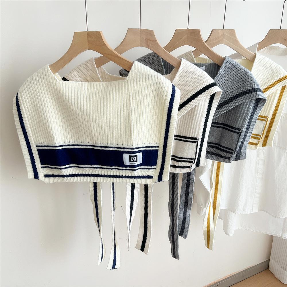 Chaleco tejido anudado para primavera y otoño para mujer, ropa exterior de oficina, chaleco, bufanda de cuello falso a rayas cálida de celebridad de Internet
