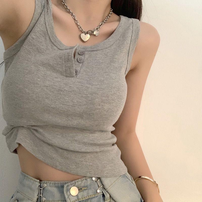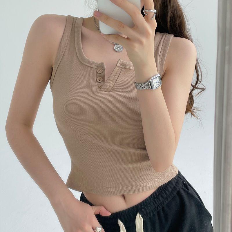 Diseño de nicho con sentido de hilo, ropa exterior corta, top de verano sin mangas, estilo coreano, camisola sexy, chaleco para mujer ins