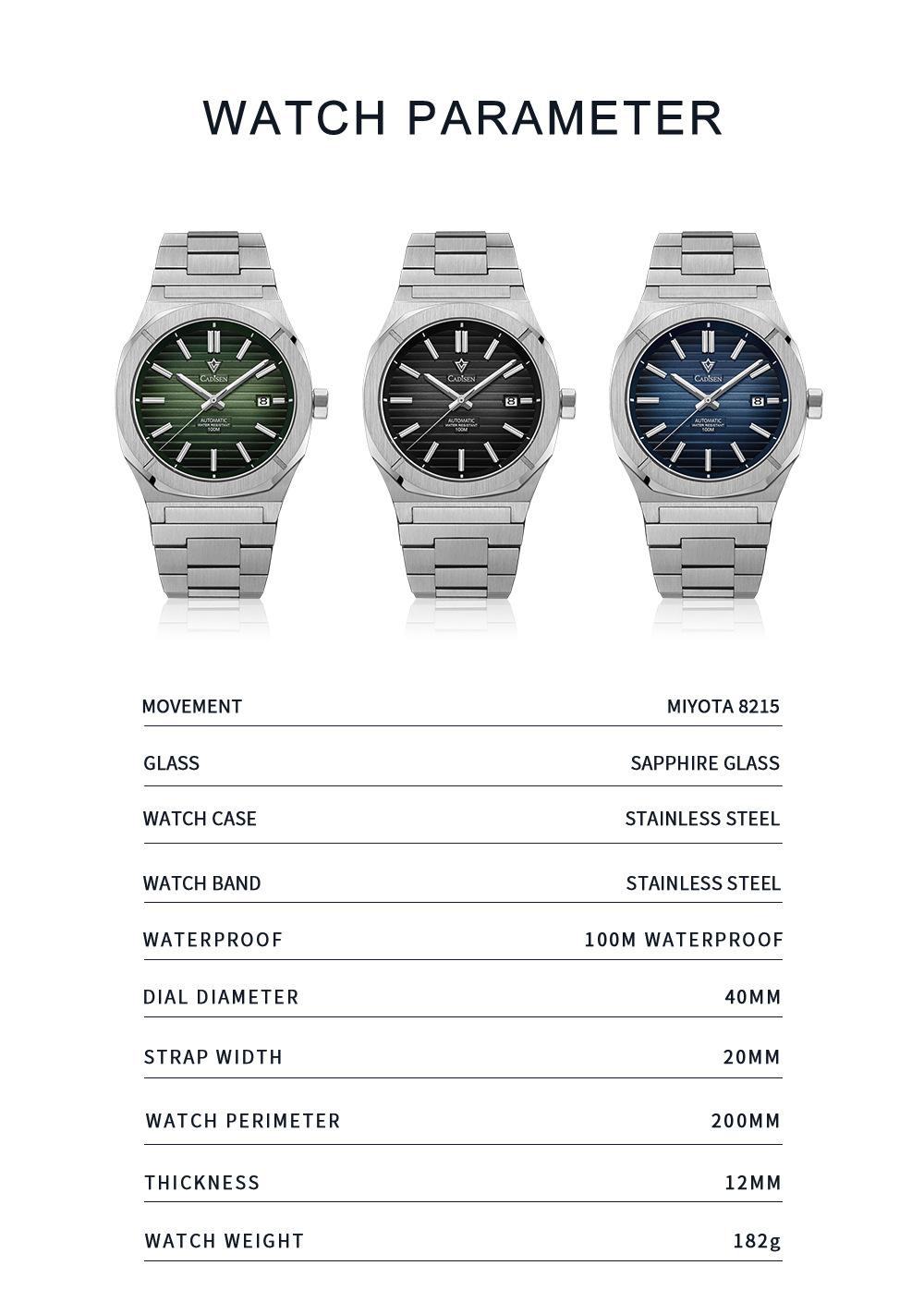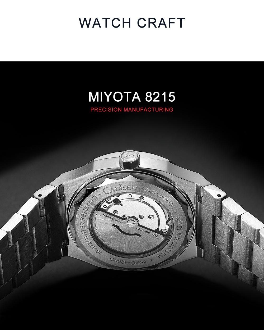 Nuevo Reloj Cardison Reloj Mecánico Automático para Hombre Movimiento Japonés 8215 Moda Negocios Reloj para Hombre